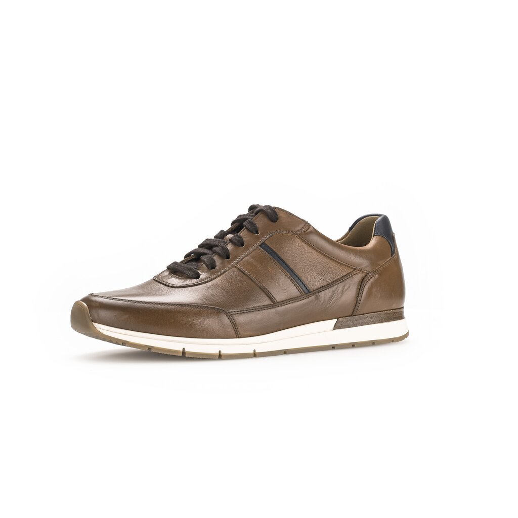 High quality smart cognac tan leather sneakers with dark navy blue trim and contrasting cream sole. These soft leather shoes feature a 3/4 leather lining and full leather cushioned insole. The padded heel collar and tongue ensures a comfortable fitting and minimizes slipping.