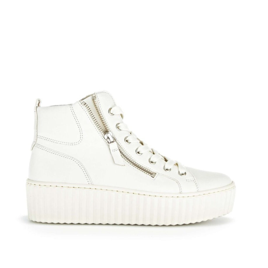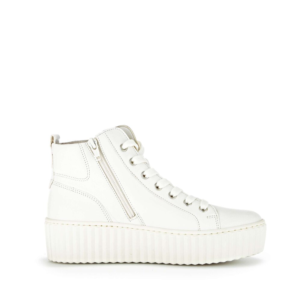 Gabor off white leather platform hi-tops - Debbie is a smart hi-top lace up sneaker boot with a soft leather upper and removable insole, lace fastening, This is a great hi-top that can be worn dressed up or with casual jeans.