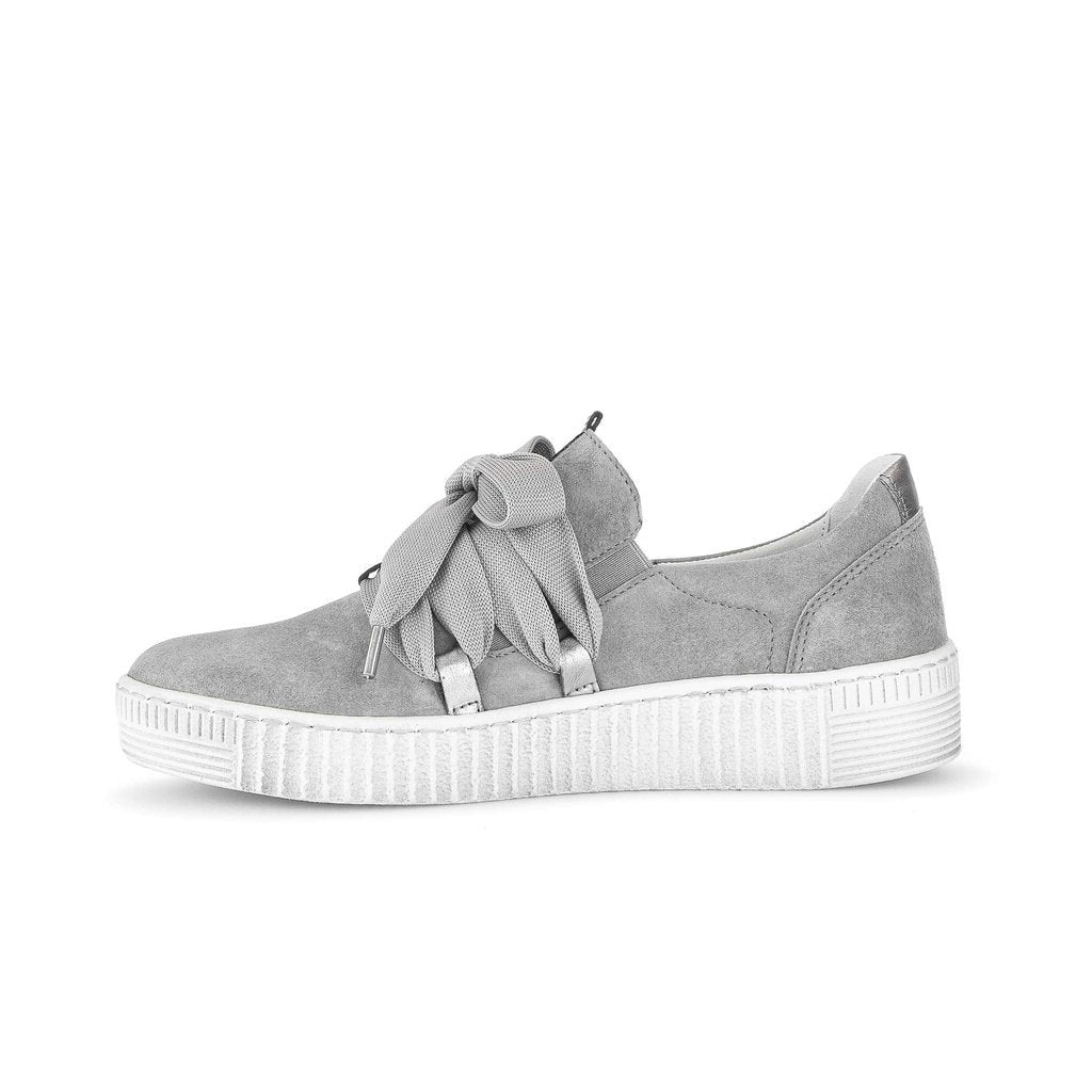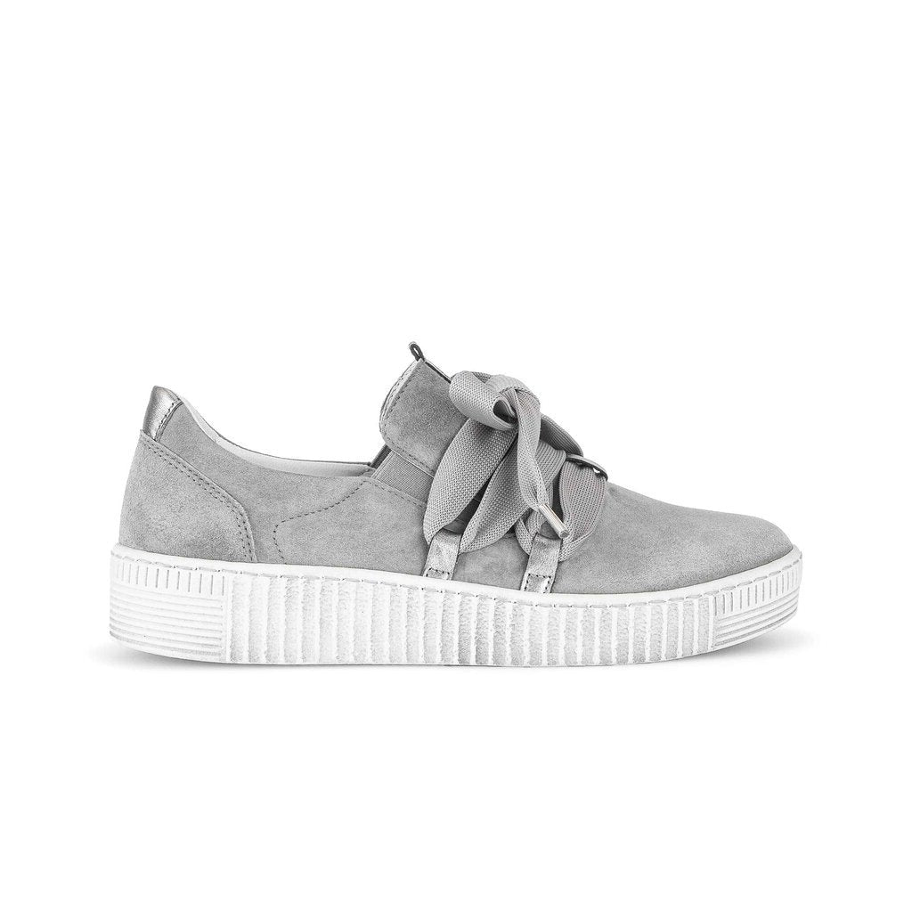 Gabor Waltz stone grey suede leather sneakers with signature platform sole. These fresh sneakers look great with any outfit any time. Spring, Summer or winter you can make a sparkling statement.