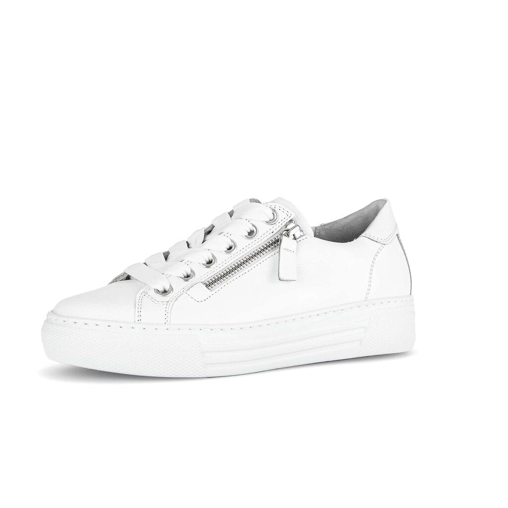 Gabor Campus is a modern twist on the everyday trainer. This mini platform sole shoe presents Gabor’s fashion forward design. Premium full grain leather uppers sit atop the chunky platform 3.5cm sole providing a boost in your height to showcase your crisp and distinctive style.