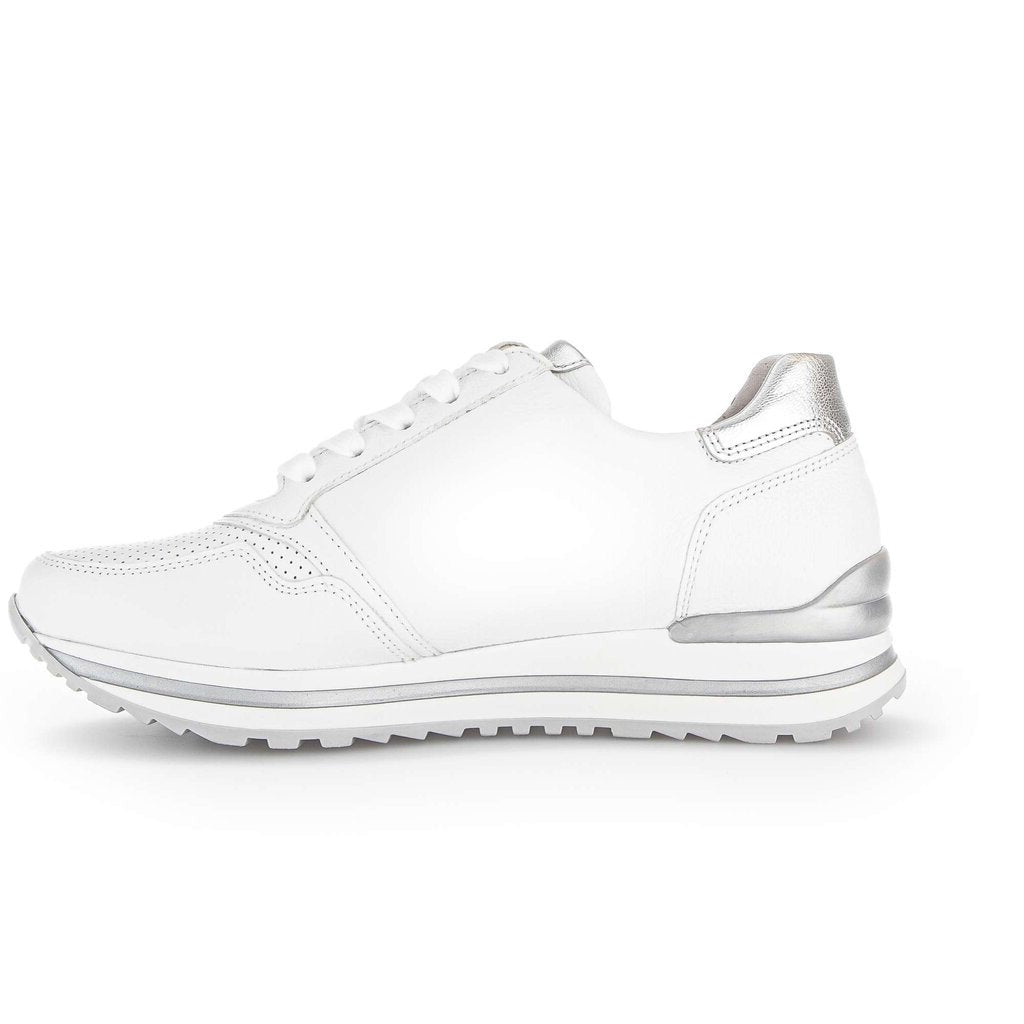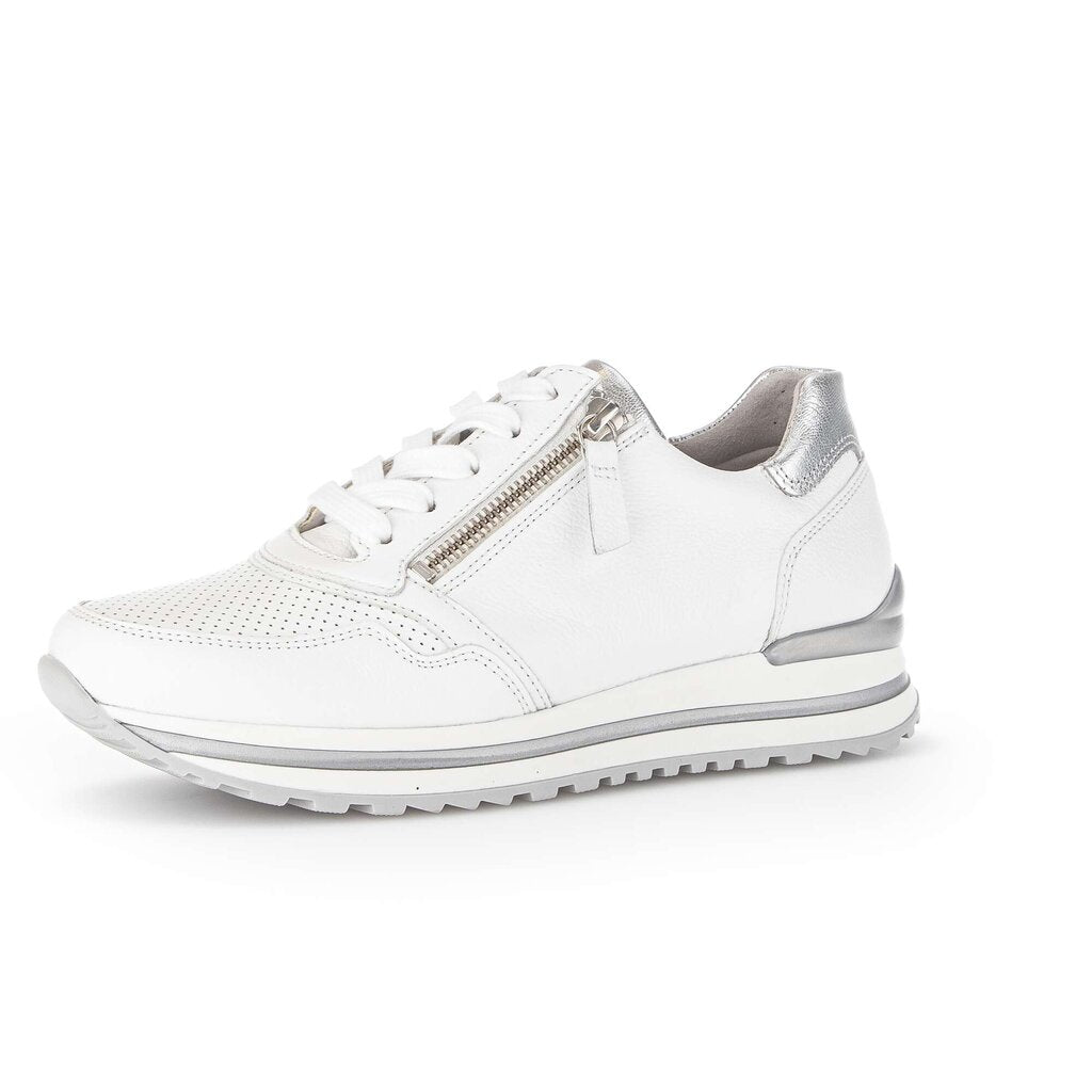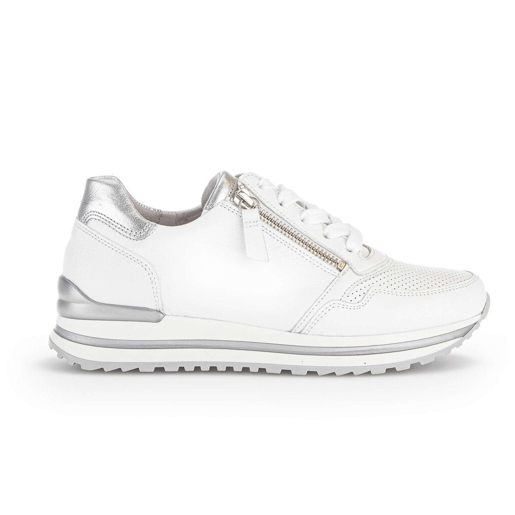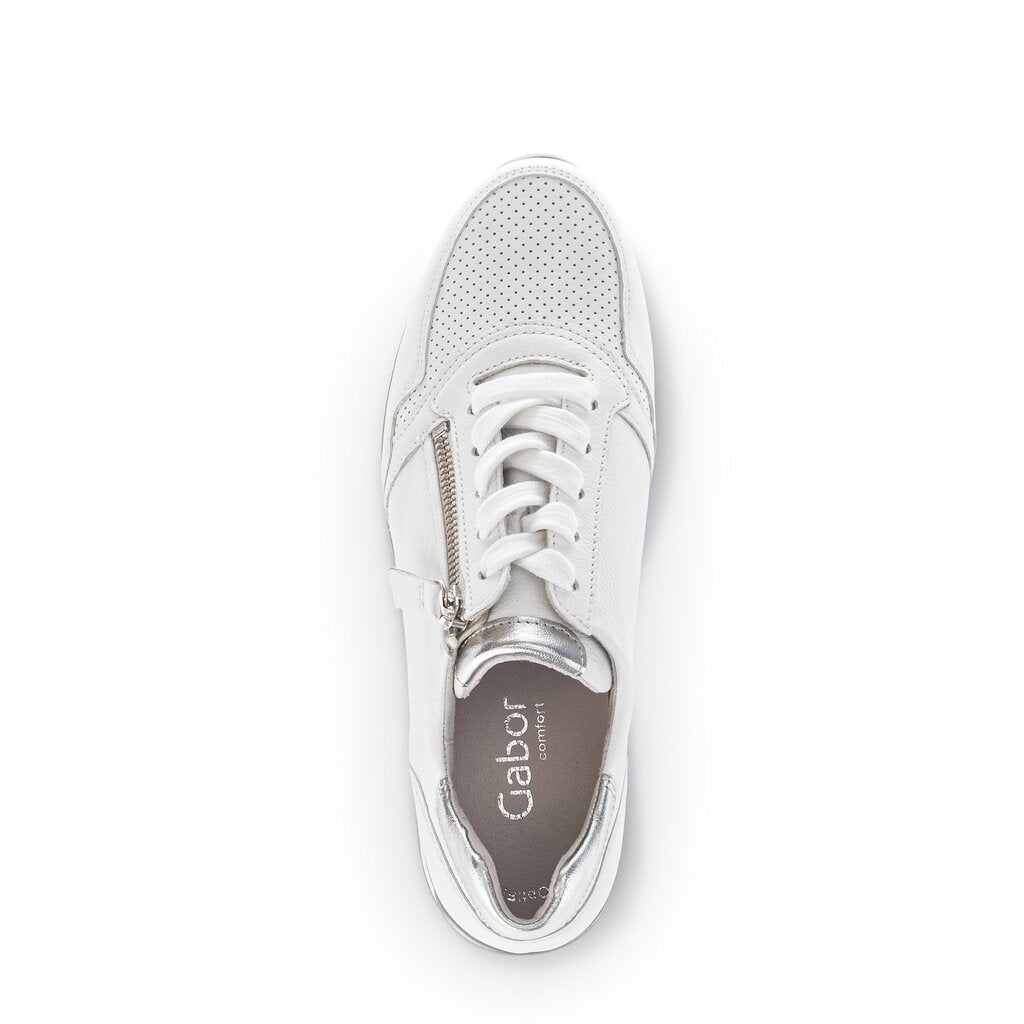 The Gabor Nulon are a highly stylish pair of women’s trainers that feature high comfort levels and a sporty design. These trainers have been manufactured from premium leather and feature silver accents to create an interesting and unique aesthetic. Lace and side zip fastenings work together to keep these shoes secure throughout wear while also allowing them to be taken on and off with ease. The front panel is perforated to allow your foot to breath naturally. The silver accents at the heel cuff and top of the tongue are echoed along the length of the sole unit.