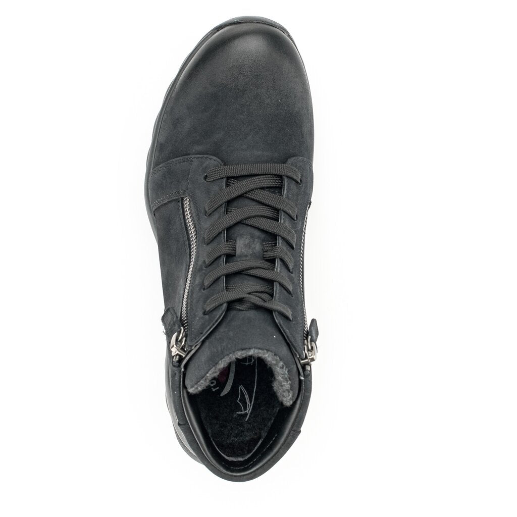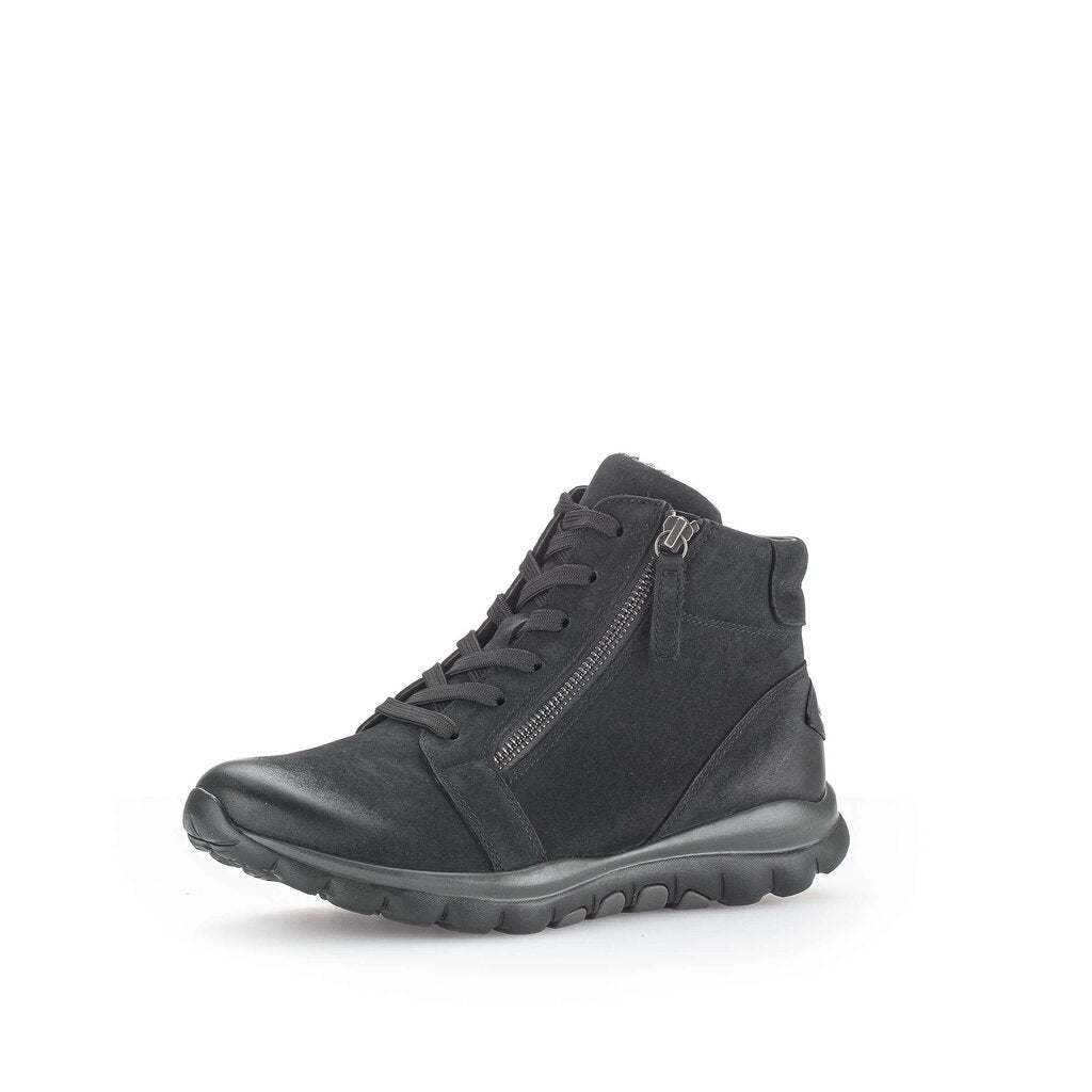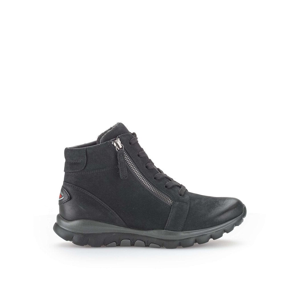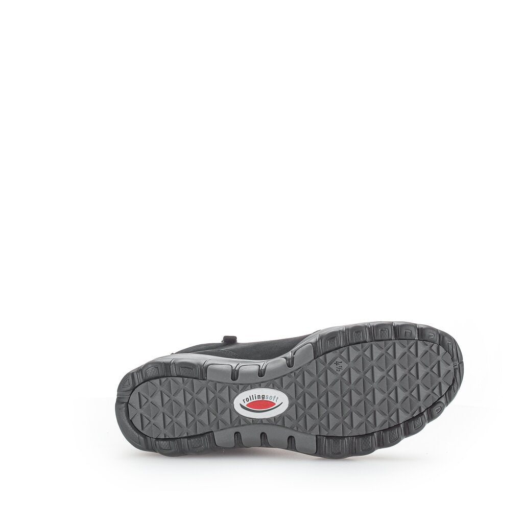 Gabor twin zip rolling soft ankle boots. Gabor rolling soft boots incorporate a rocking mechanism into the sole reducing impact on your heel and supporting you arch. Excellent footwear for people who have struggled with plantar fasciitis. We recommend wiping the upper with a damp cloth when dirty. Black shoe polish can be applied to toe and heel to cover scuff marks.