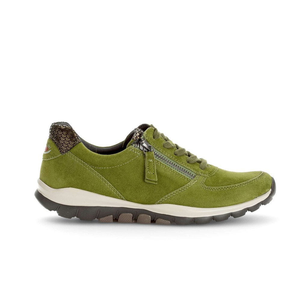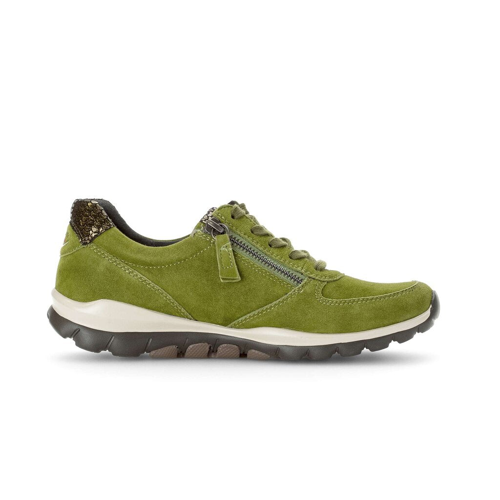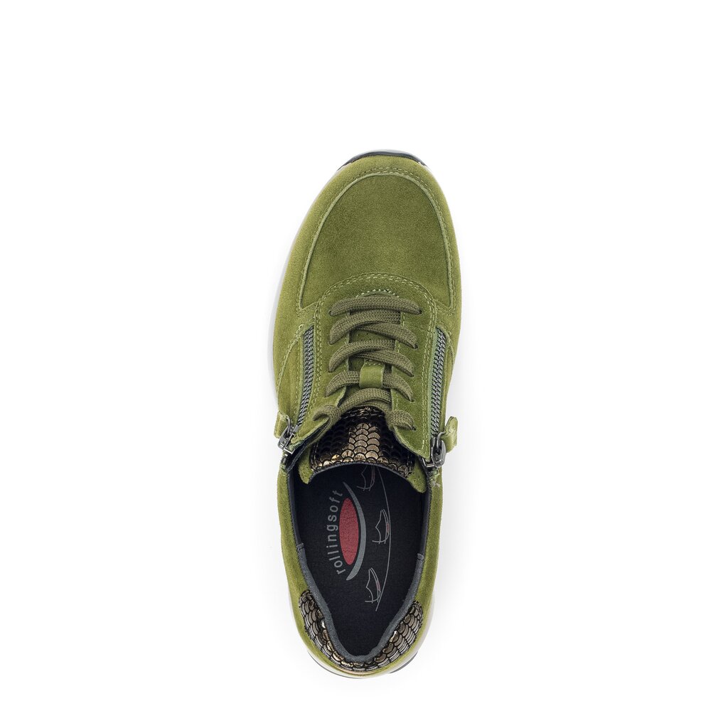 This model called Fantastic is in a fresh green colour of soft nubuck leather. Gabor rolling soft sneakers incorporate a rocking mechanism into the sole reducing impact on your heel and supporting your arch. Excellent footwear for people who have struggled with plantar fasciitis.
