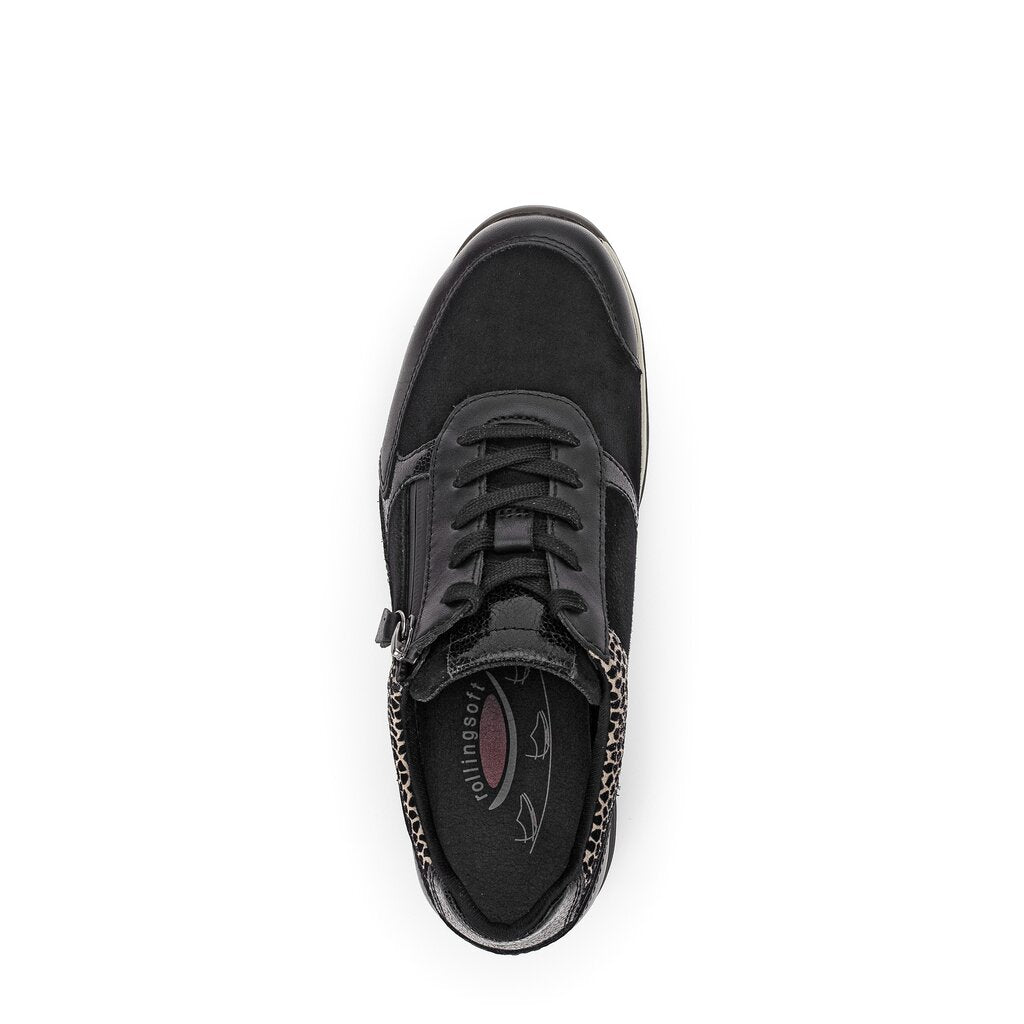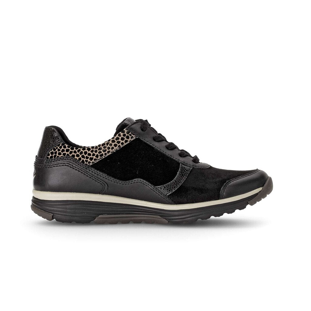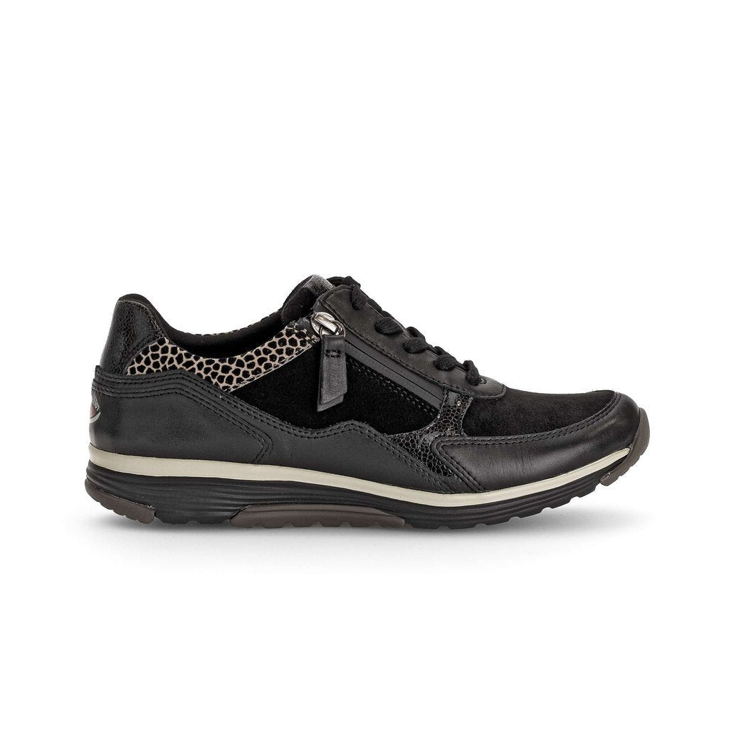 Gabor Betsy combination leather sneakers with soft stretch fabric top for an ultra soft toe area which adapts to your foot shape. Gabor rolling soft sneakers incorporate a rocking mechanism into the sole reducing impact on your heel and supporting you arch. Excellent footwear for people who have struggled with plantar fasciitis.