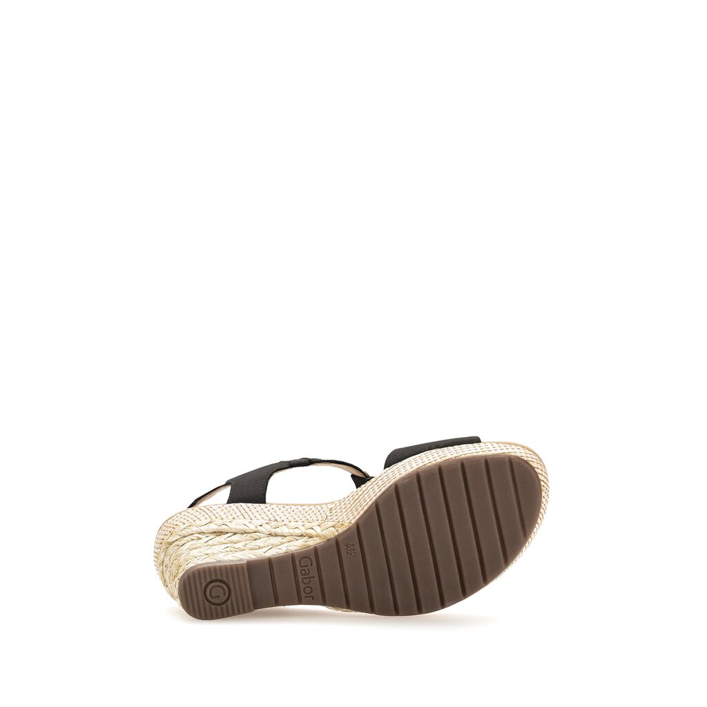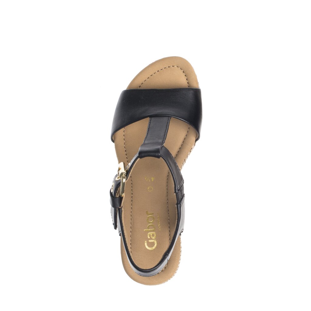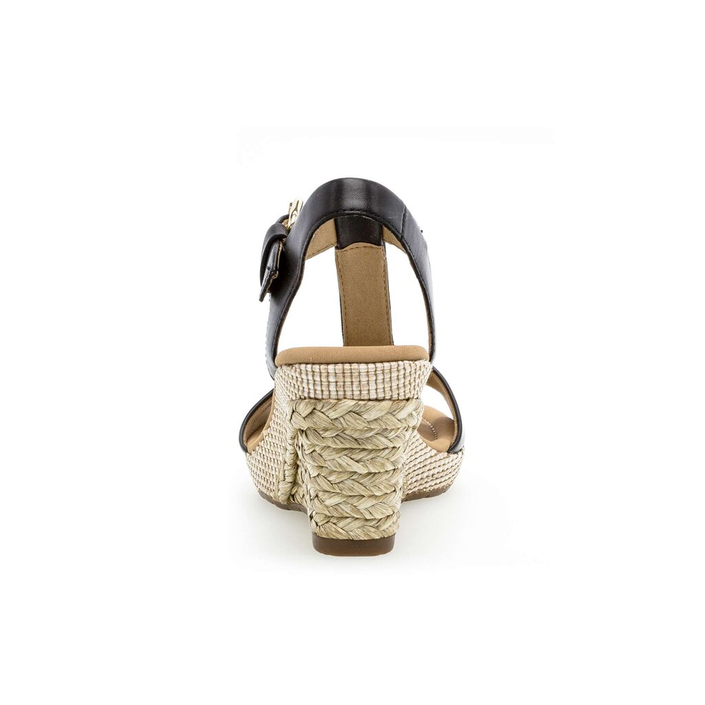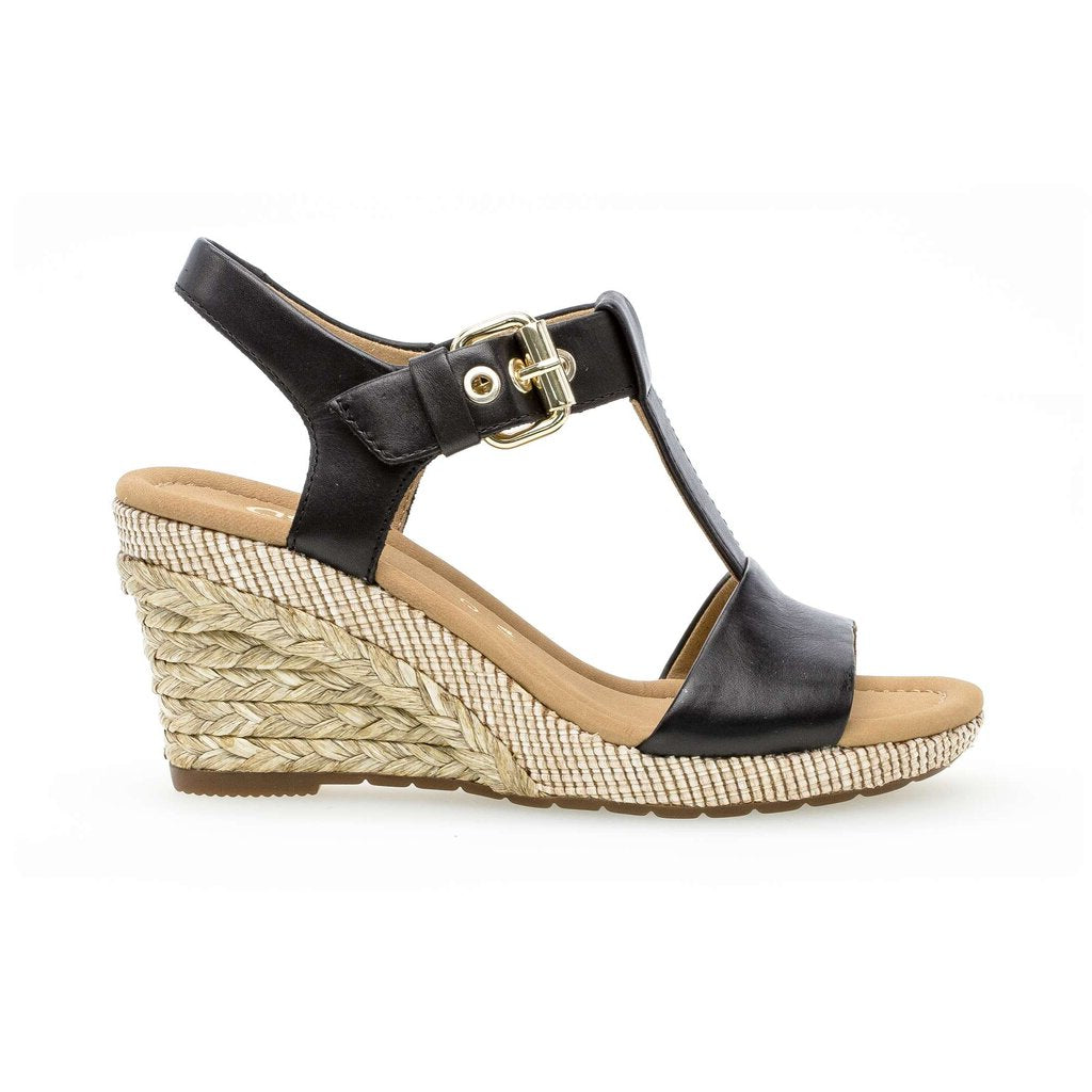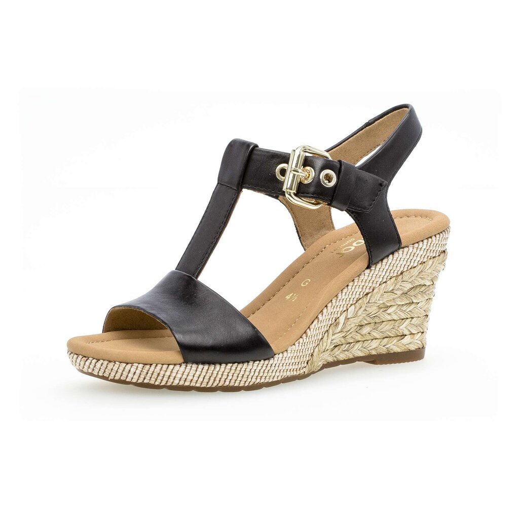 Gabor Karen is a dressy wedge sandals for any occasion. This 'T' strap style model is the only one you need to pack to compliment all your outfits. Made in soft leather with a textured rope wedge. A glamorous wedge heel measuring 85 mm combined with a mini platform, Karen gives you that welcome, extra height in comfort.