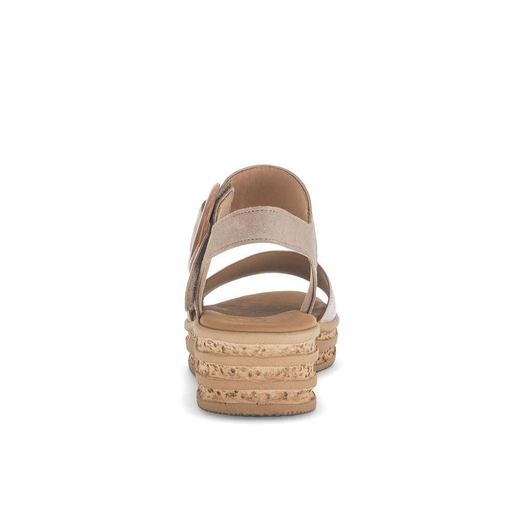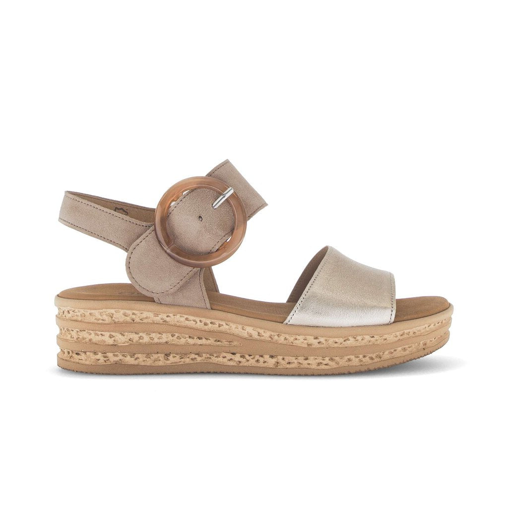 Gabor André medium wedge glamorous rabbit coloured soft leather sandals with an adjustable touch close strap featuring a faux tortoiseshell buckle detail. André has a generous 2 inch heel height which is compensated with 1 inch platform making this sandal dressy enough for special outfits yet comfortable for all day wear.