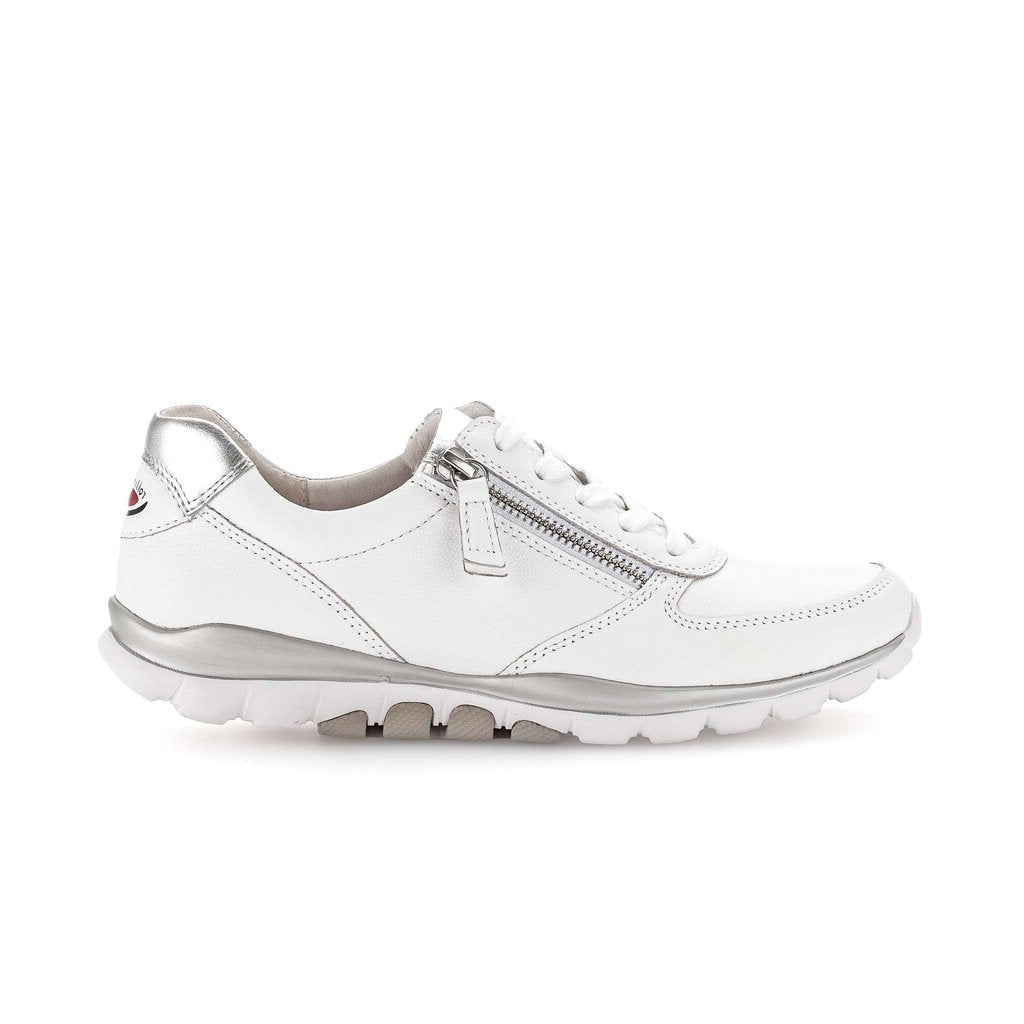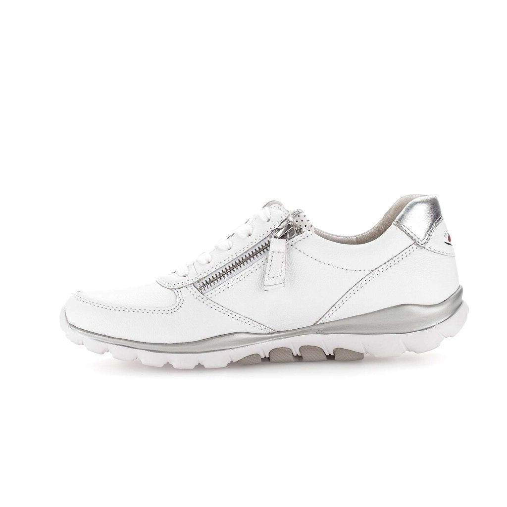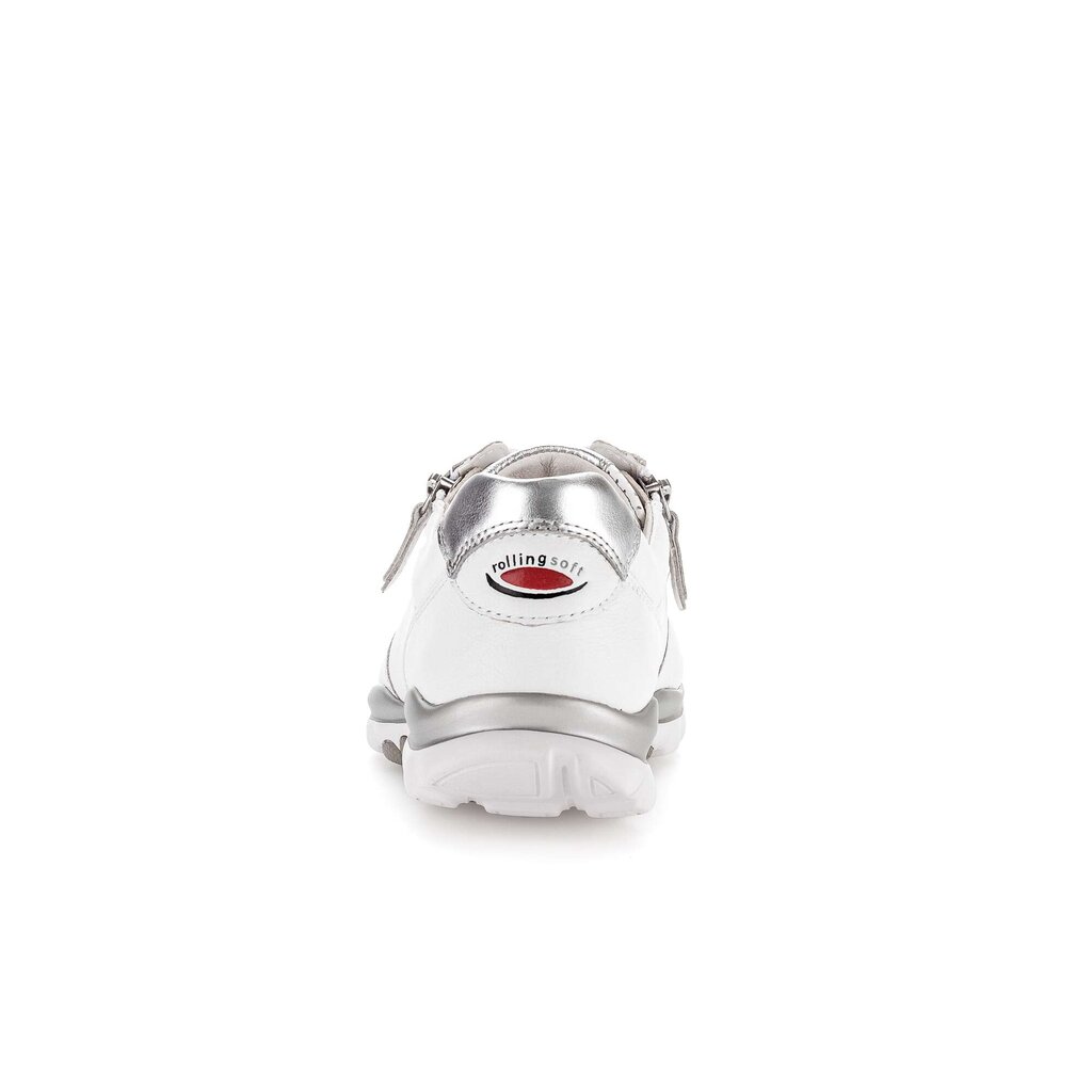 This model called Fantastic is in a silver trim fresh white soft leather. Gabor rolling soft sneakers incorporate a rocking mechanism into the sole reducing impact on your heel and supporting you arch. Excellent footwear for people who have struggled with plantar fasciitis.