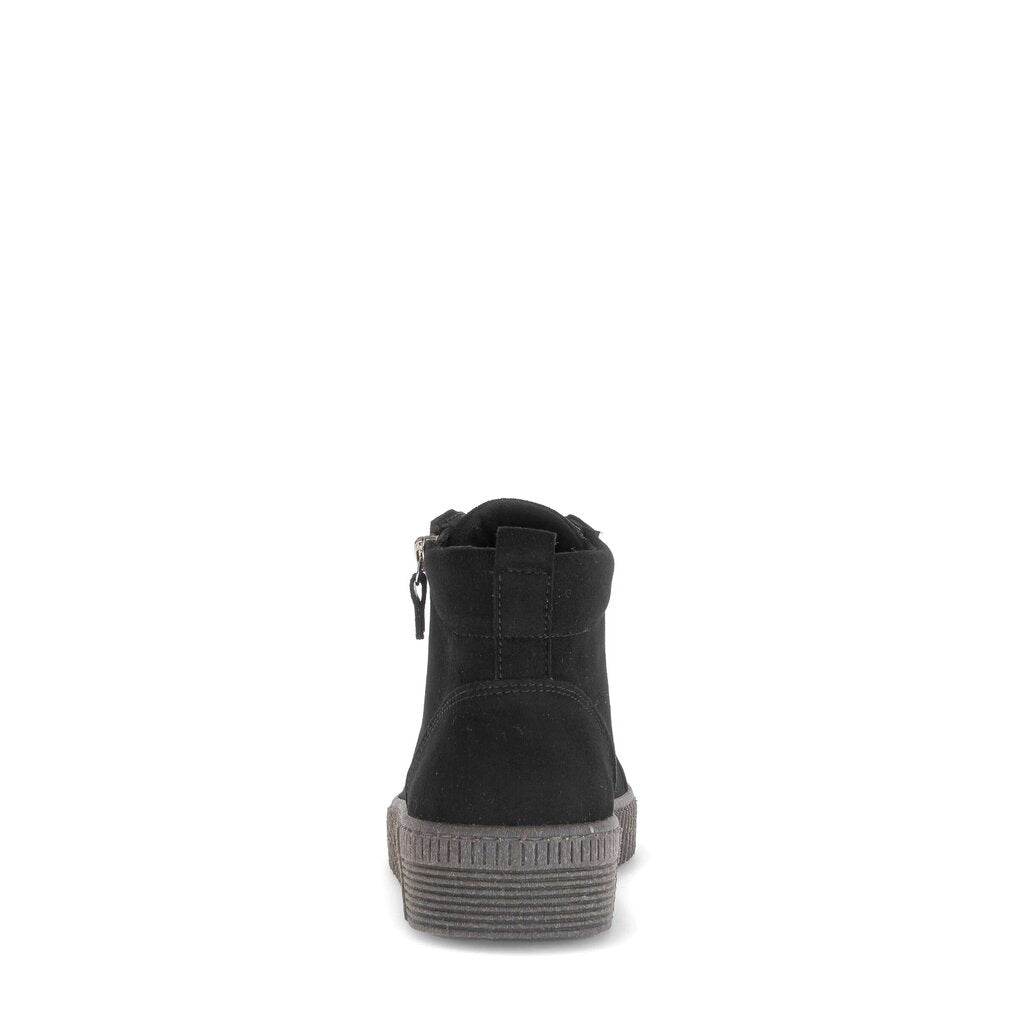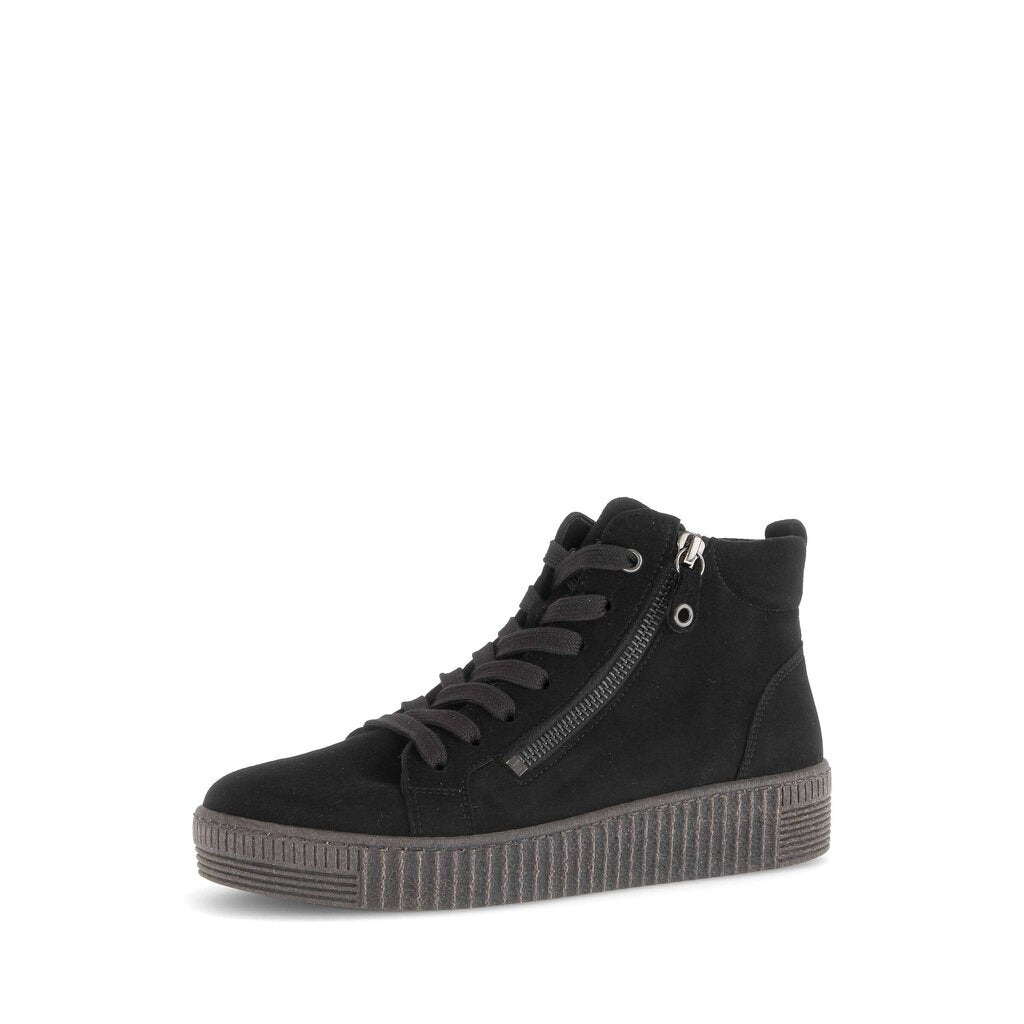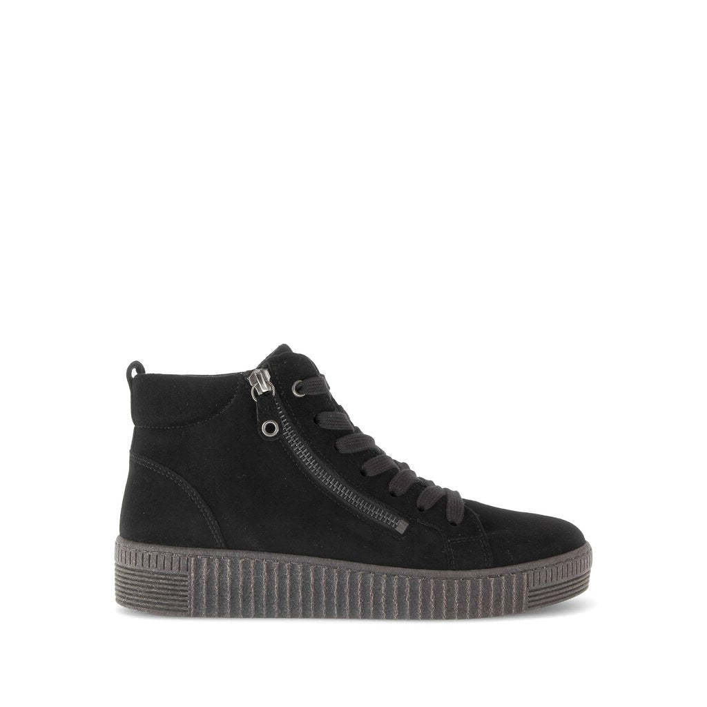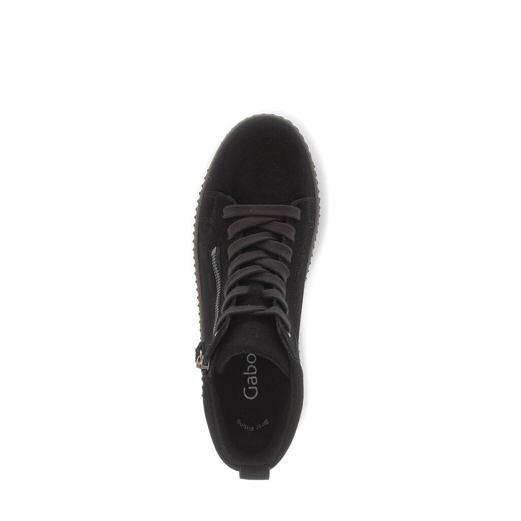 Gabor 73.730 Lake soft black suede sneaker boots with lace up a side zip fastening for easy on/off. These light weight comfy ankle boots also feature a removable insole and give great support to your feet.
