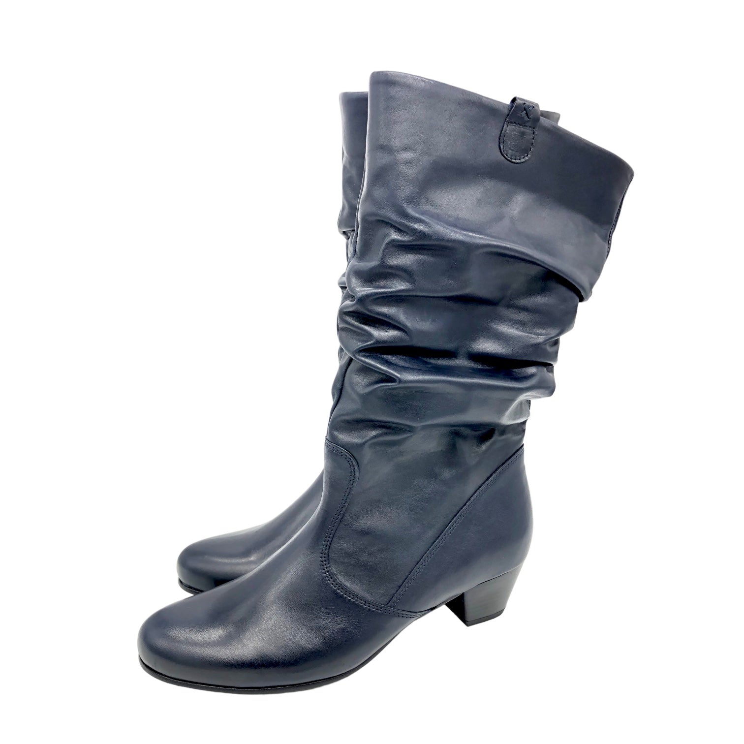 Gabor Rachel mid calf slouch boots with dressy low heel made in super soft dark navy blue leather