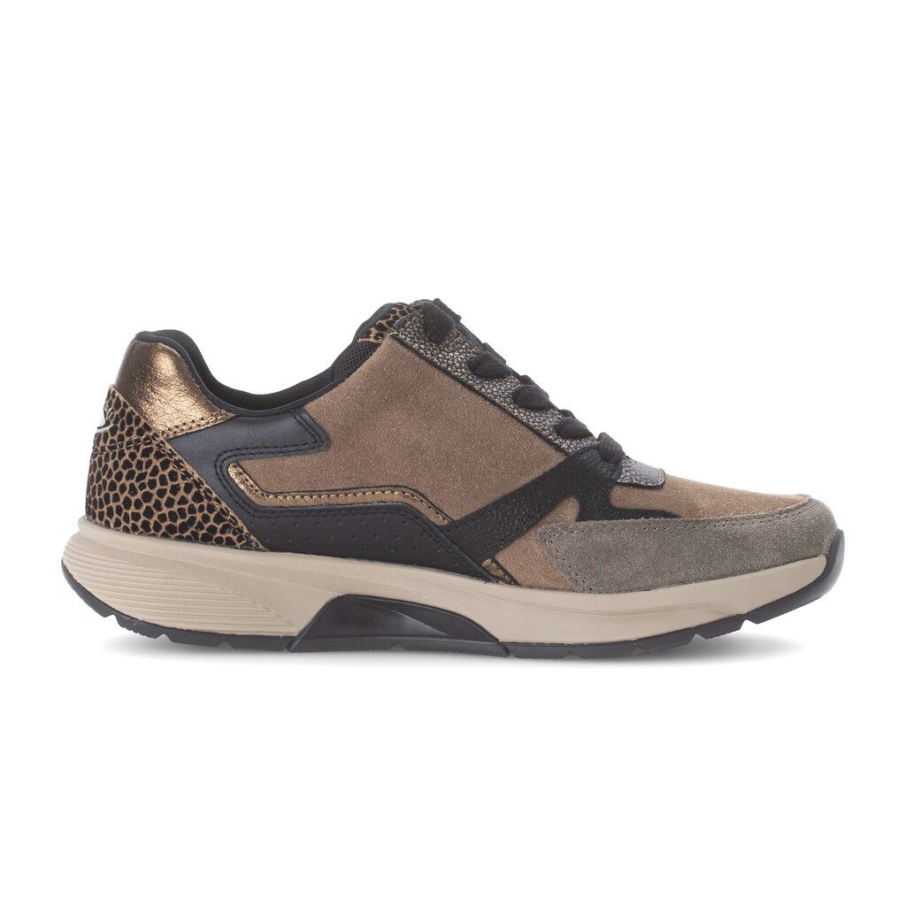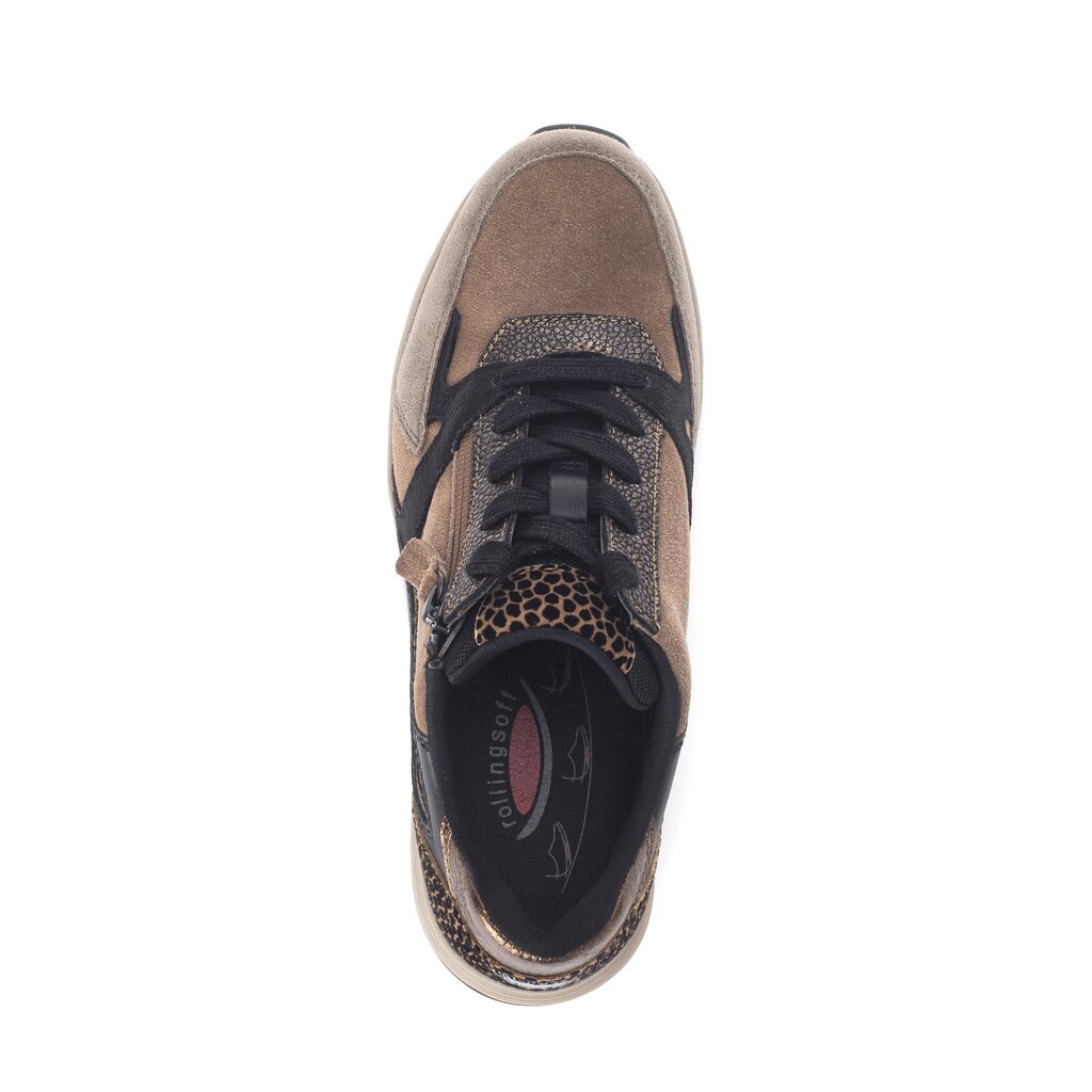 Gabor Adora multi tonal brown nubuck combination shoes with leopard print trim. These smart everyday shoes are perfect for workwear when a more formal look is required. Just like all of our Rolling soft models, the rocker sole provides the full support and pressure releif for your feet and is a particularly good choice if you suffer with heel pain or plantar fasciitis.