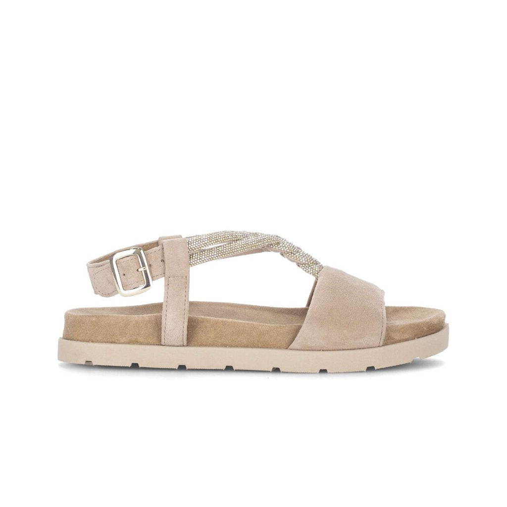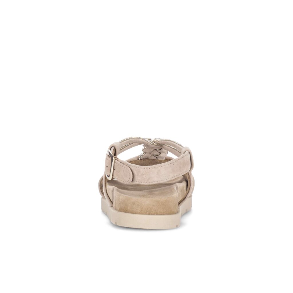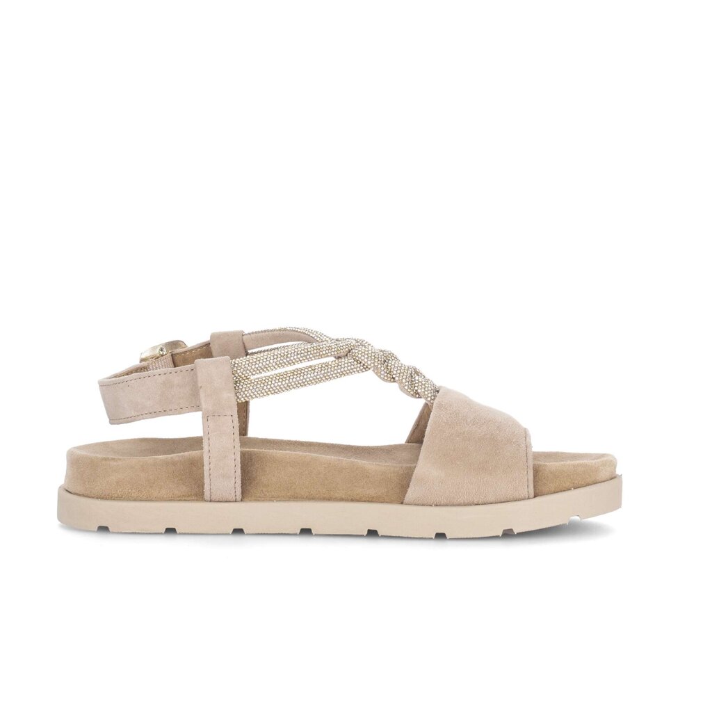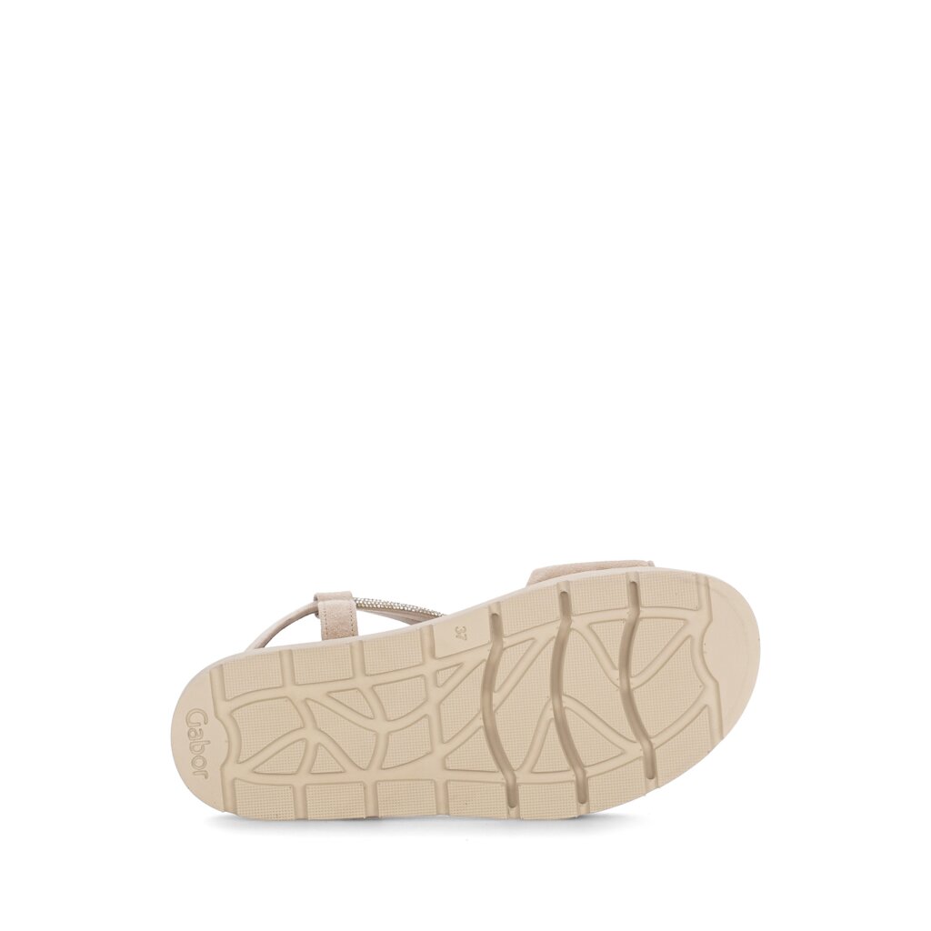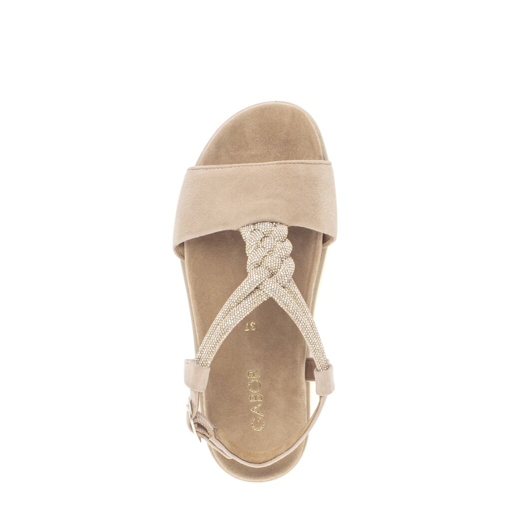 Gabor soft leather sandals with jewel encrusted plait design front. These flatter walking sandals have a thick contoured footbed for extra support and cushioning.