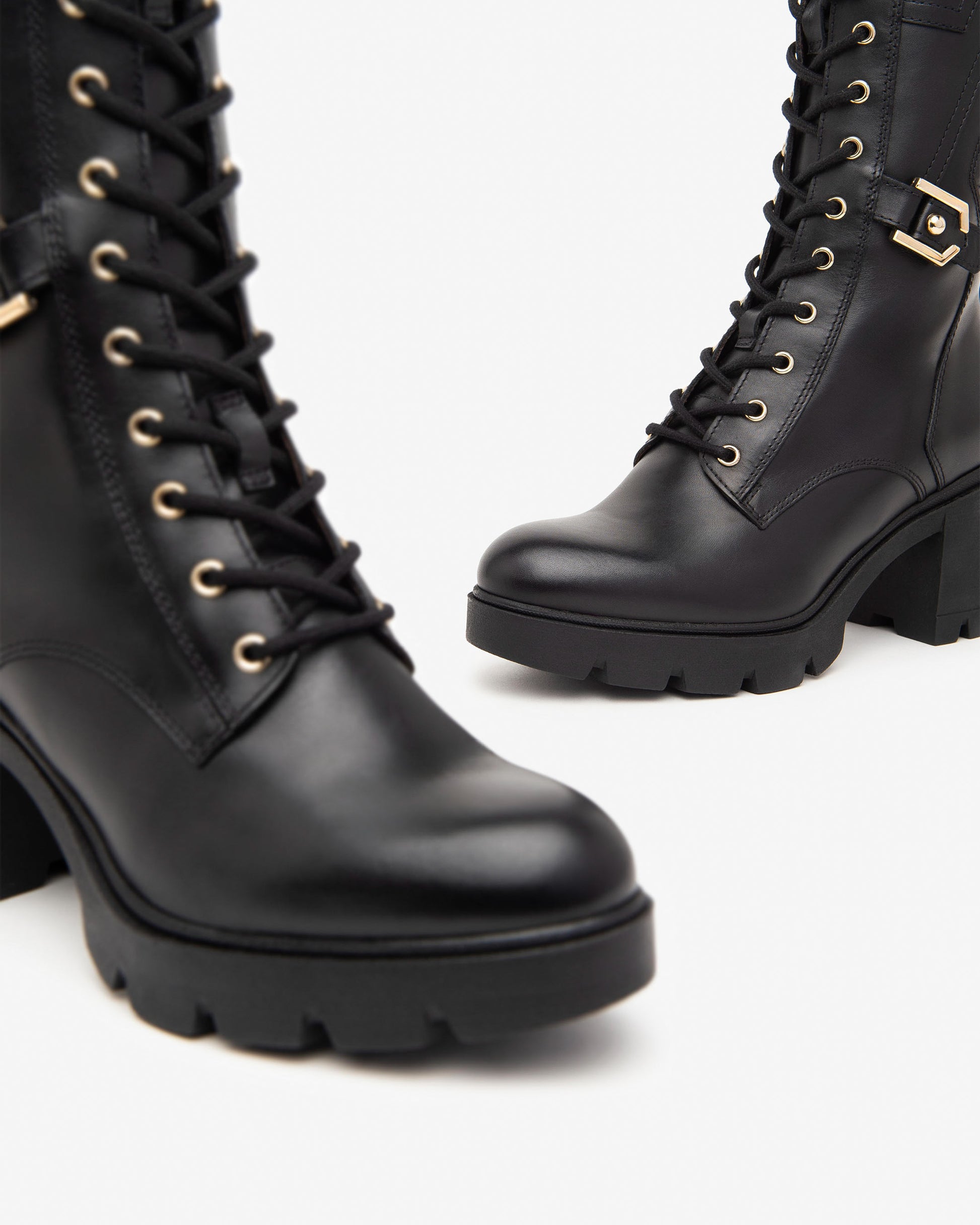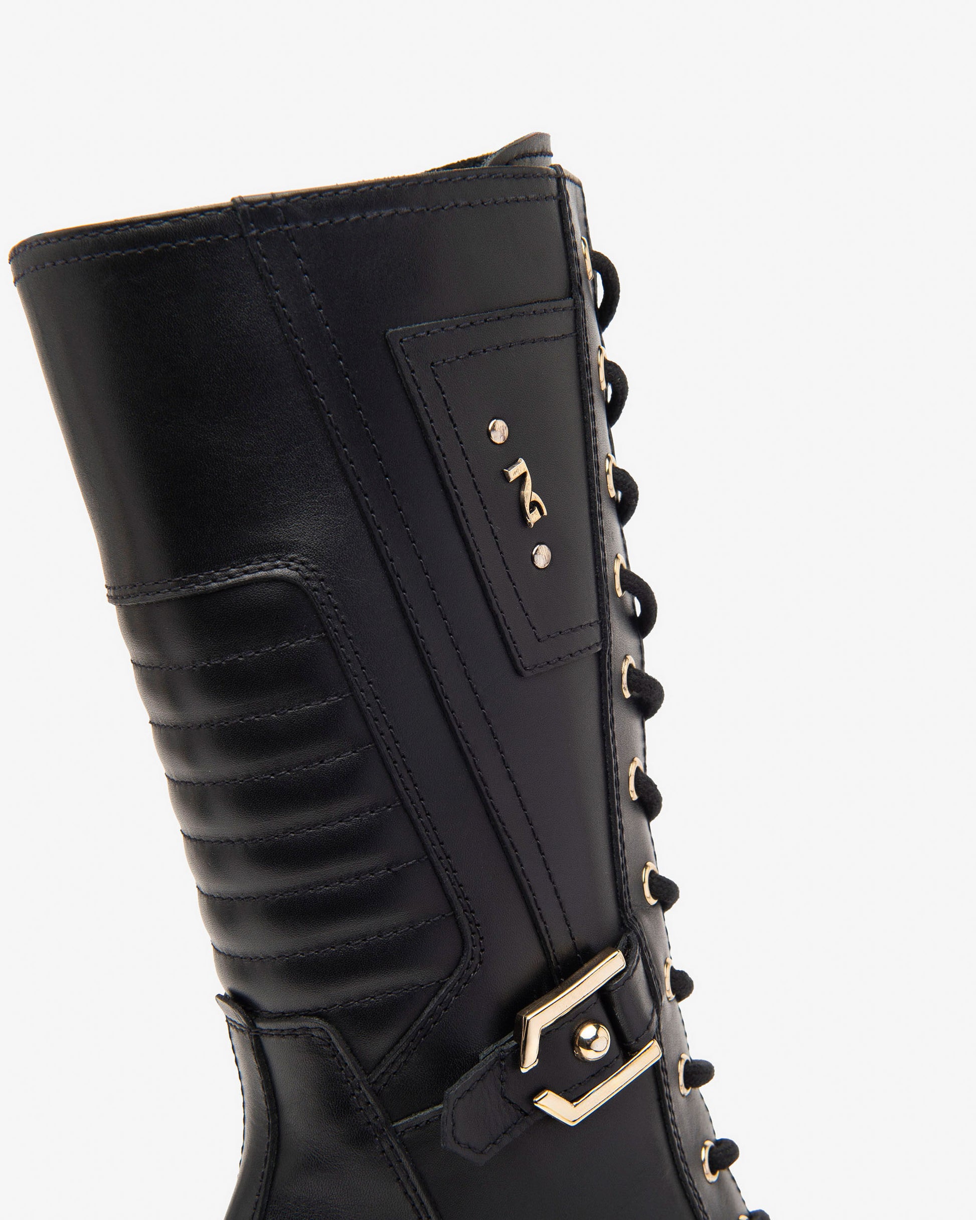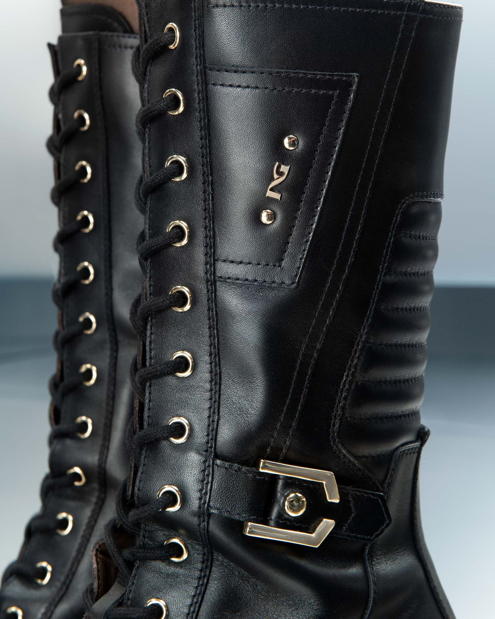 NeroGiardini boots made in Italy with high quality Itallian leather. The constant search for new styles ensures footwear that's always trendy and original, extremely comfortable to wear. A sophisticated design for an unmistakable style. The gold eyelets topped with gold 'D' rings then finished off with the unmistakable gold NeroGiardini buckle add up to a classy fashion boot. With cutting edge technology and sourced fine leathers all guarantee your comfort and well being. Proudly Made in Italy, the production of NeroGiardini footwear is labelled with the flag printed on the outsole and on the packaging.