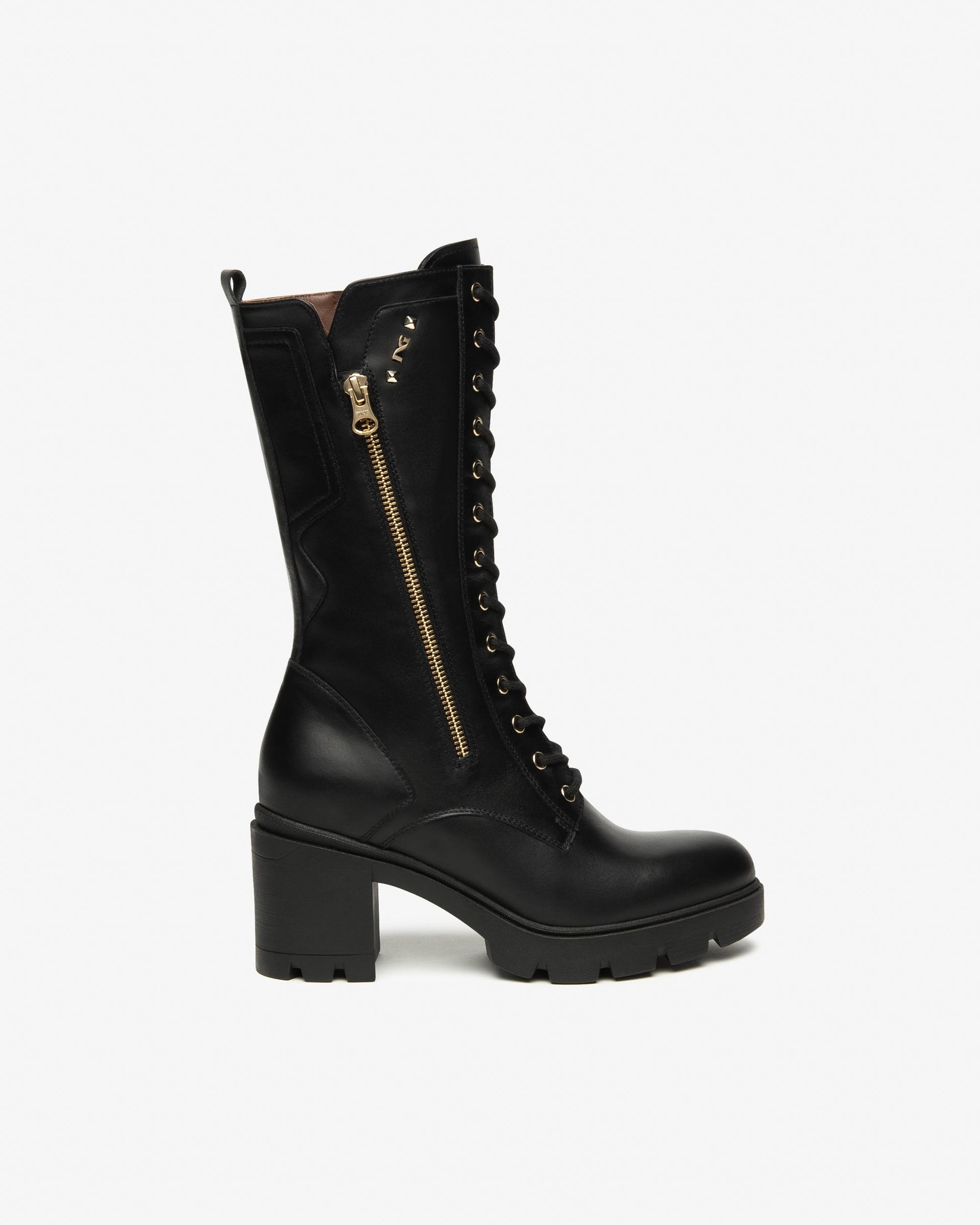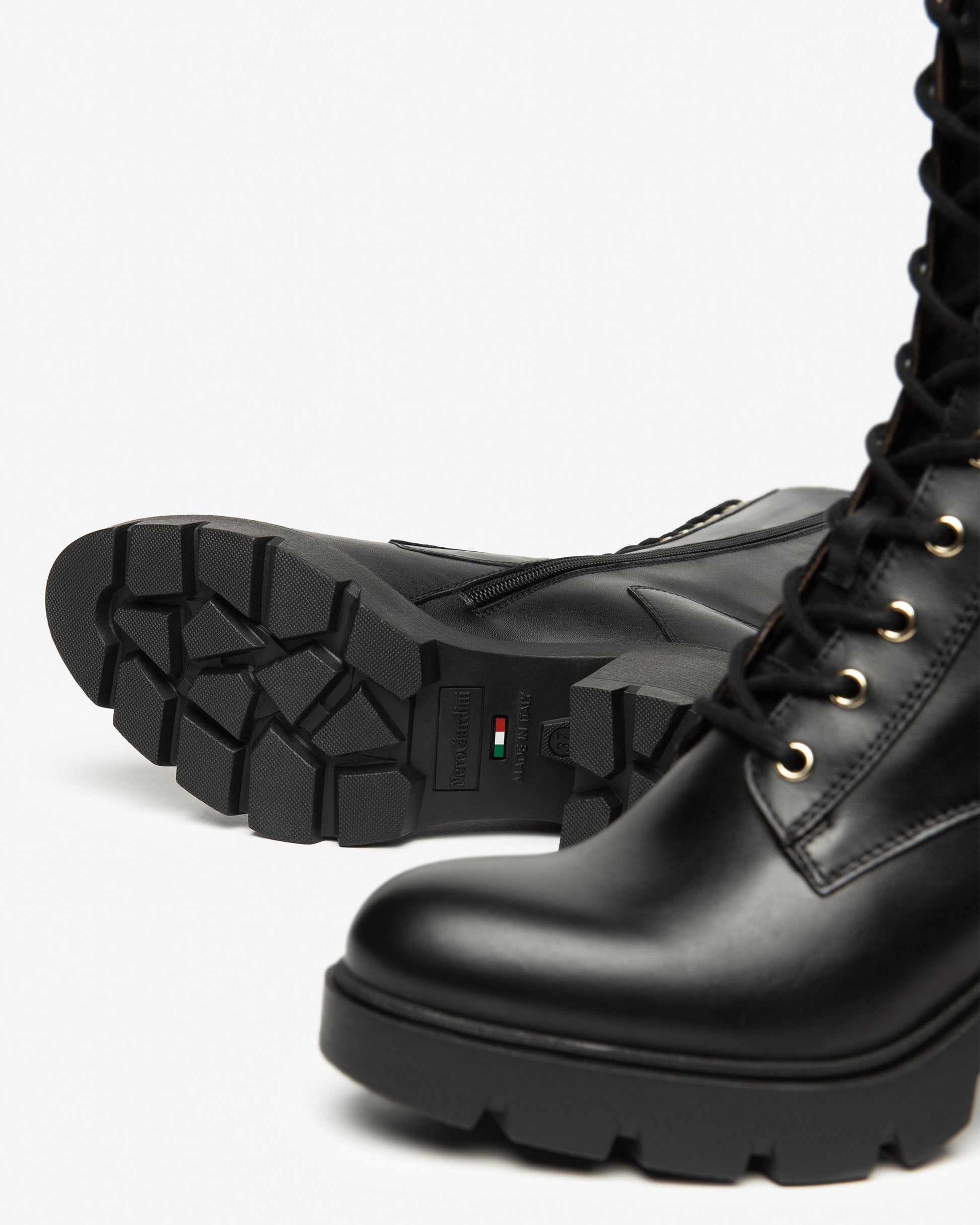 NeroGiardini boots made in Italy with high quality Itallian leather. The constant search for new styles ensures footwear that's always trendy and original, extremely comfortable to wear. A sophisticated design for an unmistakable style. The gold eyelets topped with gold 'D' rings then finished off with the unmistakable gold NeroGiardini buckle add up to a classy fashion boot. With cutting edge technology and sourced fine leathers all guarantee your comfort and well being. Proudly Made in Italy, the production of NeroGiardini footwear is labelled with the flag printed on the outsole and on the packaging.