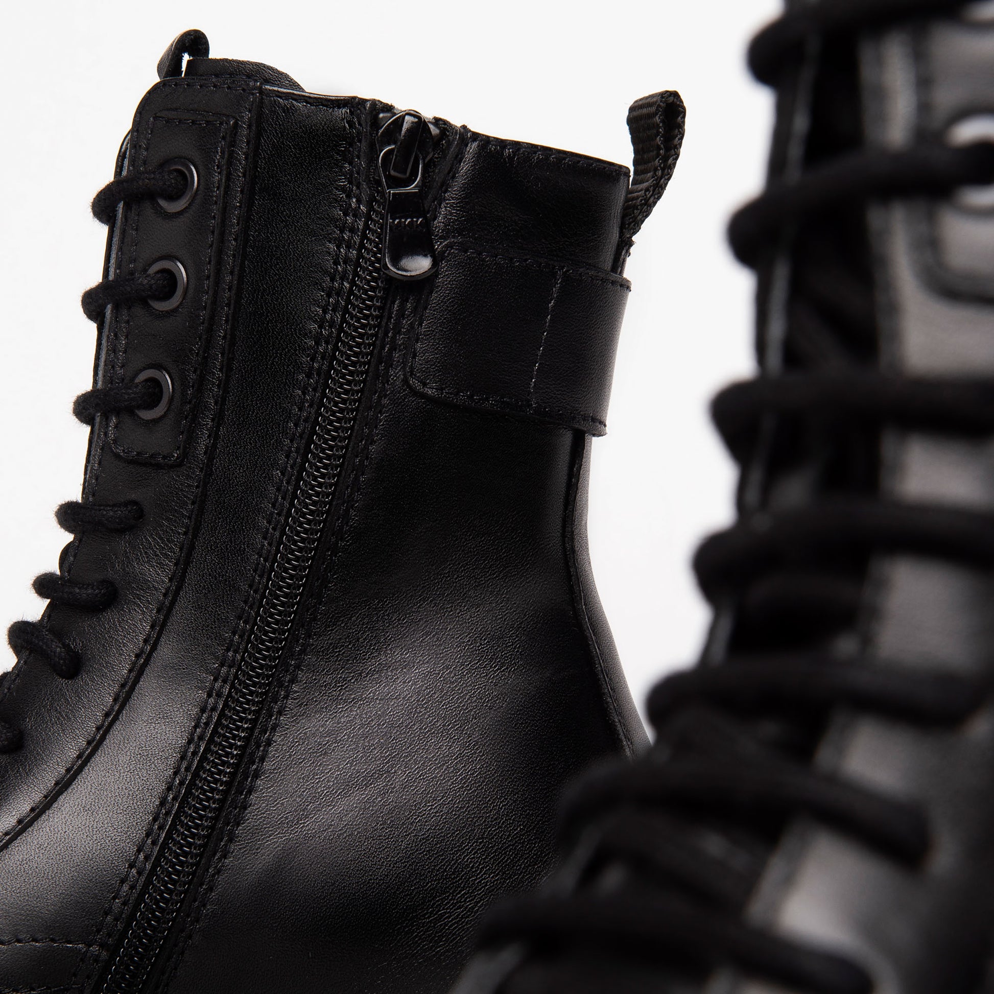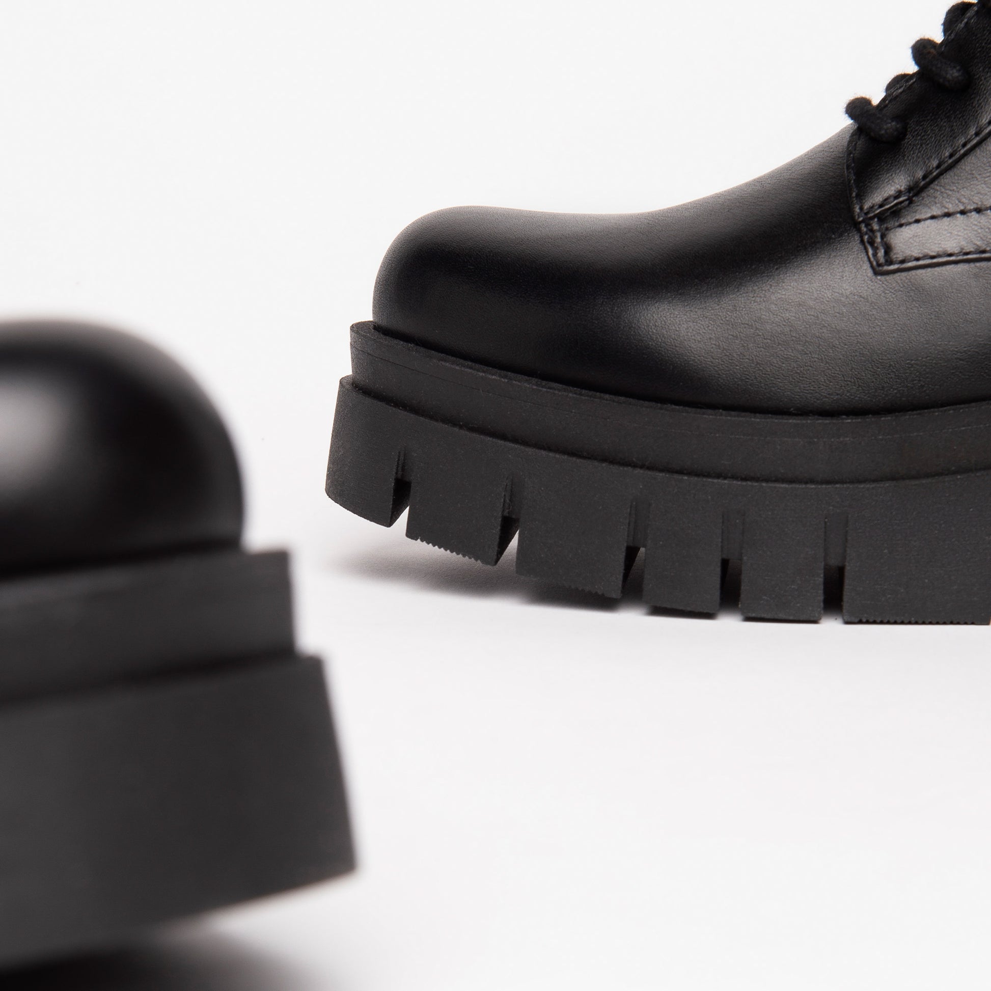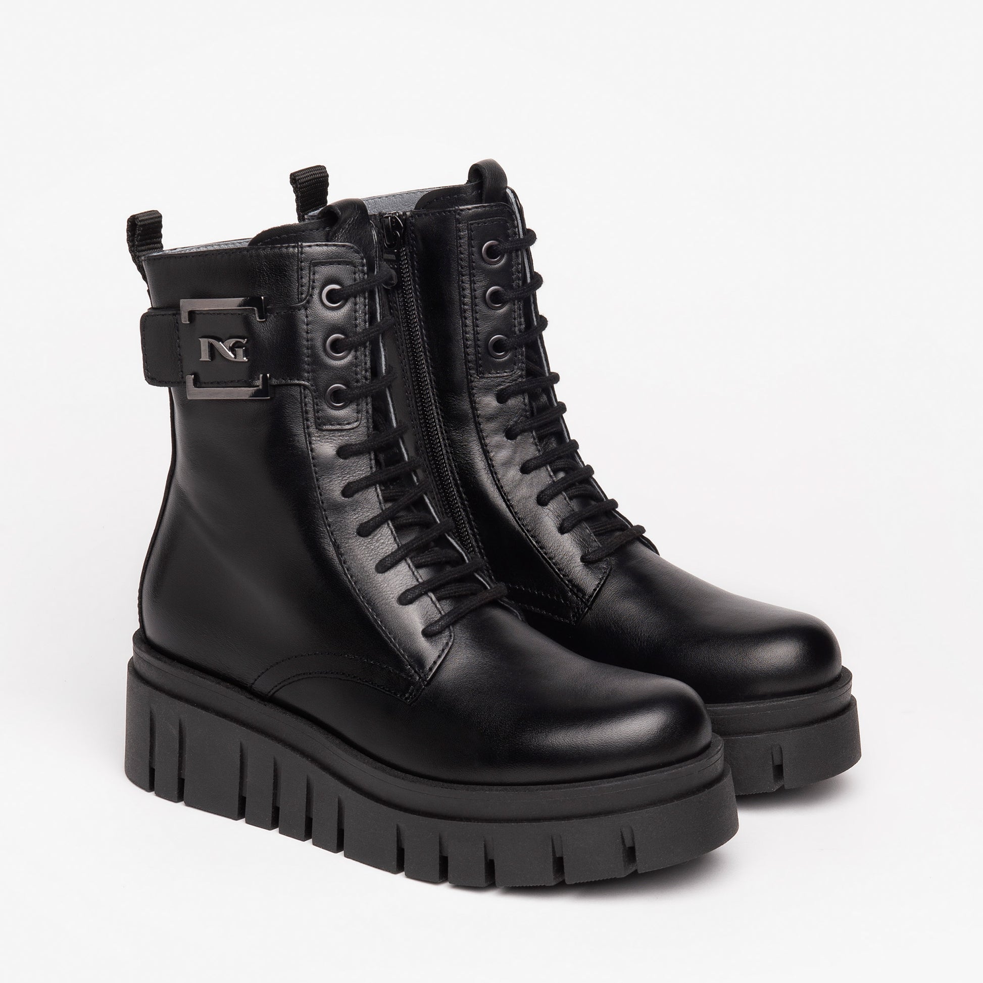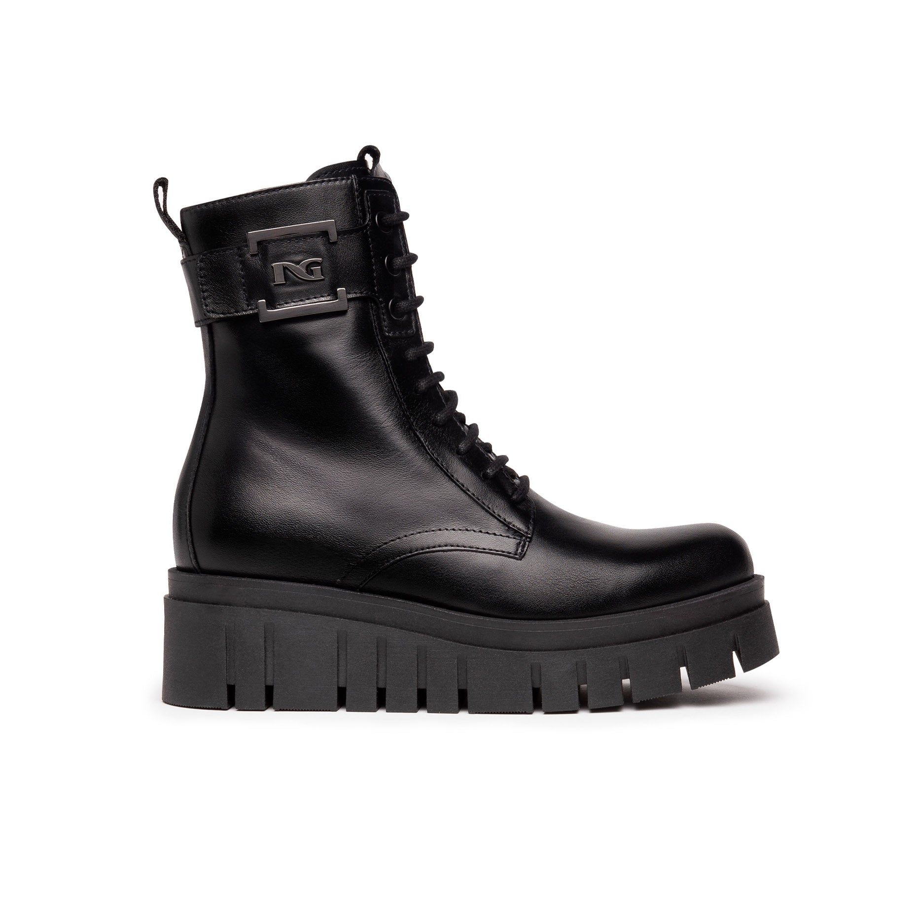 NeroGiardini wedge ridged heeled and platform leather fashion ankle boots in smooth black leather.