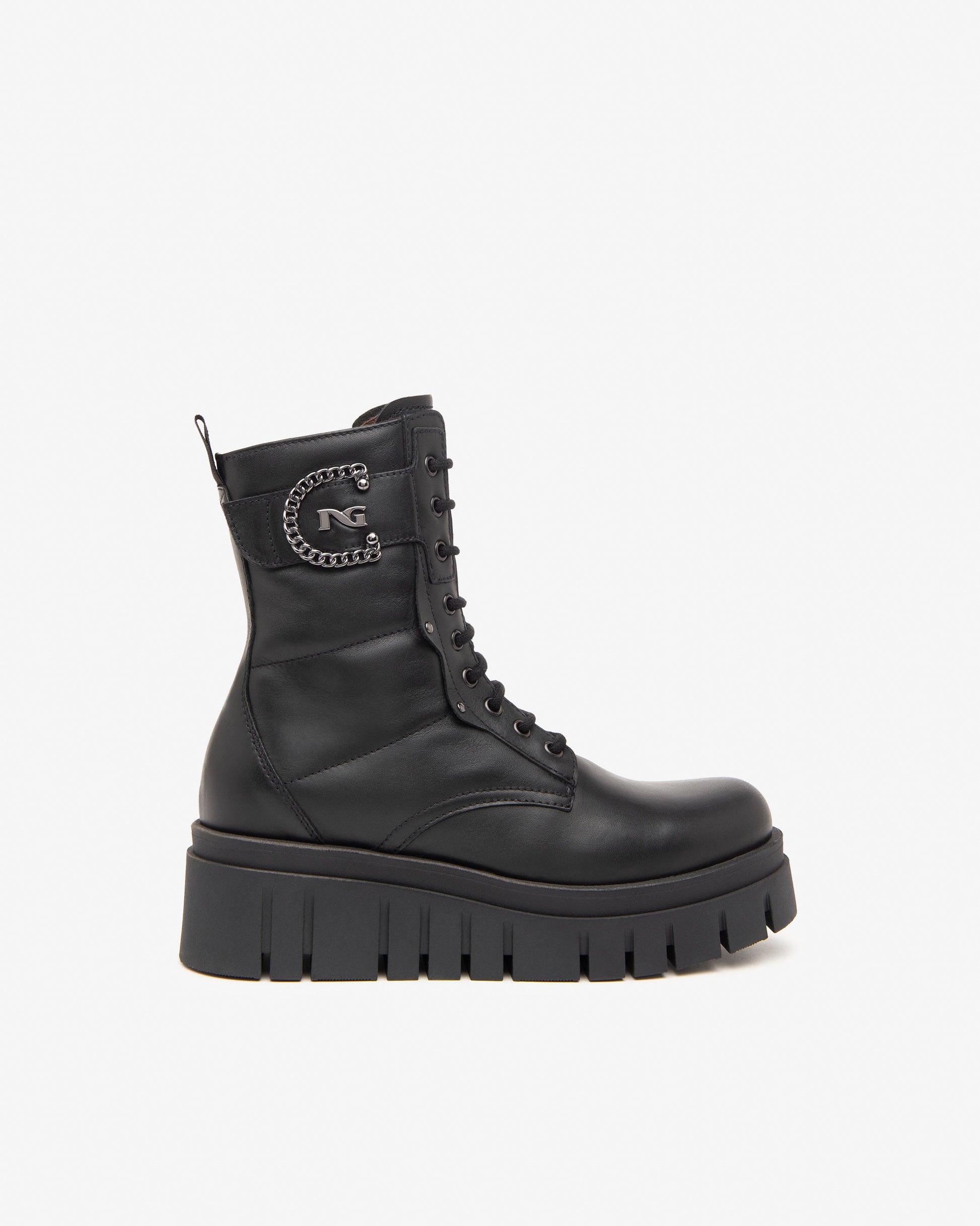 NeroGiardini boots made in Italy with high quality Italian leather. The constant search for new styles ensures footwear that's always trendy and original, extremely comfortable to wear. A sophisticated design for an unmistakable style. The black eyelets topped with the unmistakable metallic black NeroGiardini buckle with cutting edge technology and sourced fine leathers all guarantee your comfort and well being. Proudly Made in Italy, the production of NeroGiardini footwear is labelled inside the boot and on the packaging.