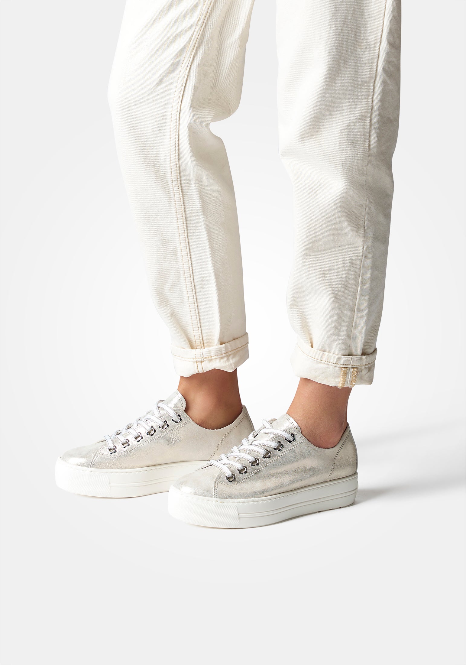 Paul Green super soft calf leather sneakers. These incredibly soft and lightweight sneakers showcase the luxury leathers from a master shoemaker. These cute mini platforms can be worn with a summer dress, skirts and shorts and your cut off jeans with ease. This mini platform gives you the extra height we all love when wearing dresses. The outstanding comfort will encourage you to wear them everyday and you will wonder how you managed without them. The detail of flower shaped eyelets gives a fresh and fun element to the model. Paul Green shoes are handmade in Austria using only the finest leathers for admirable quality and exclusive design.