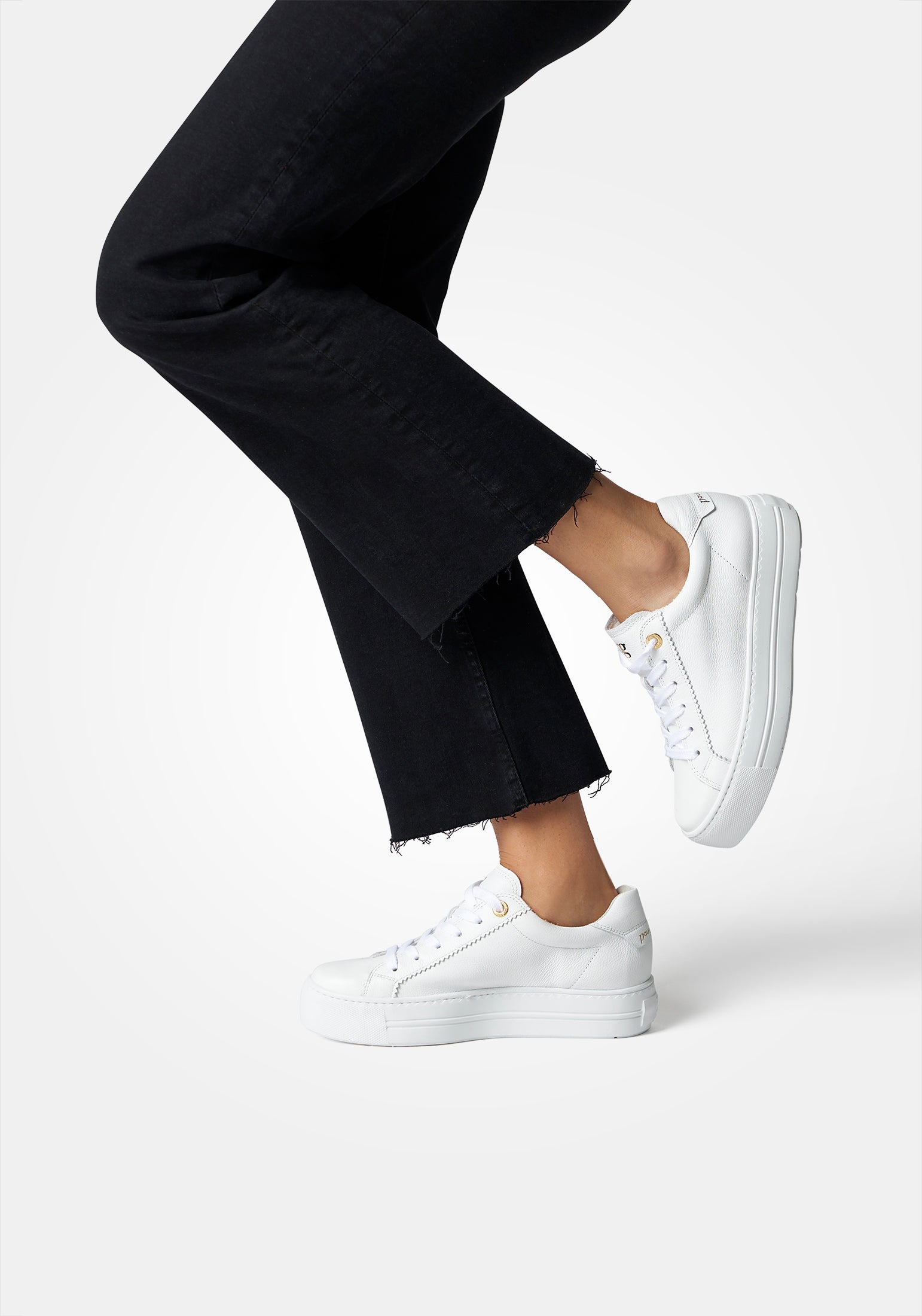 Paul Green super soft calf leather sneakers. These incredibly soft and lightweight sneakers showcase the luxury leathers from a master shoemaker. These cute mini platforms can be worn with a summer dress, skirts and shorts and your cut off jeans with ease. This model has discrete Paul Green sinage in gold and a padded heel and ankle cuff. The outstanding comfort will encourage you to wear them everyday and you will wonder how you managed without them. Paul Green shoes are handmade in Austria using only the finest leathers for admirable quality and exclusive design.
