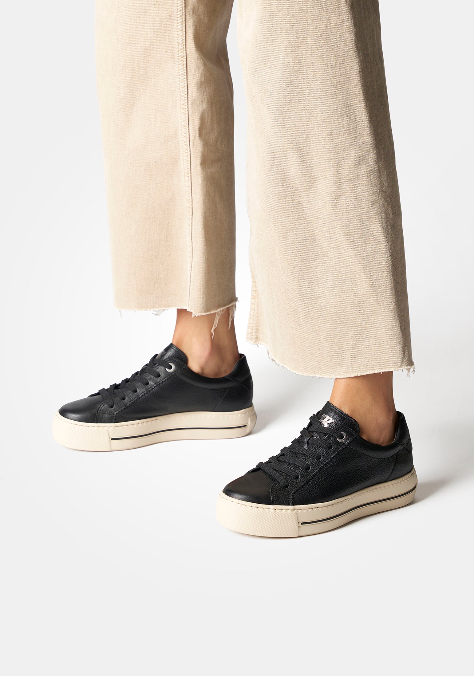 Paul Green super soft leather sneakers. These incredibly soft and lightweight sneakers showcase the luxury leathers from a master shoemaker. This model has discrete Paul Green signage in gold and a padded heel and ankle cuff. The outstanding comfort will encourage you to wear them everyday and you will wonder how you managed without them. Paul Green shoes are handmade in Austria using only the finest leathers for admirable quality and exclusive design.