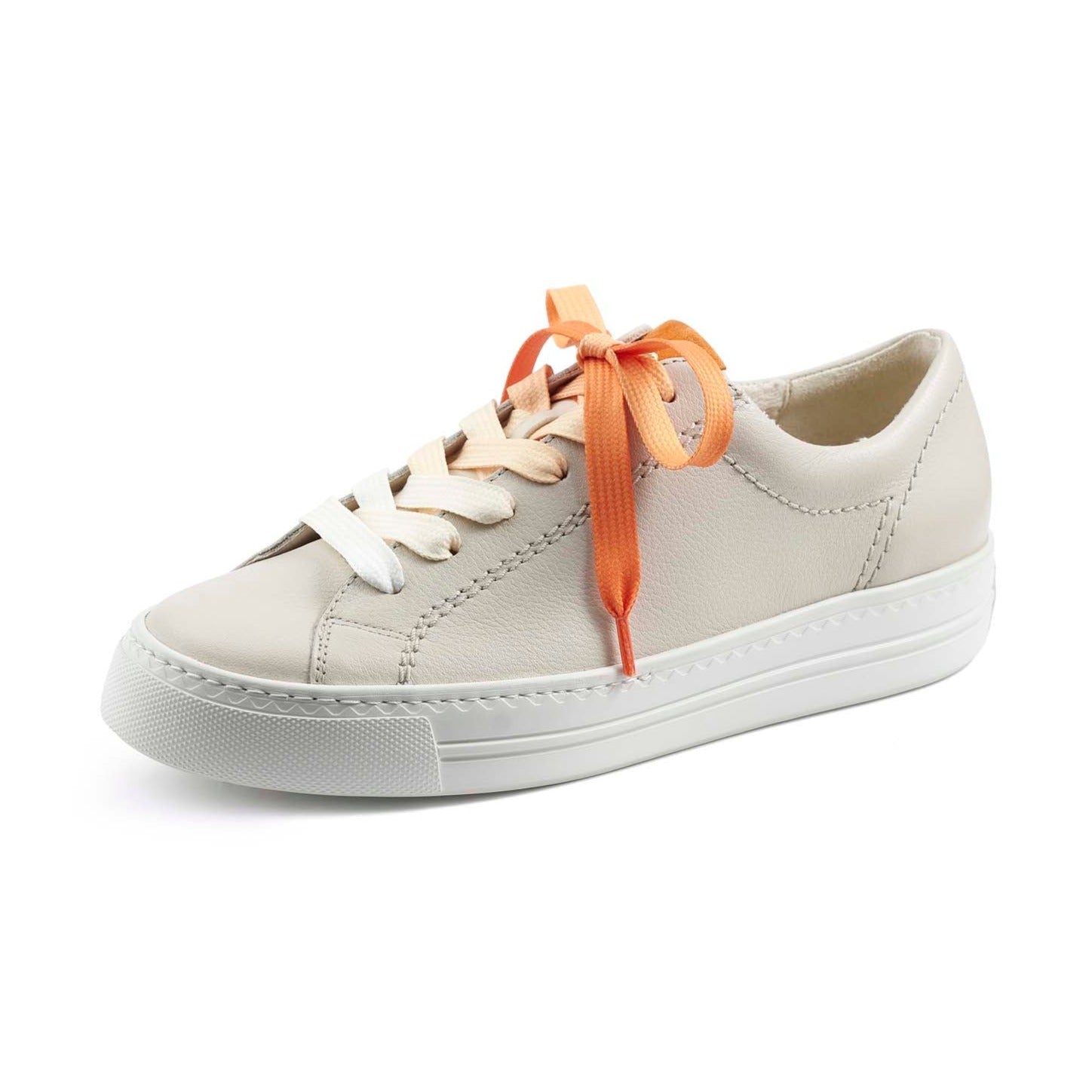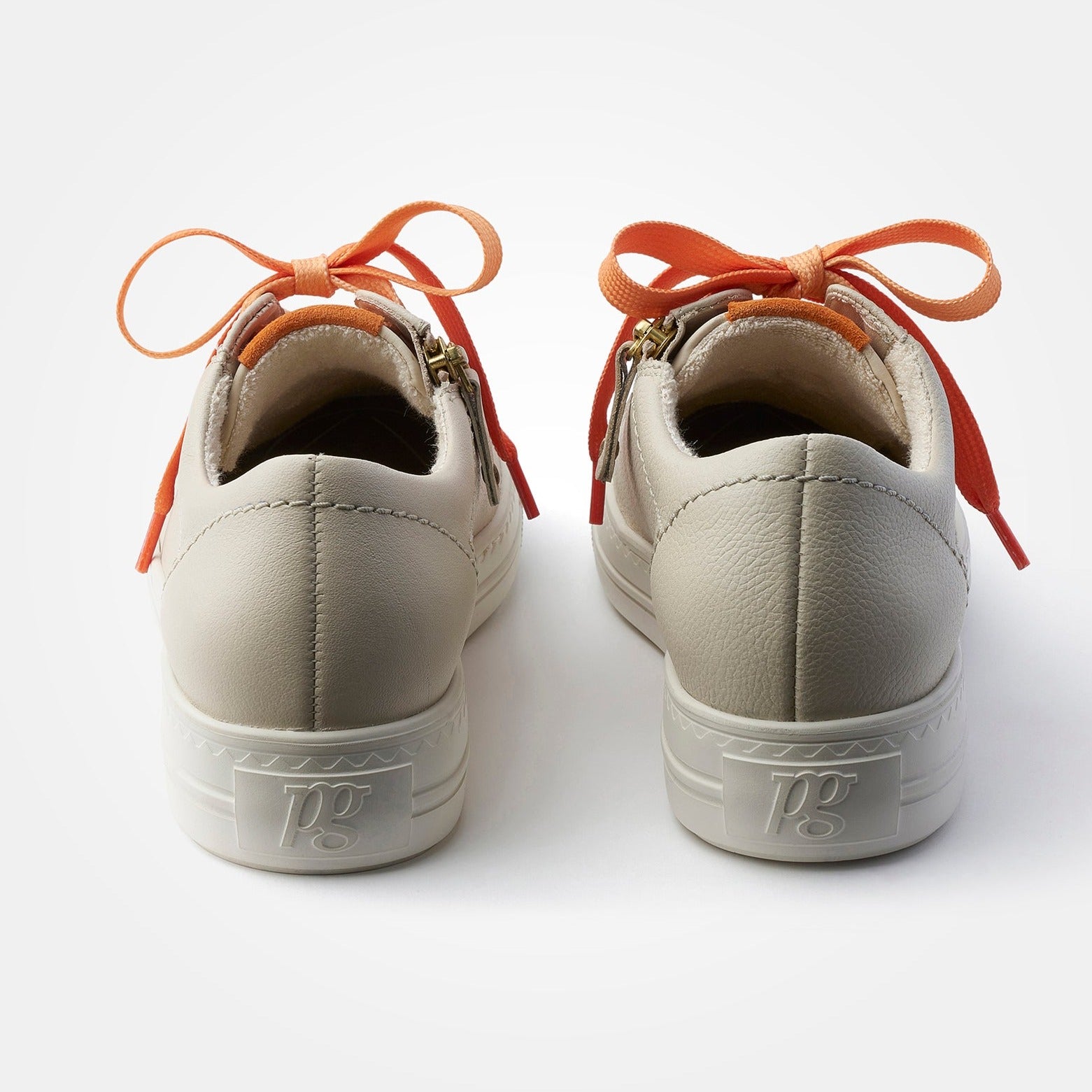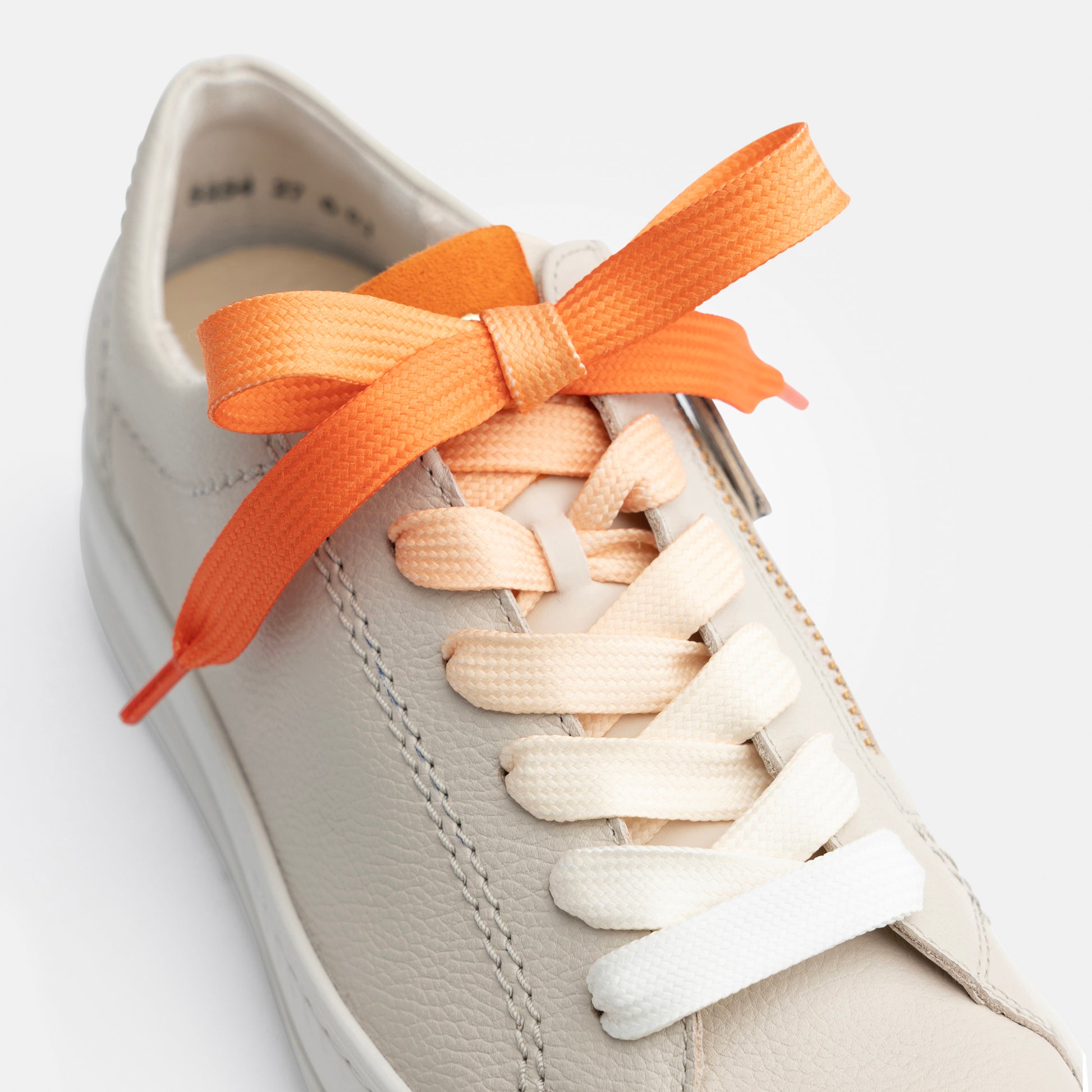 Paul Green super soft calf leather sneakers. These incredibly soft and lightweight sneakers showcase the luxury leathers from a master shoemaker. These cute mini platforms with a papaya ombre coloured lace can be worn with a dress, skirts and shorts and your cut off jeans with ease. This model has a side zip and a padded heel and ankle cuff. The outstanding comfort will encourage you to wear them everyday and you will wonder how you managed without them. Paul Green shoes are handmade in Austria using only the finest leathers for admirable quality and exclusive design.