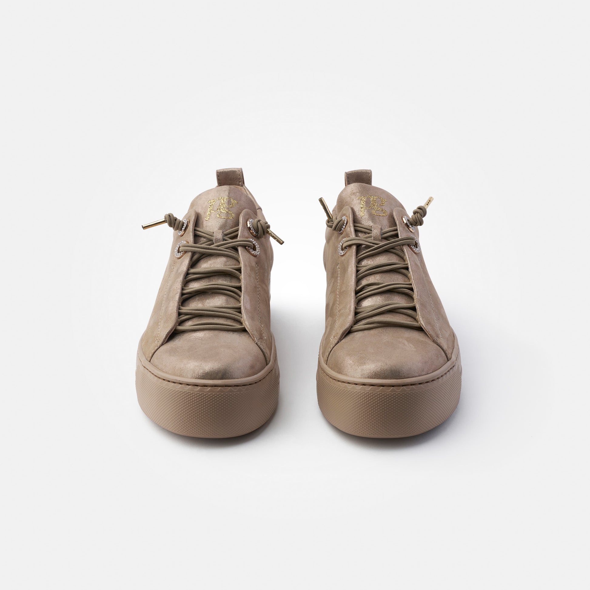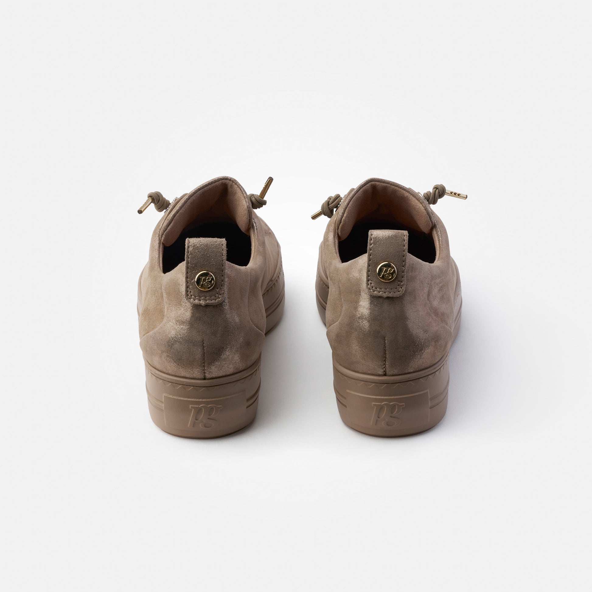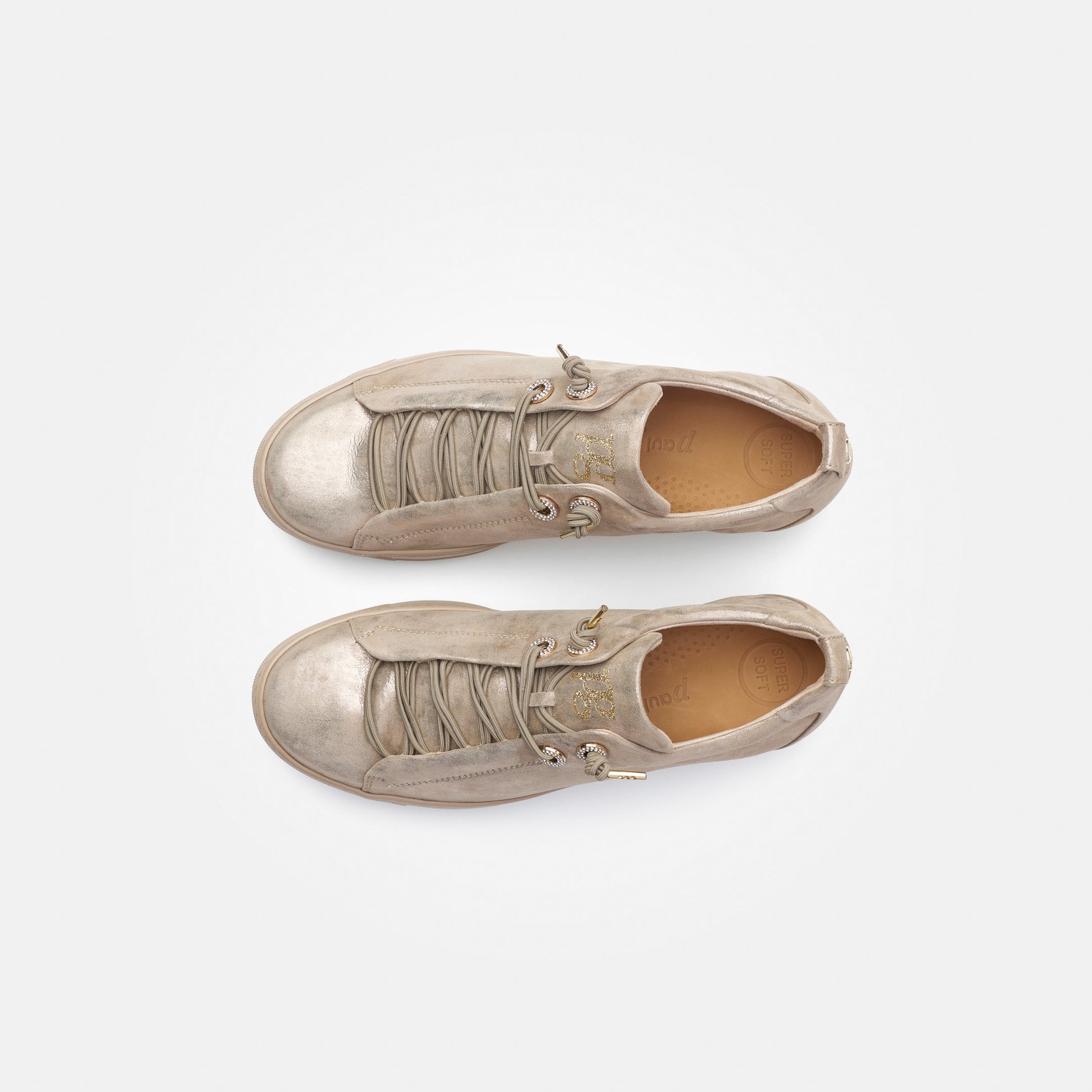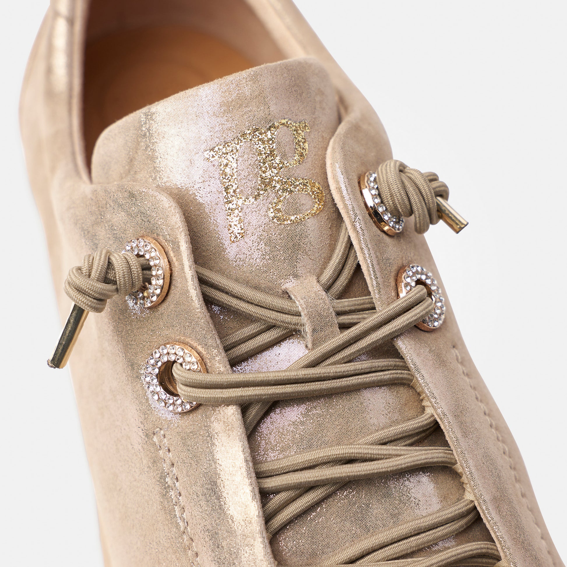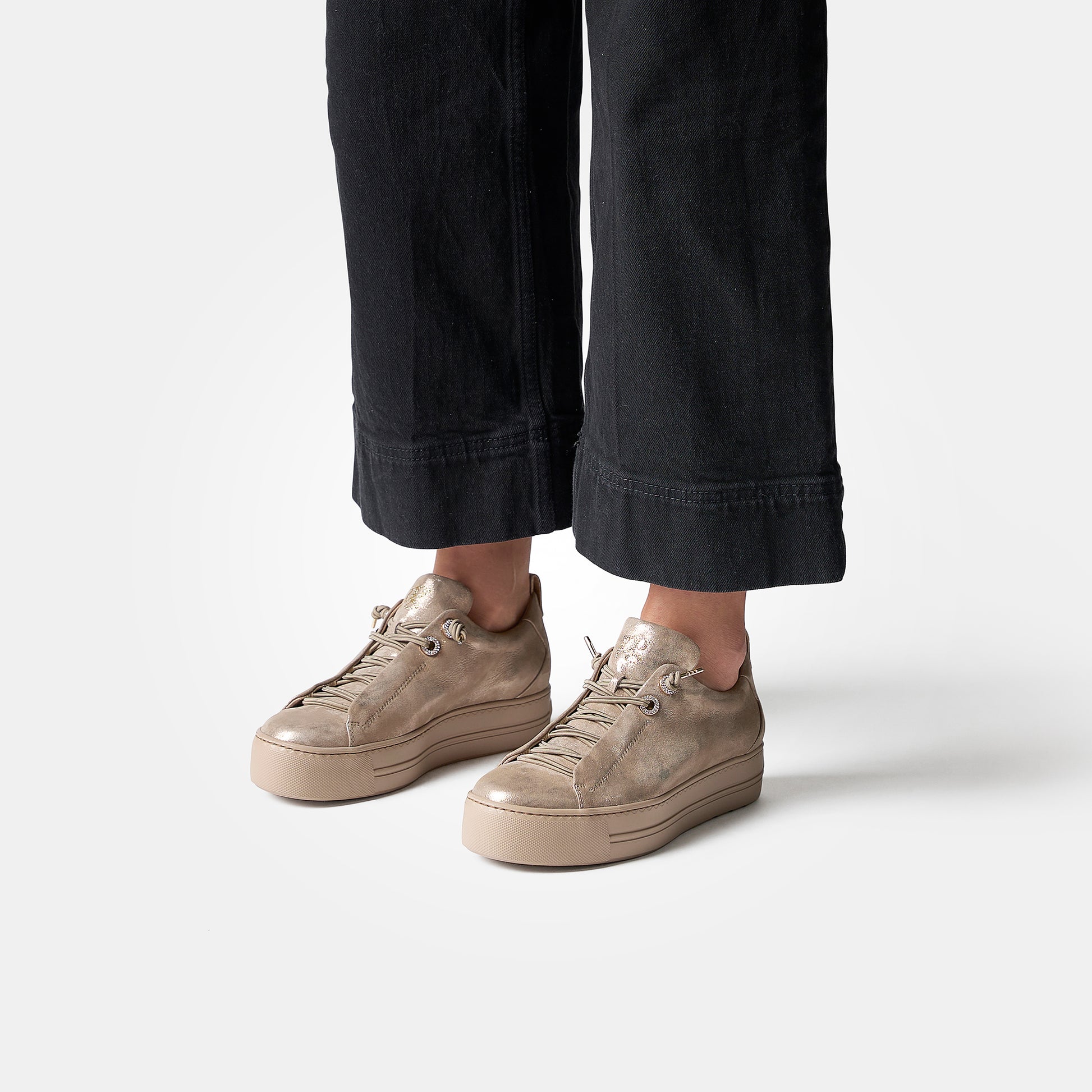 Paul Green antique gloss effect champagne leather sneakers with diamante eyelets and matching diamante PG logo. These exceptional Austrian sneakers are made from fine Italian leather by master shoe makers.