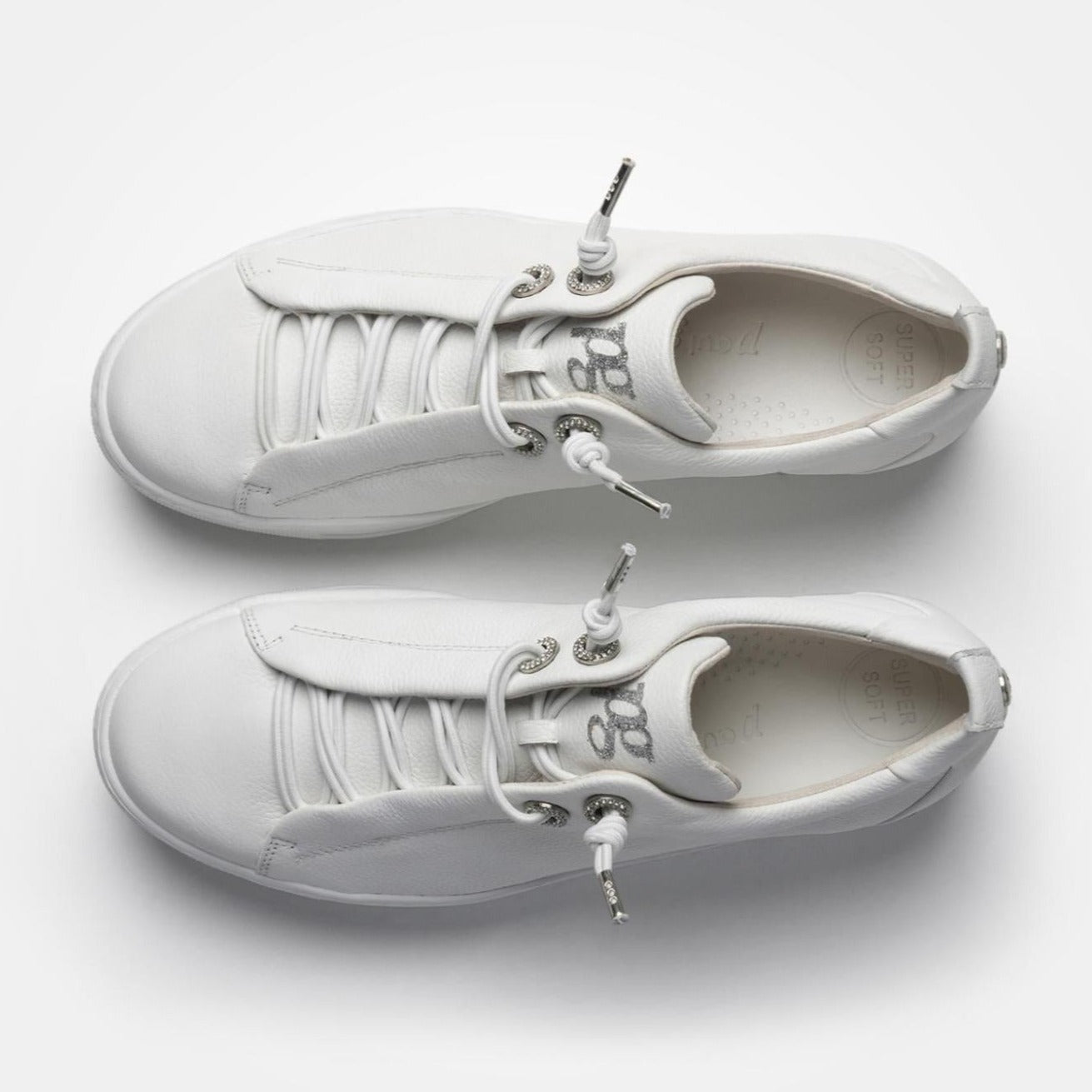 Paul Green beautiful soft leather, leather lined low top sneakers. These incredibly comfortable, lightweight sneakers with elastic laces and diamante top eyelets showcase the luxury products from a master shoemaker. Paul Green shoes are handmade in Austria using only the finest materials for admirable quality and exclusive design.