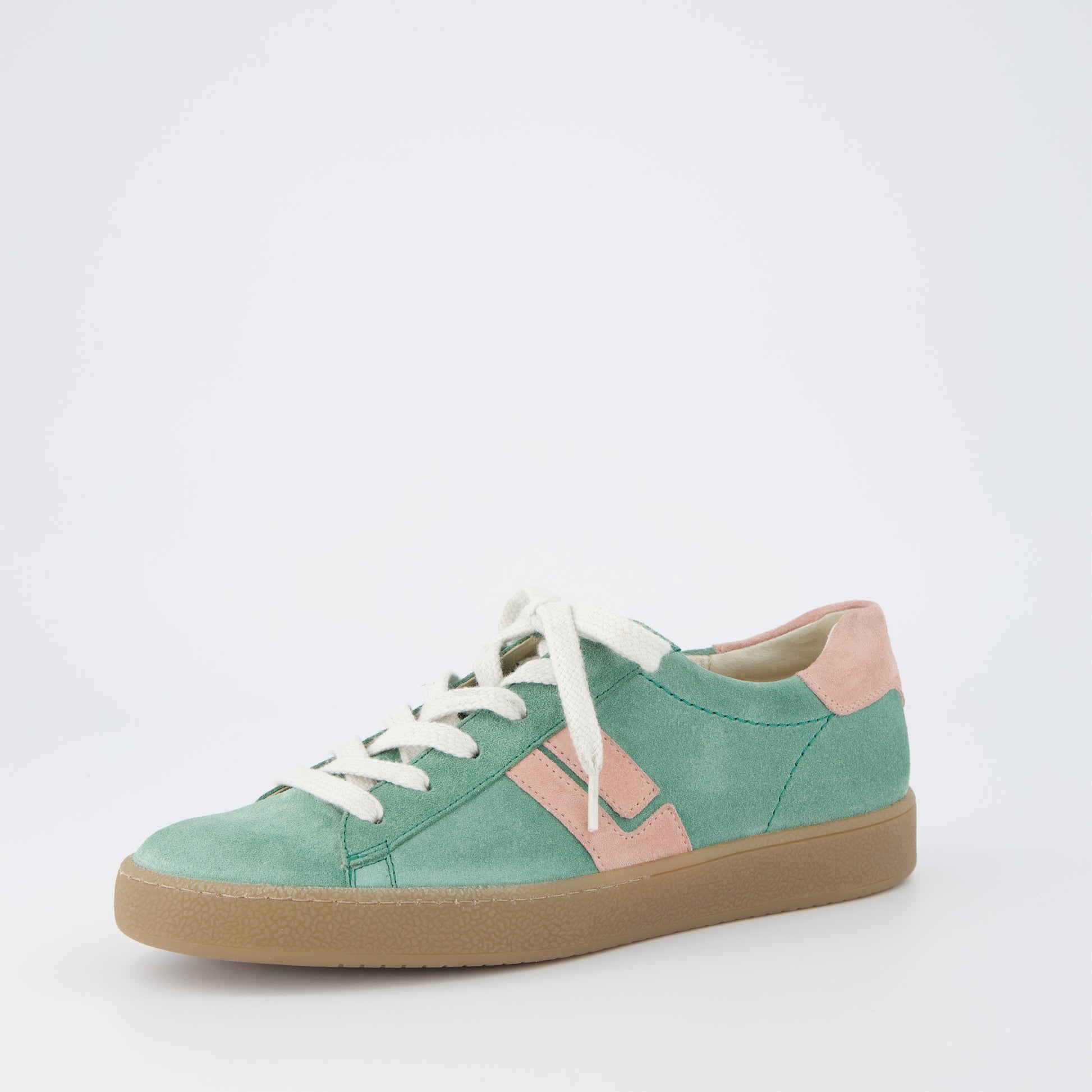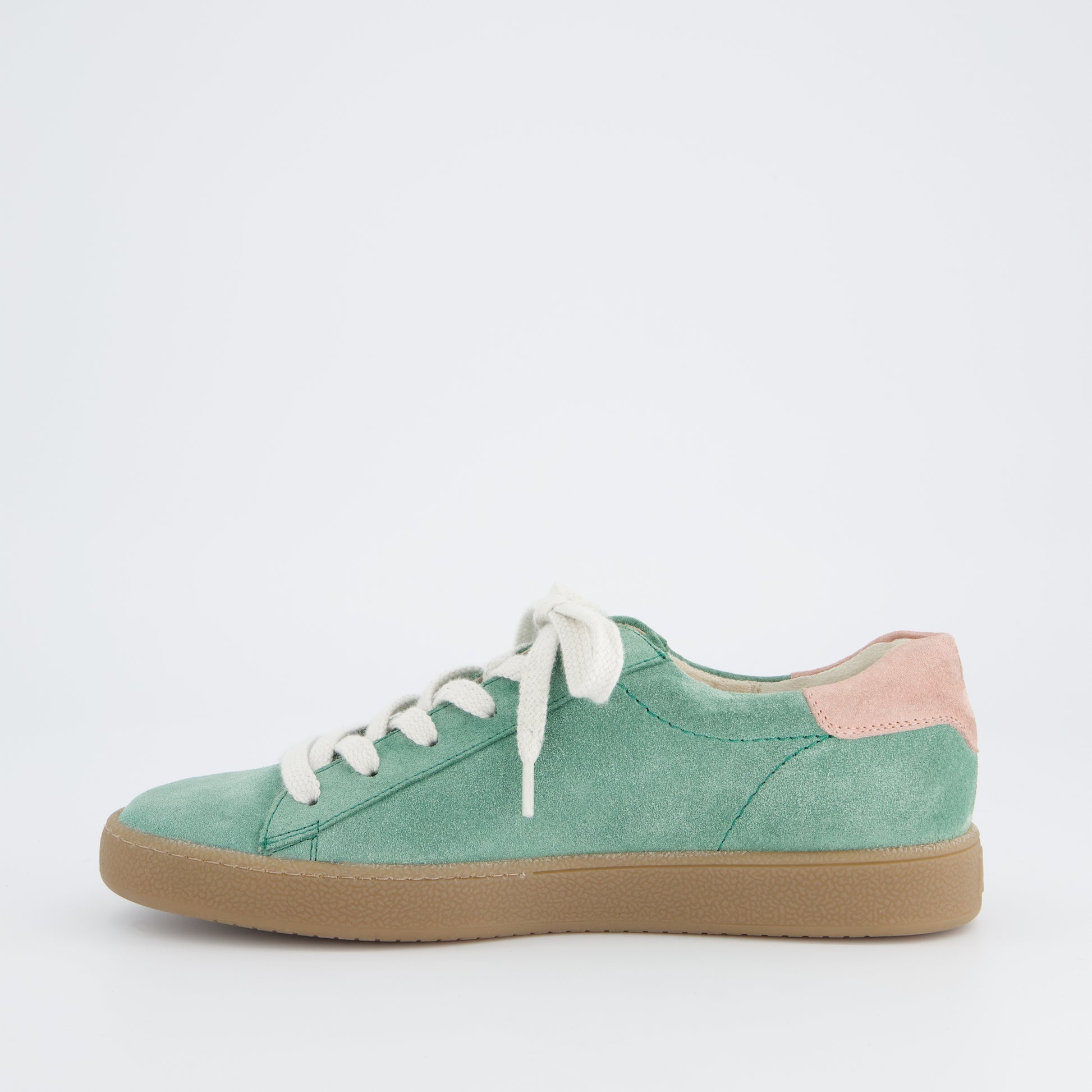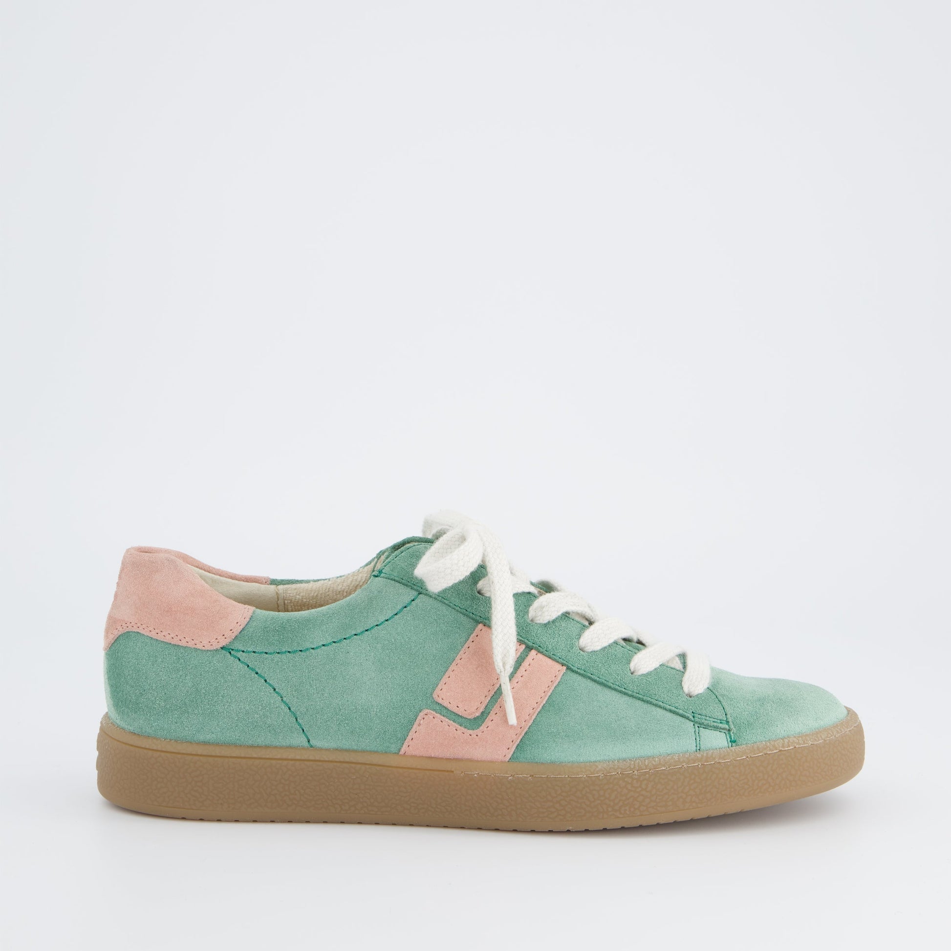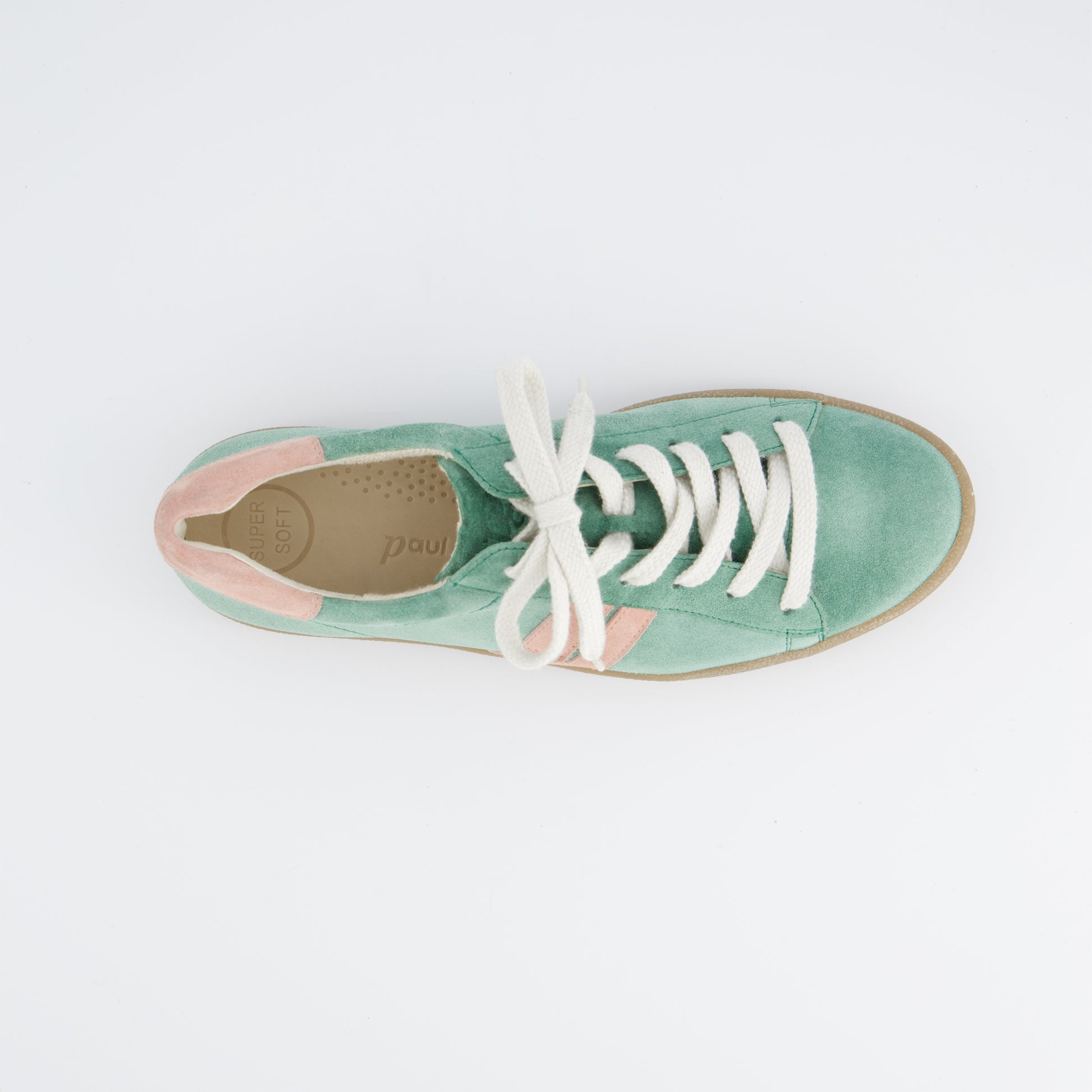 Paul Green super soft suede leather sneakers retro sneakers in wasabi green with rose accents. These cute retro trainers can be worn with a summer dress, skirts and shorts and your cut off jeans with ease. The outstanding comfort will encourage you to wear them everyday and you will wonder how you managed without them. Paul Green shoes are handmade in Austria using only the finest leathers for admirable quality and exclusive design.