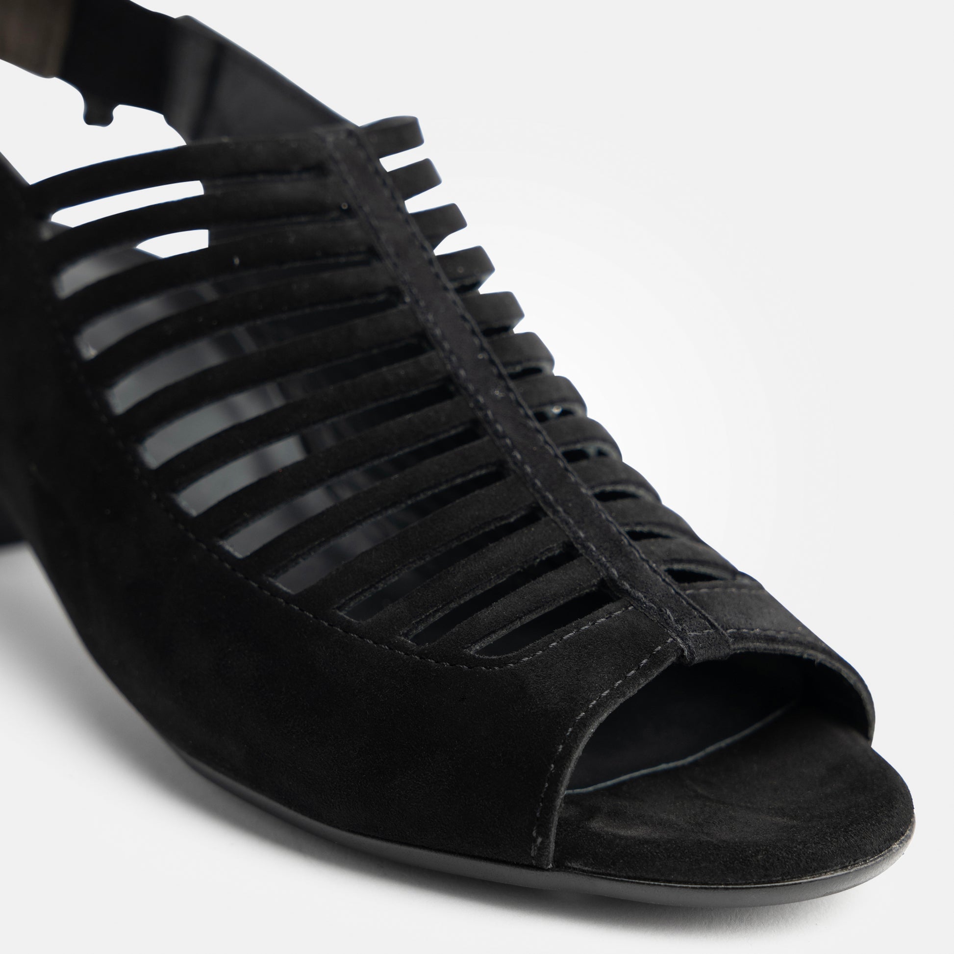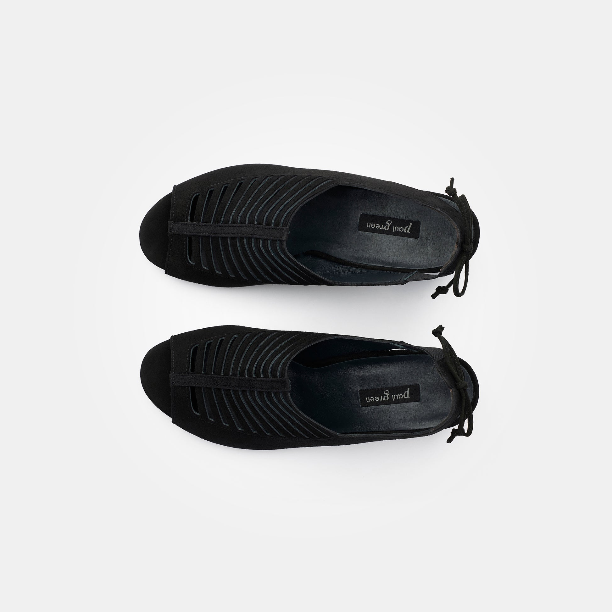 Paul Green super soft nubuck leather sandals. These dressy shoes have a high front for plenty of foot coverage and the fine leather straps create lightness in style. Perfect as a smart everyday sandal which doubles up as evening wear.