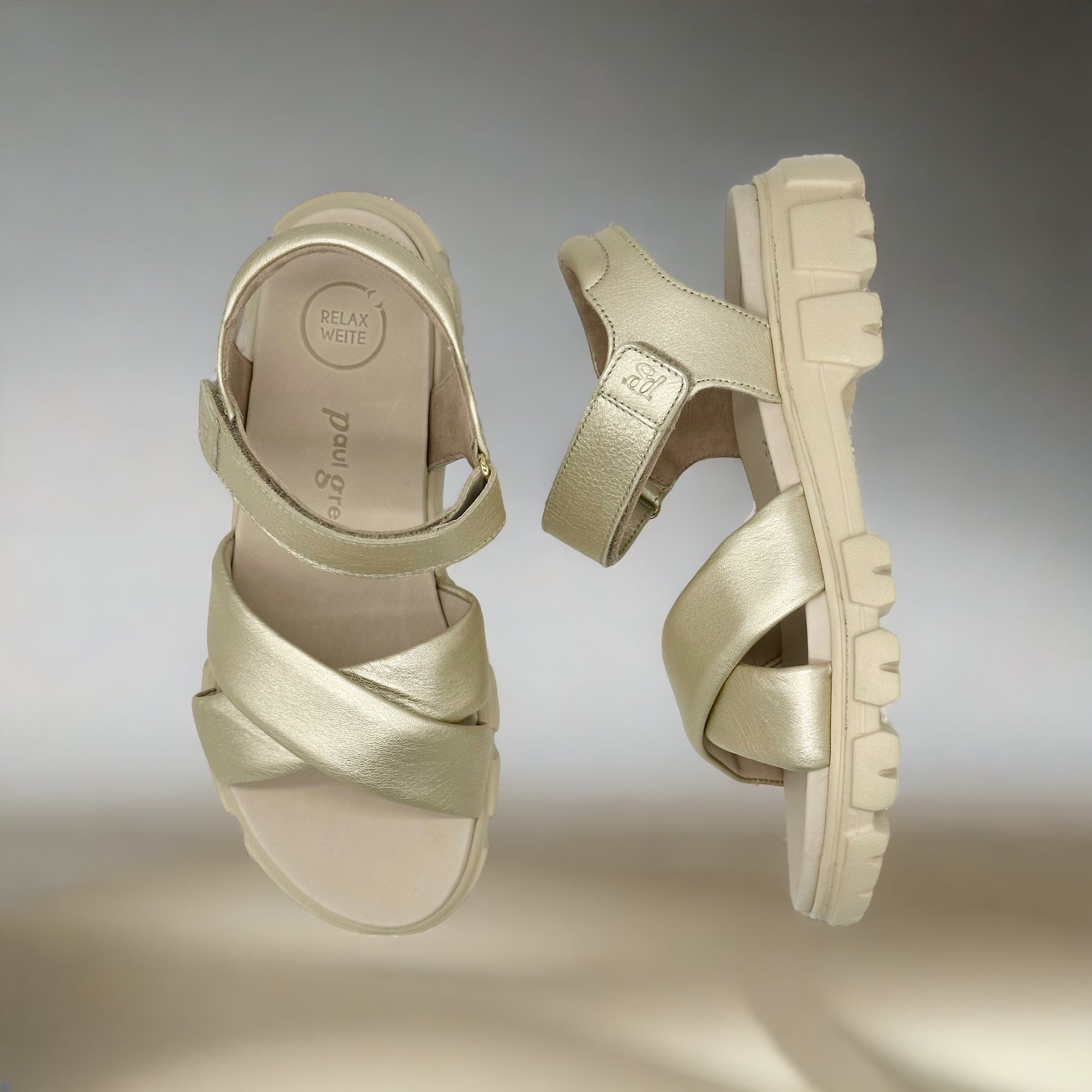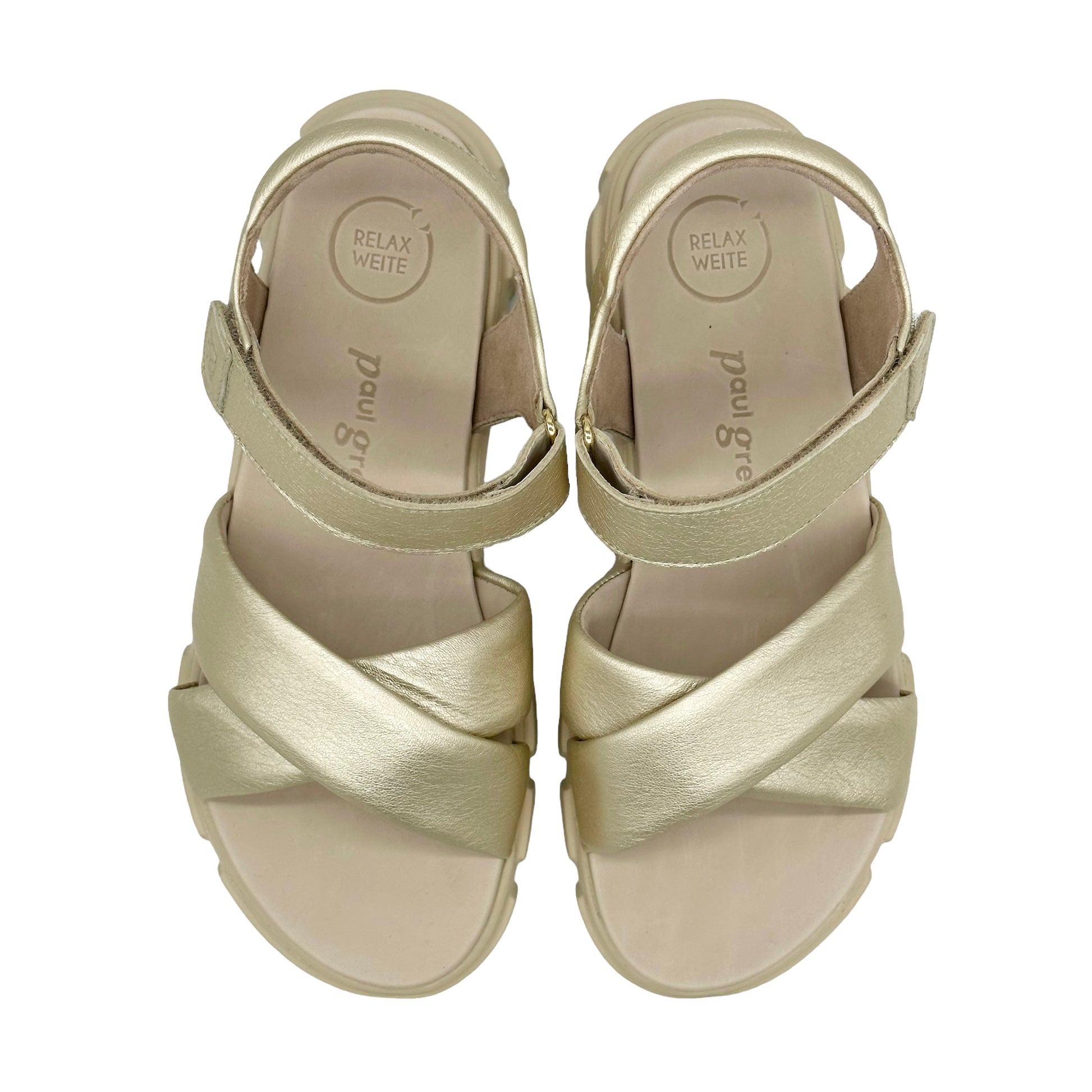 Paul Green super soft leather walking sandals with lightweight flexible sole unit. These quilted leather sandals are absolute bliss to put on your feet and the soft gold sheen adds a dressy touch to a practical sandal.