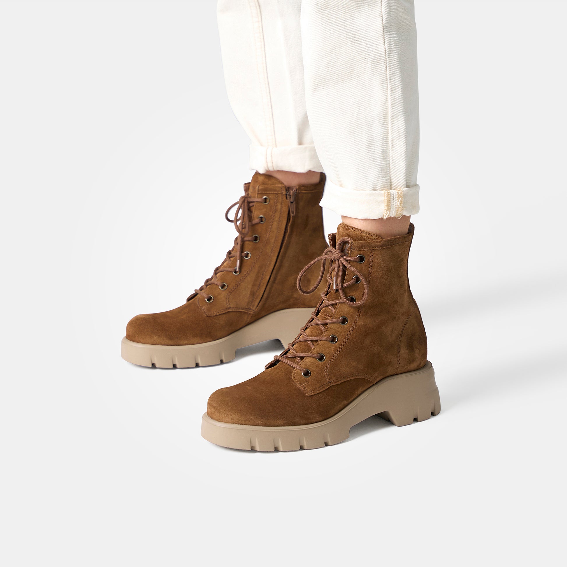 Paul Green Toffee suede ankle boots with lightweight chunky sole unit. These soft and lightweight boots showcase the luxury leathers from a master shoemaker. Paul Green shoes are handmade in Austria using only the finest leathers for admirable quality and exclusive design.