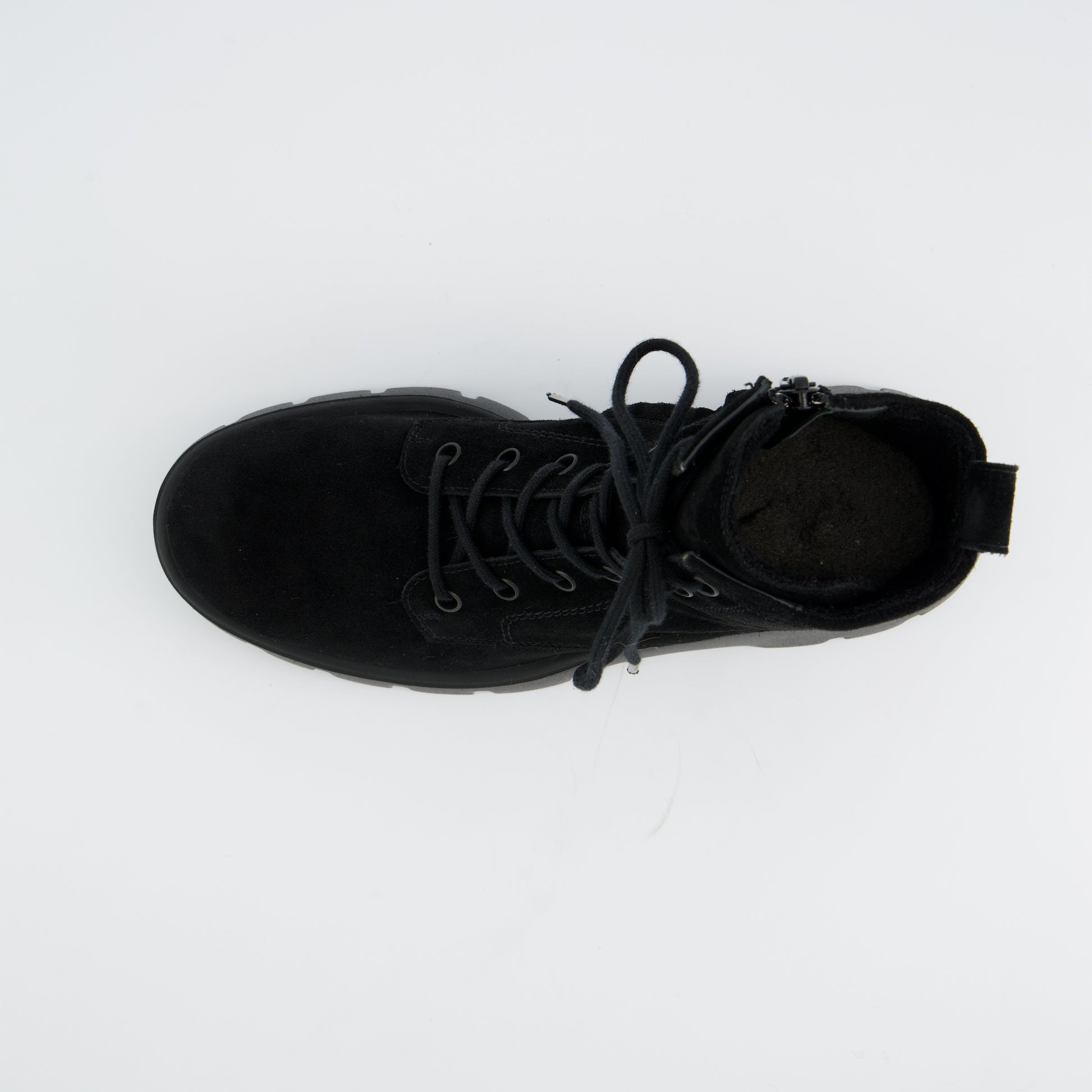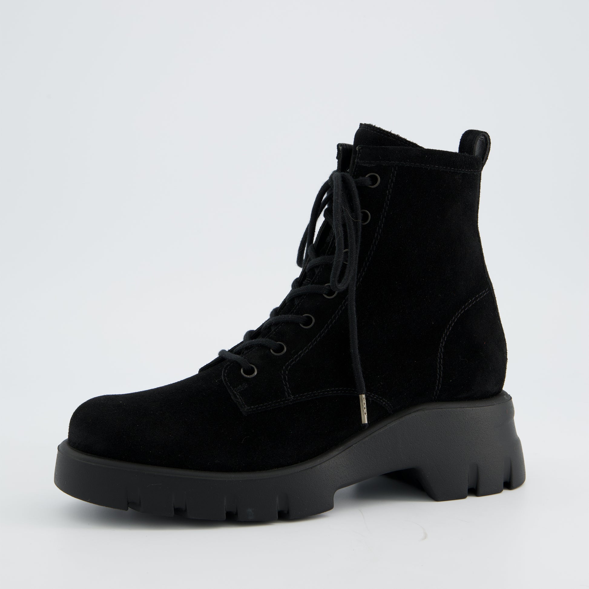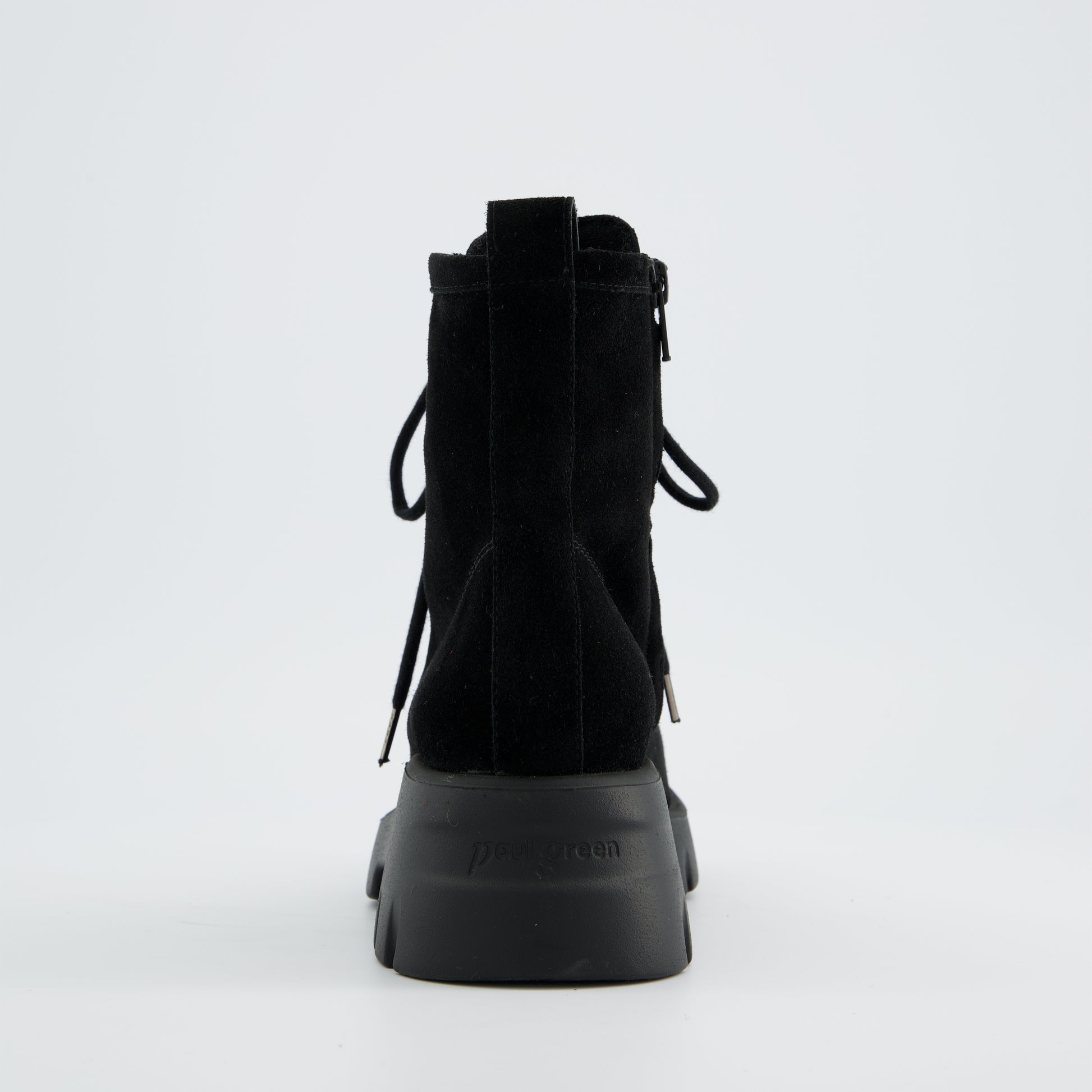 Paul Green black suede ankle boots with lightweight chunky sole unit. These soft and lightweight boots showcase the luxury leathers from a master shoemaker. Paul Green shoes are handmade in Austria using only the finest leathers for admirable quality and exclusive design.