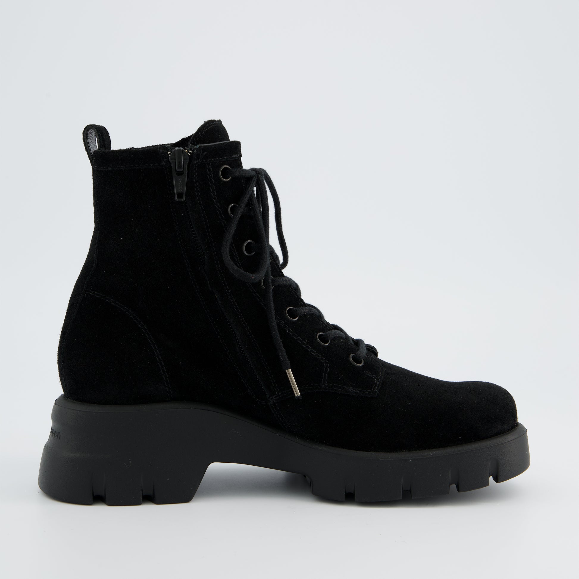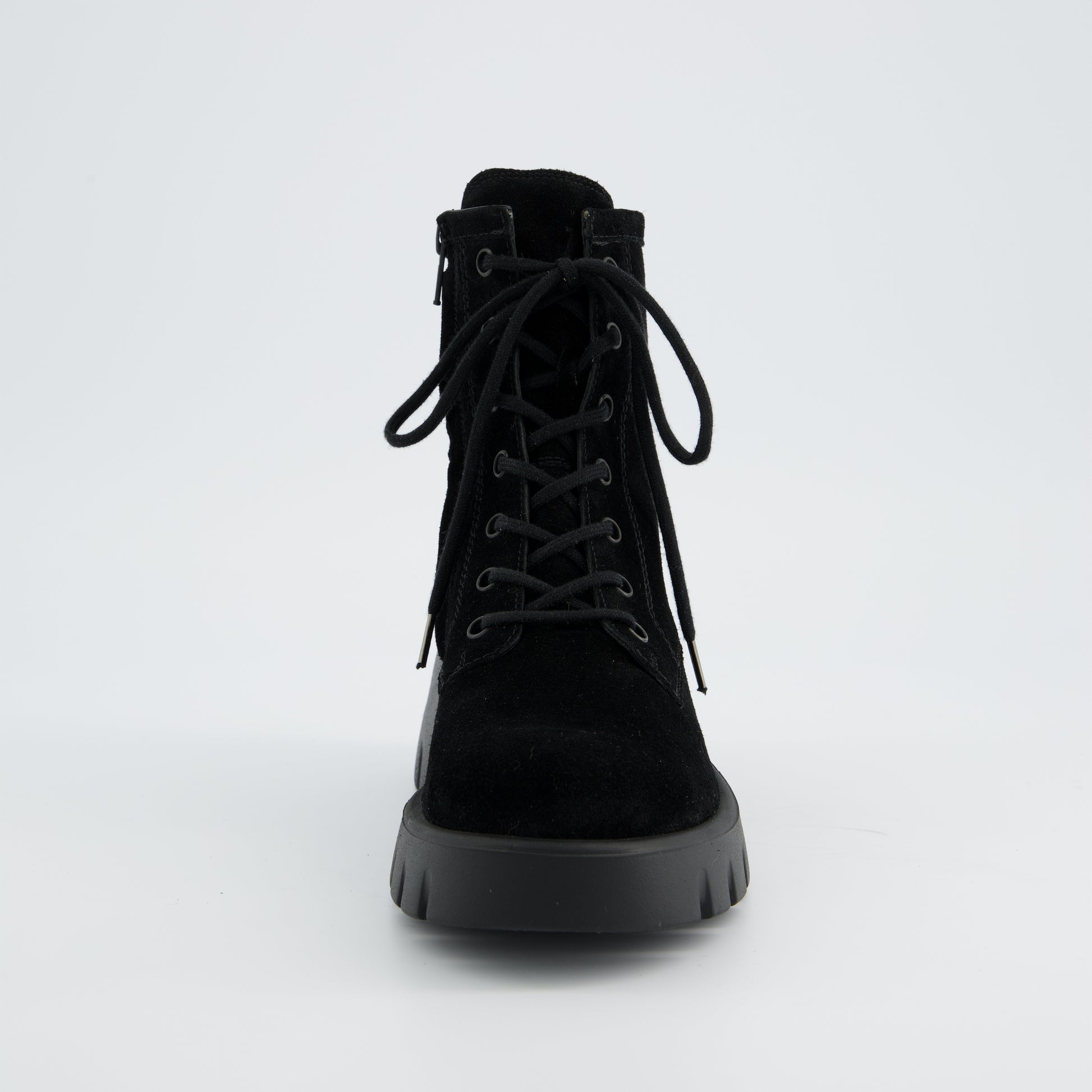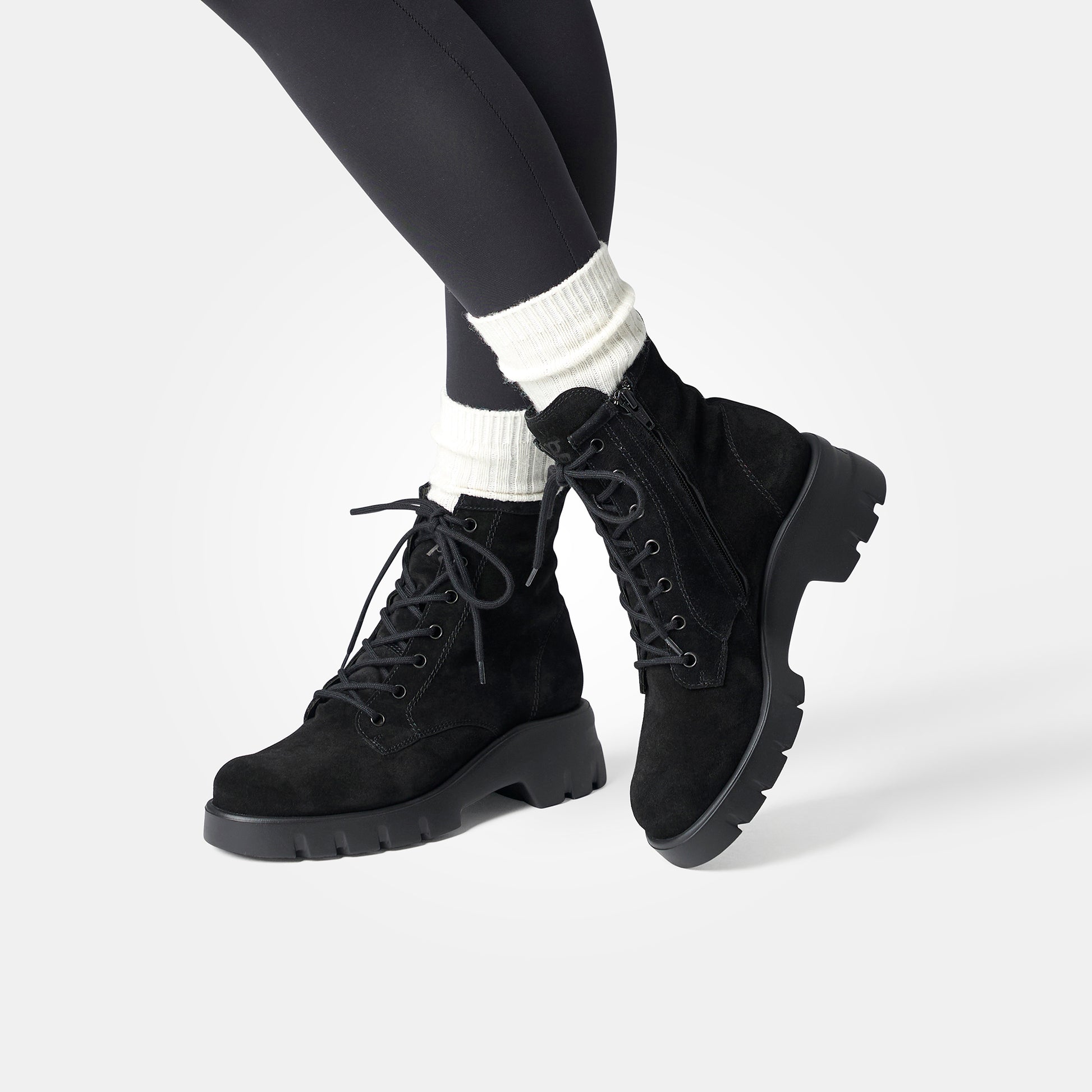 Paul Green black suede ankle boots with lightweight chunky sole unit. These soft and lightweight boots showcase the luxury leathers from a master shoemaker. Paul Green shoes are handmade in Austria using only the finest leathers for admirable quality and exclusive design.