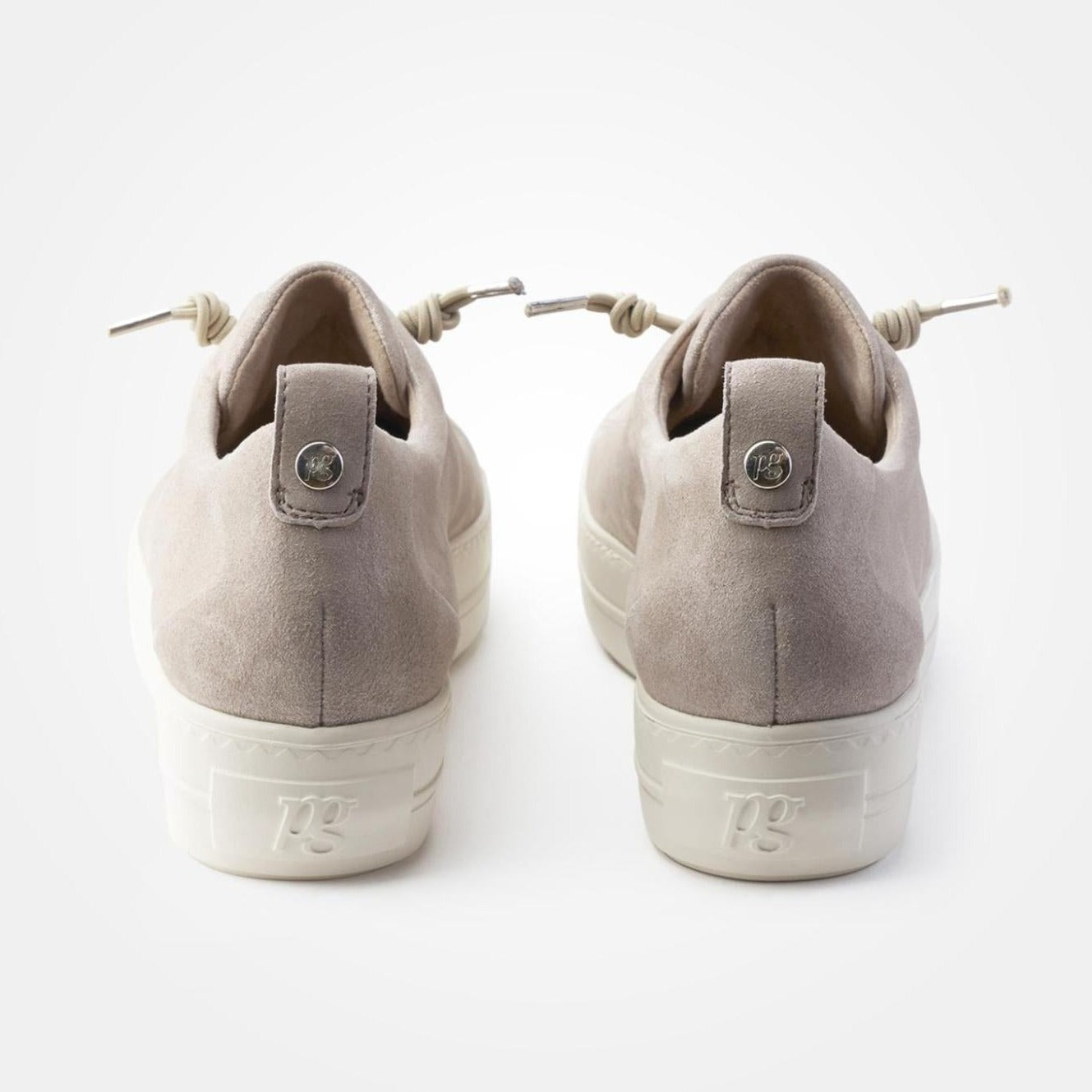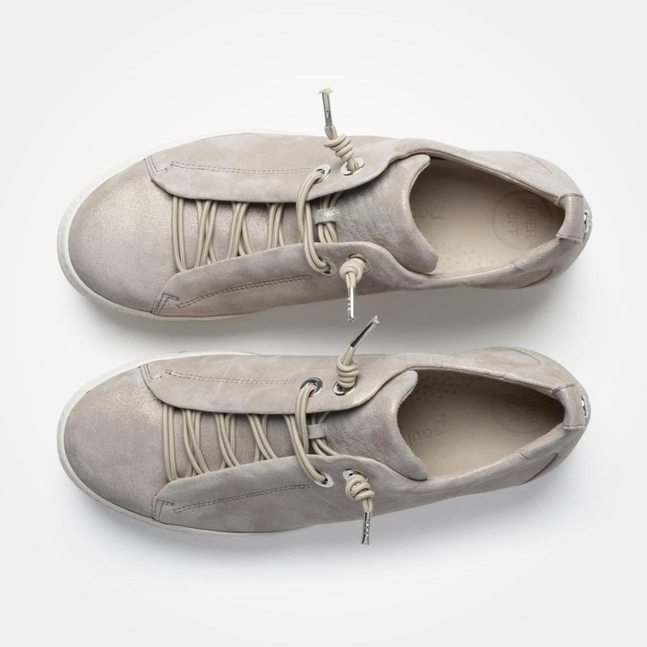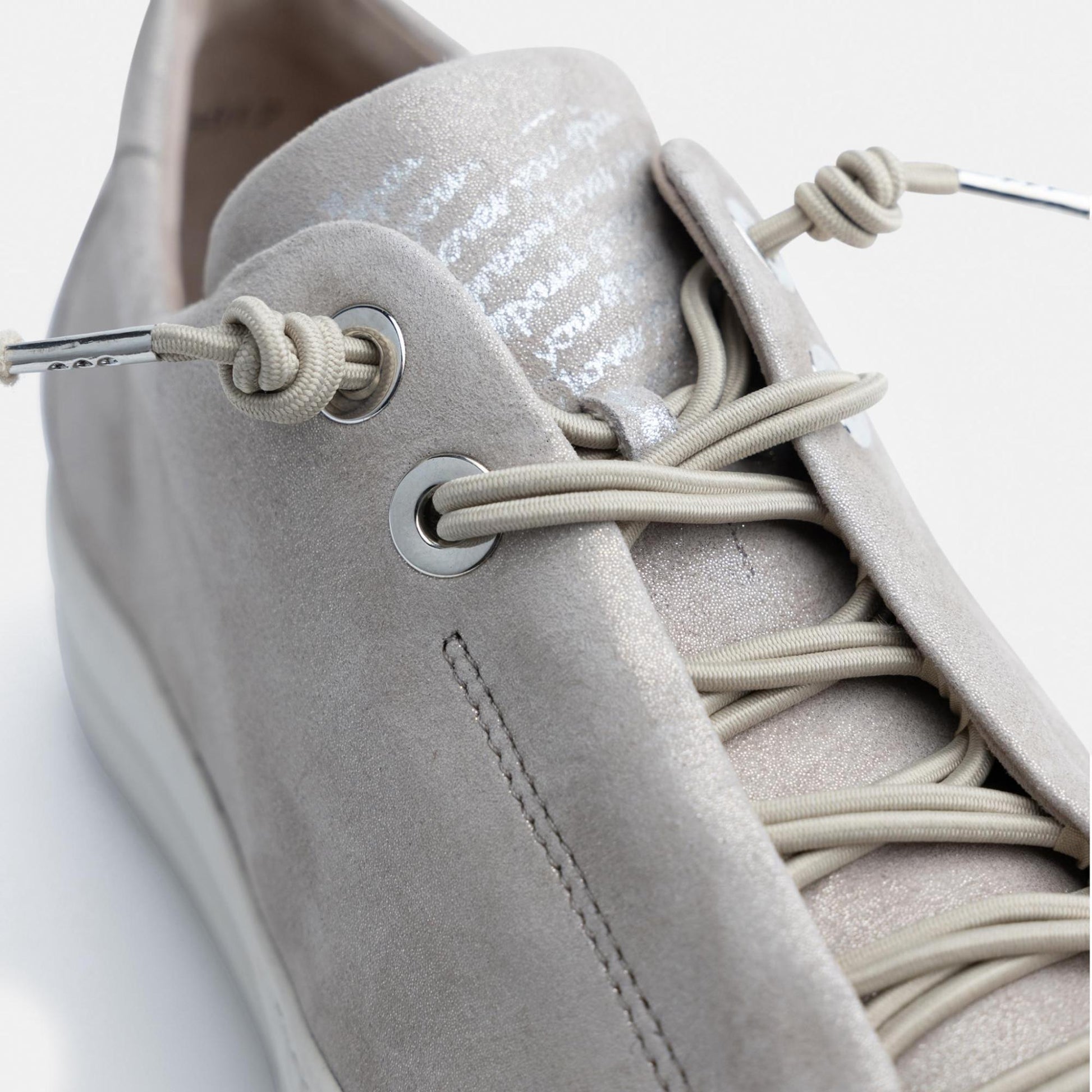 Paul Green super soft calf nubuck leather low top sneakers. These incredibly soft and lightweight cashmere nubuck leather sneakers with silver trims showcase the luxury leathers from a master shoemaker. Paul Green shoes are handmade in Austria using only the finest leathers for admirable quality and exclusive design.