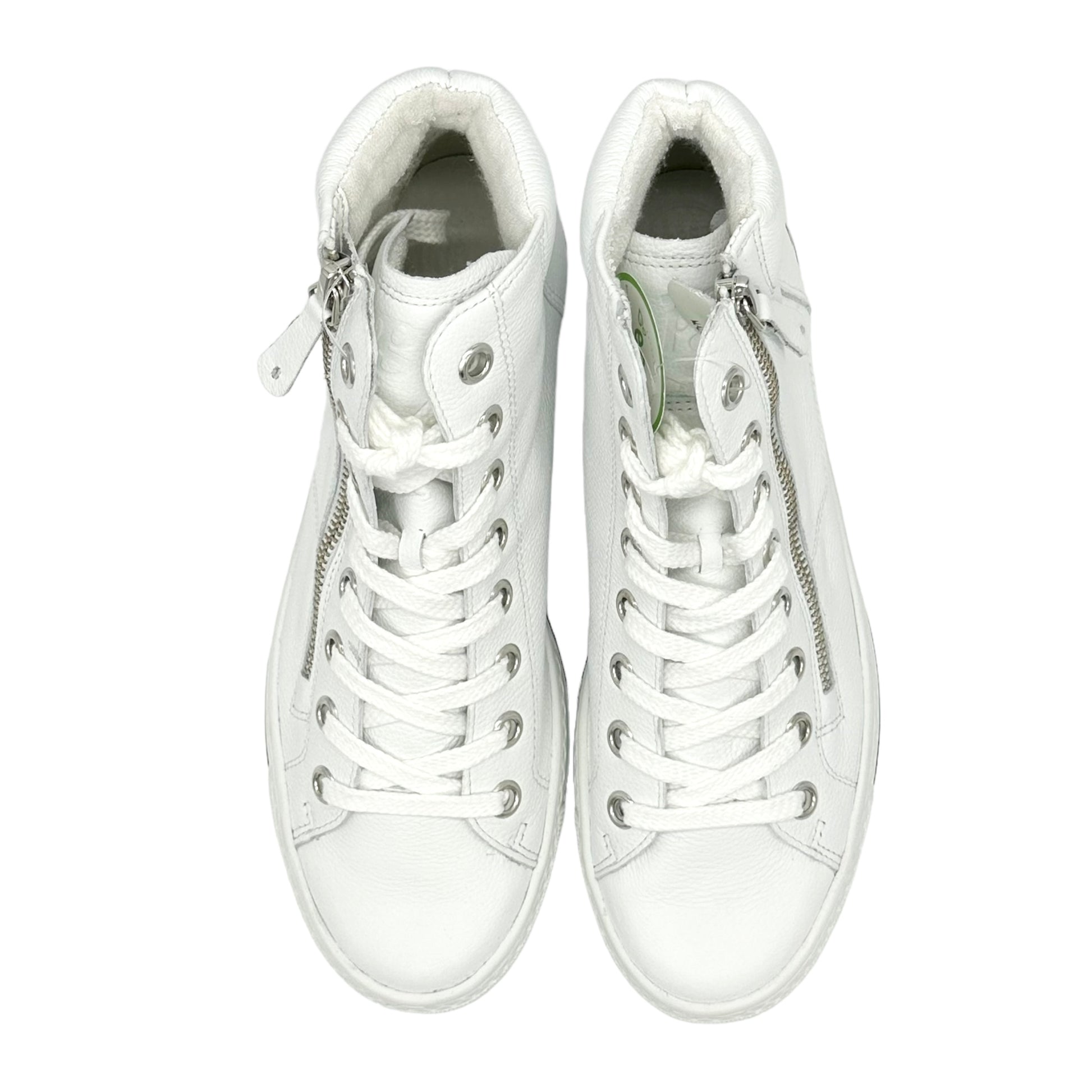 Paul Green super soft calf leather Hi-top sneakers. These incredibly soft and lightweight sneaker boots showcase the luxury leathers from a master shoemaker. These cute mini platforms can be worn with a summer dress, skirts and shorts and your cut off jeans with ease. The outstanding comfort will encourage you to wear them everyday and you will wonder how you managed without them. Paul Green shoes are handmade in Austria using only the finest leathers for admirable quality and exclusive design.