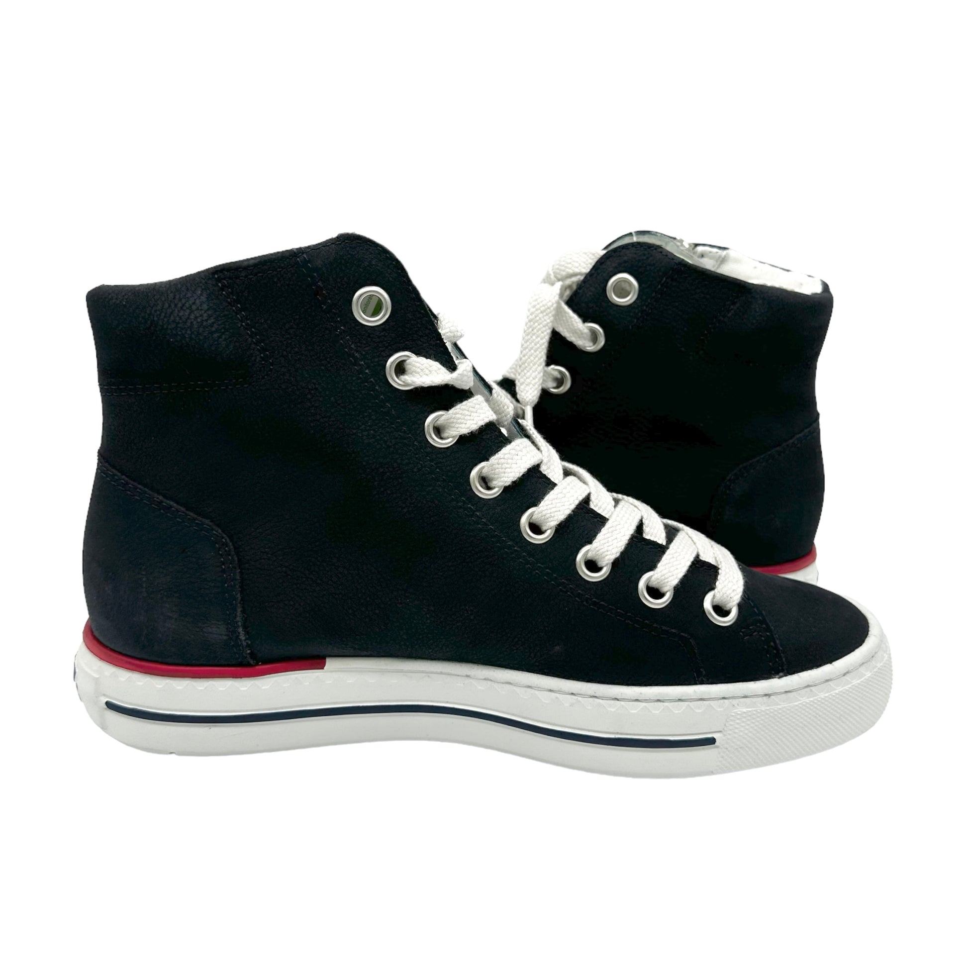 Paul Green super soft nubuck leather Hi-top sneakers. These incredibly soft and lightweight sneaker boots showcase the luxury leathers from a master shoemaker. These cute mini platforms can be worn with a summer dress, skirts and shorts and your cut off jeans with ease. The outstanding comfort will encourage you to wear them everyday and you will wonder how you managed without them. Paul Green shoes are handmade in Austria using only the finest leathers for admirable quality and exclusive design.