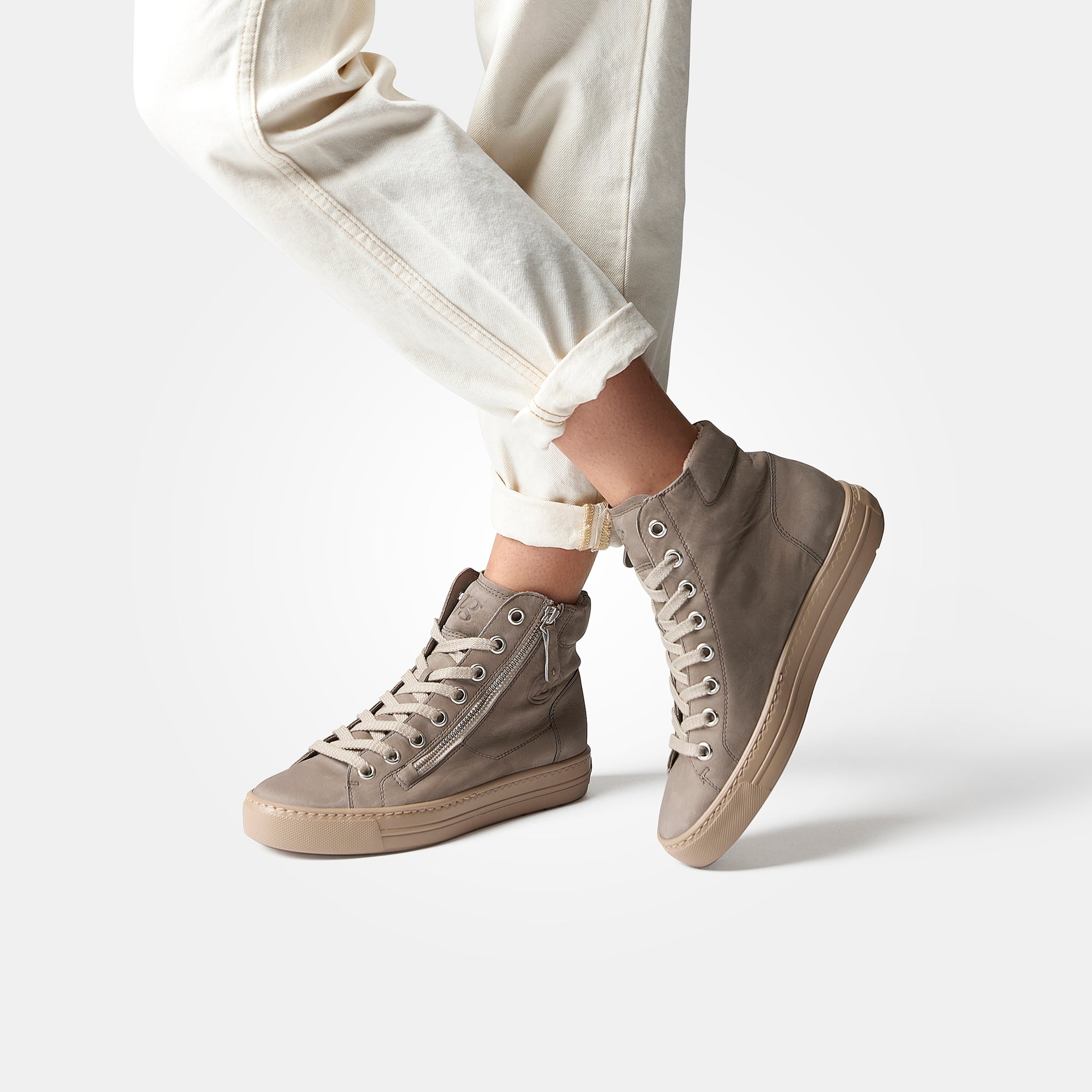 Paul Green ultra soft suede leather Hi-top sneakers. These incredibly soft and lightweight sneaker boots showcase the luxury leathers from a master shoemaker. These cute mini platforms can be worn with skinny jeans or leggings. The outstanding comfort will encourage you to wear them everyday and you will wonder how you managed without them. Paul Green shoes are handmade in Austria using only the finest leathers for admirable quality and exclusive design.