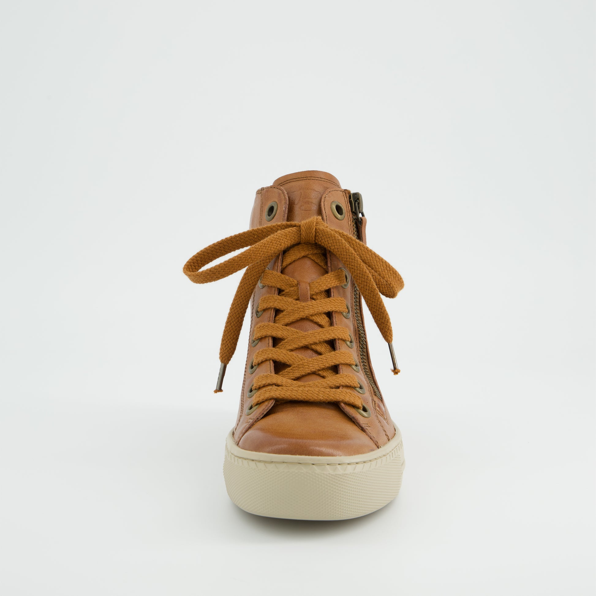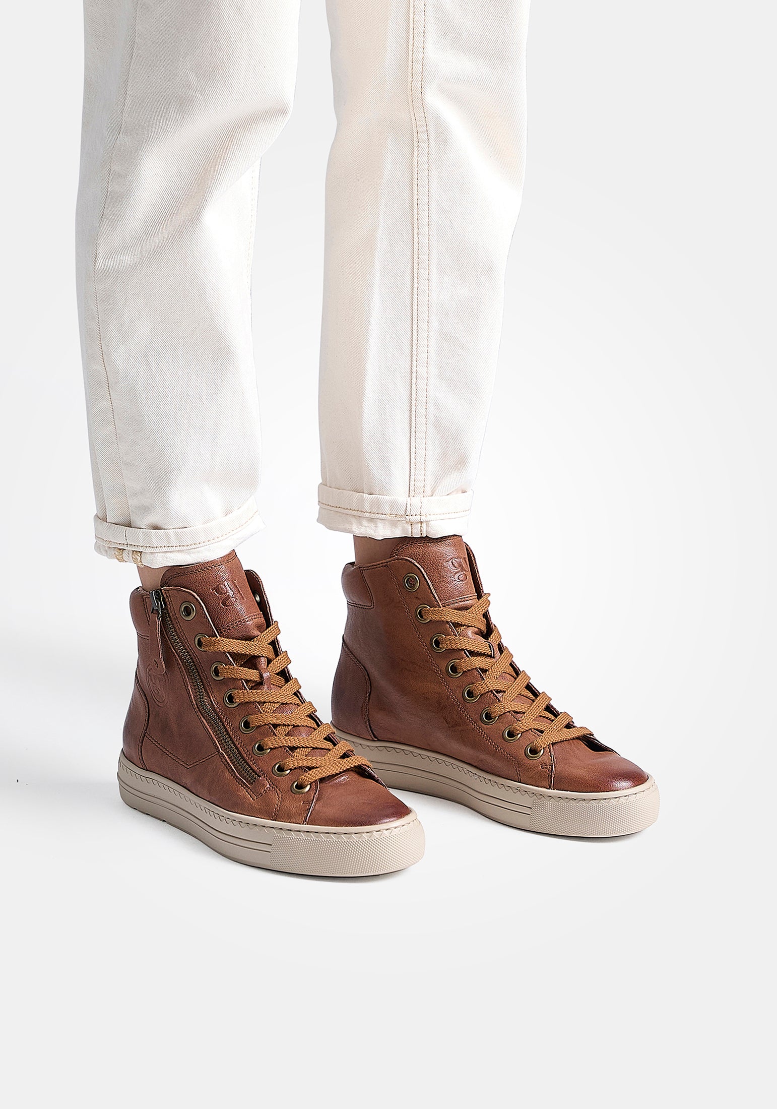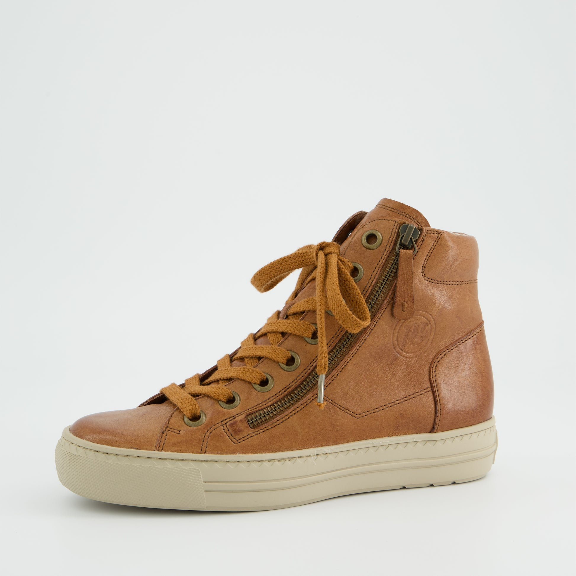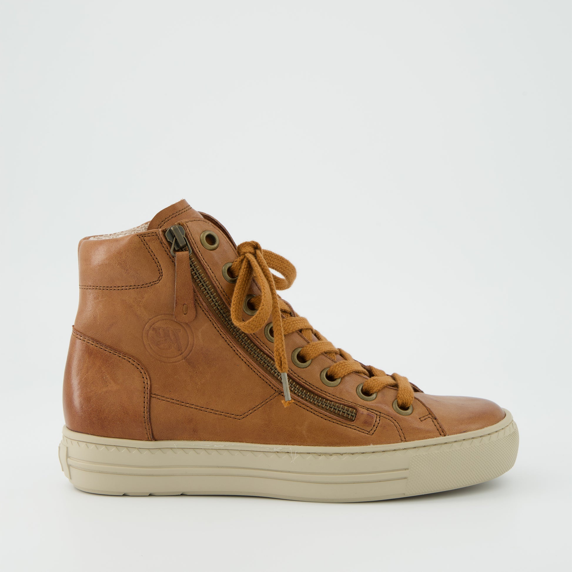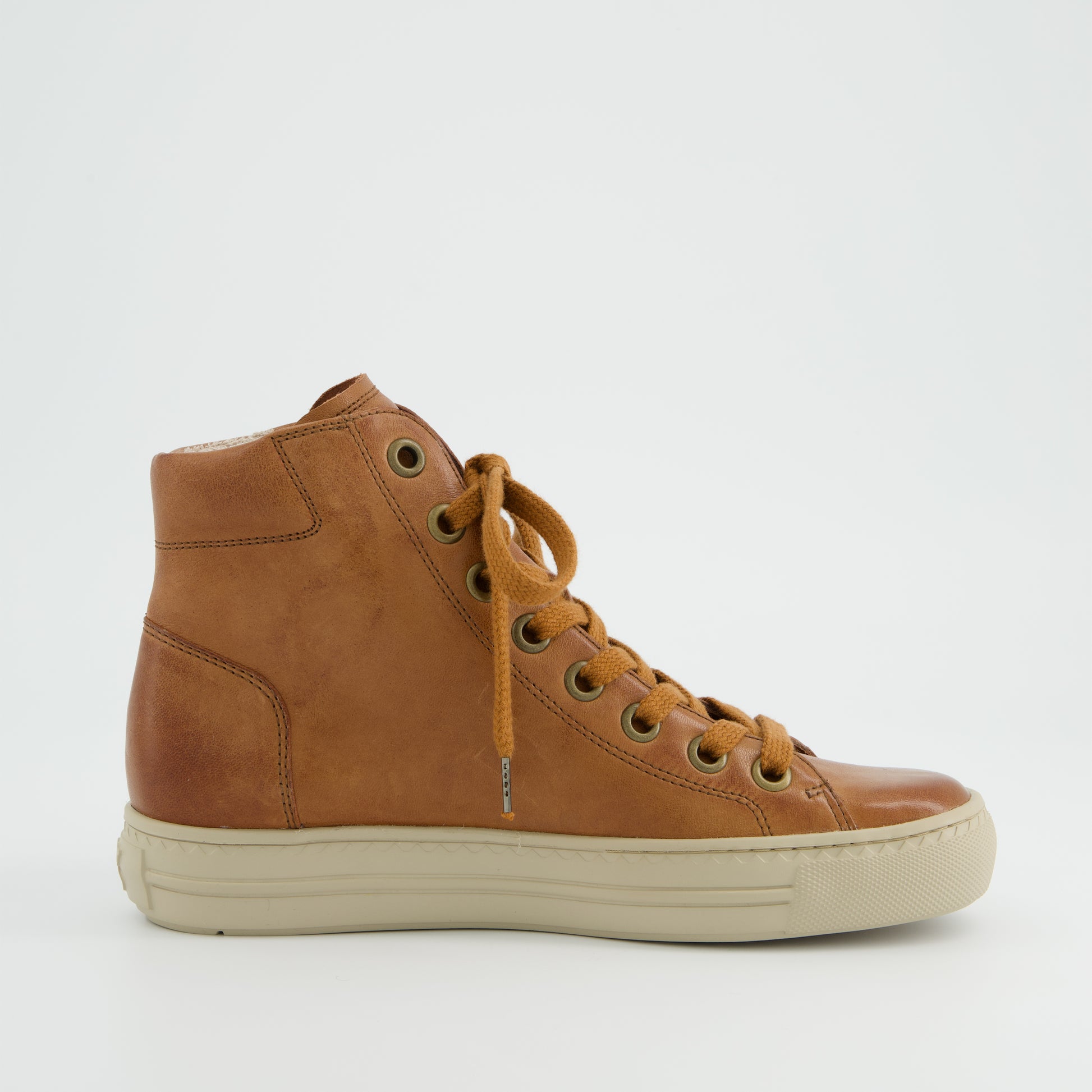 Paul Green classic tan leather hi-top sneaker boots. These incredibly soft and lightweight sneaker boots showcase the luxury leathers from a master shoemaker. Paul Green shoes are handmade in Austria using only the finest leathers for admirable quality and exclusive design.