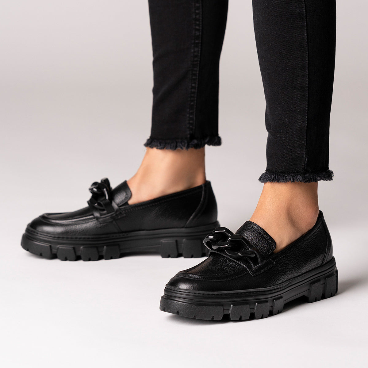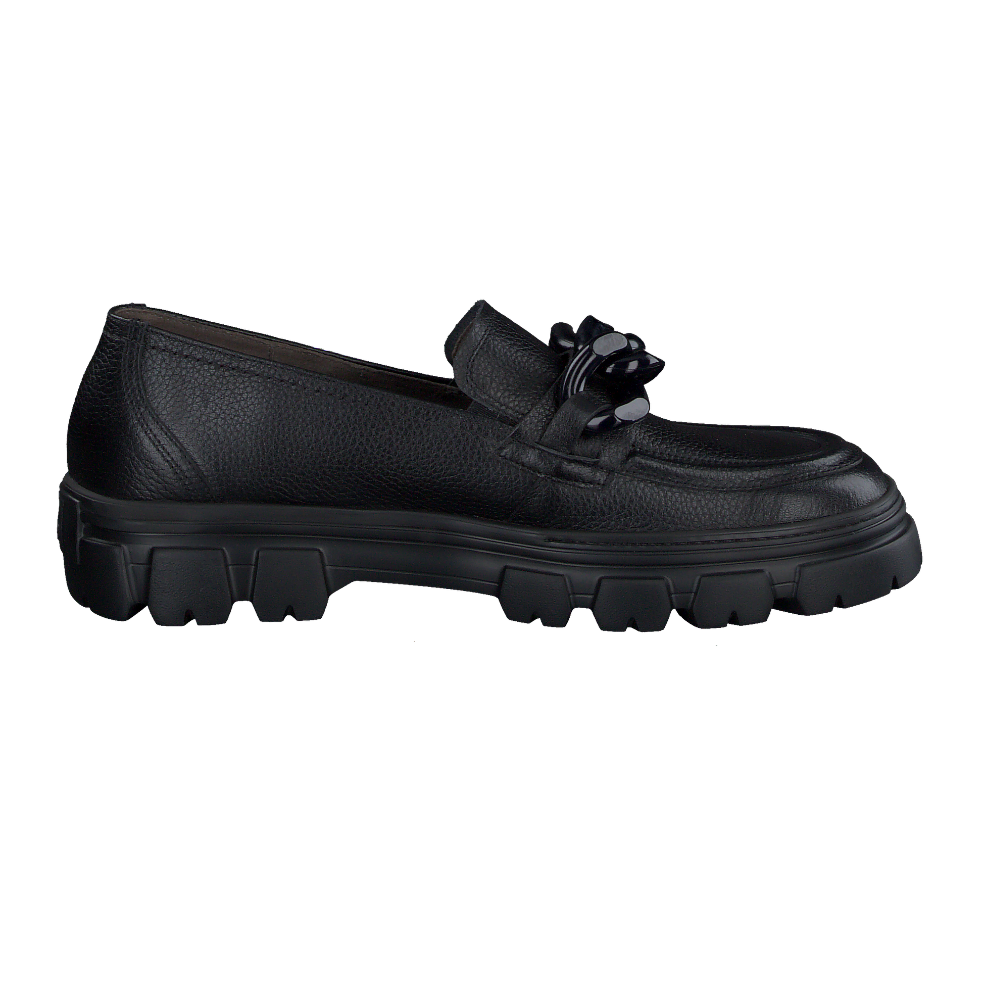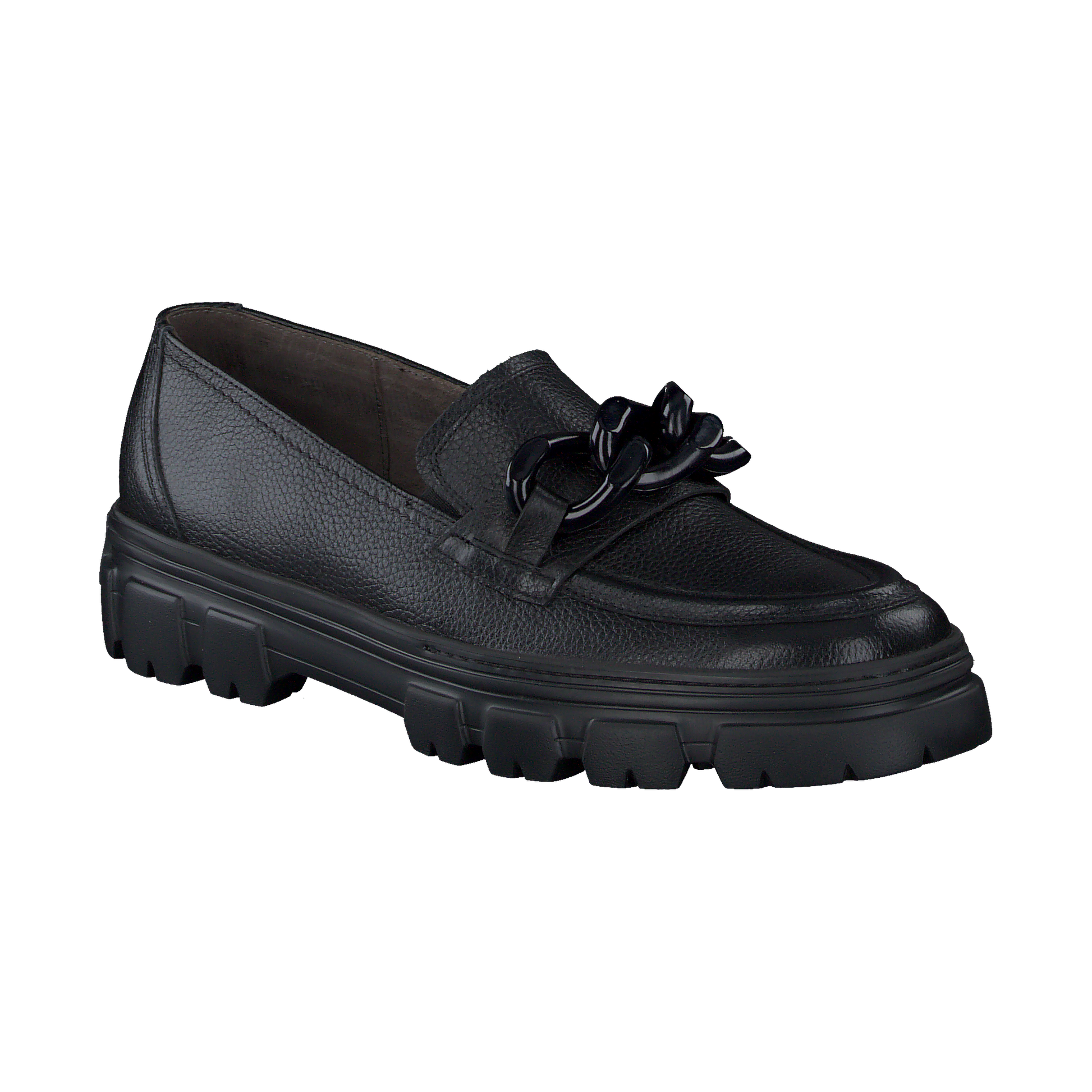 Paul Green calf leather loafers with matching sole and chain detail. These on trend chunky loafers are made from a full grain almond calf leather and look great with cut off trousers or a dress. Paul Green shoes are handmade in Austria using only the finest leathers for admirable quality and exclusive design.