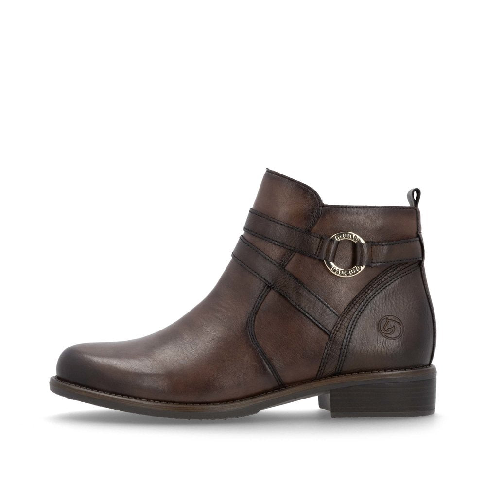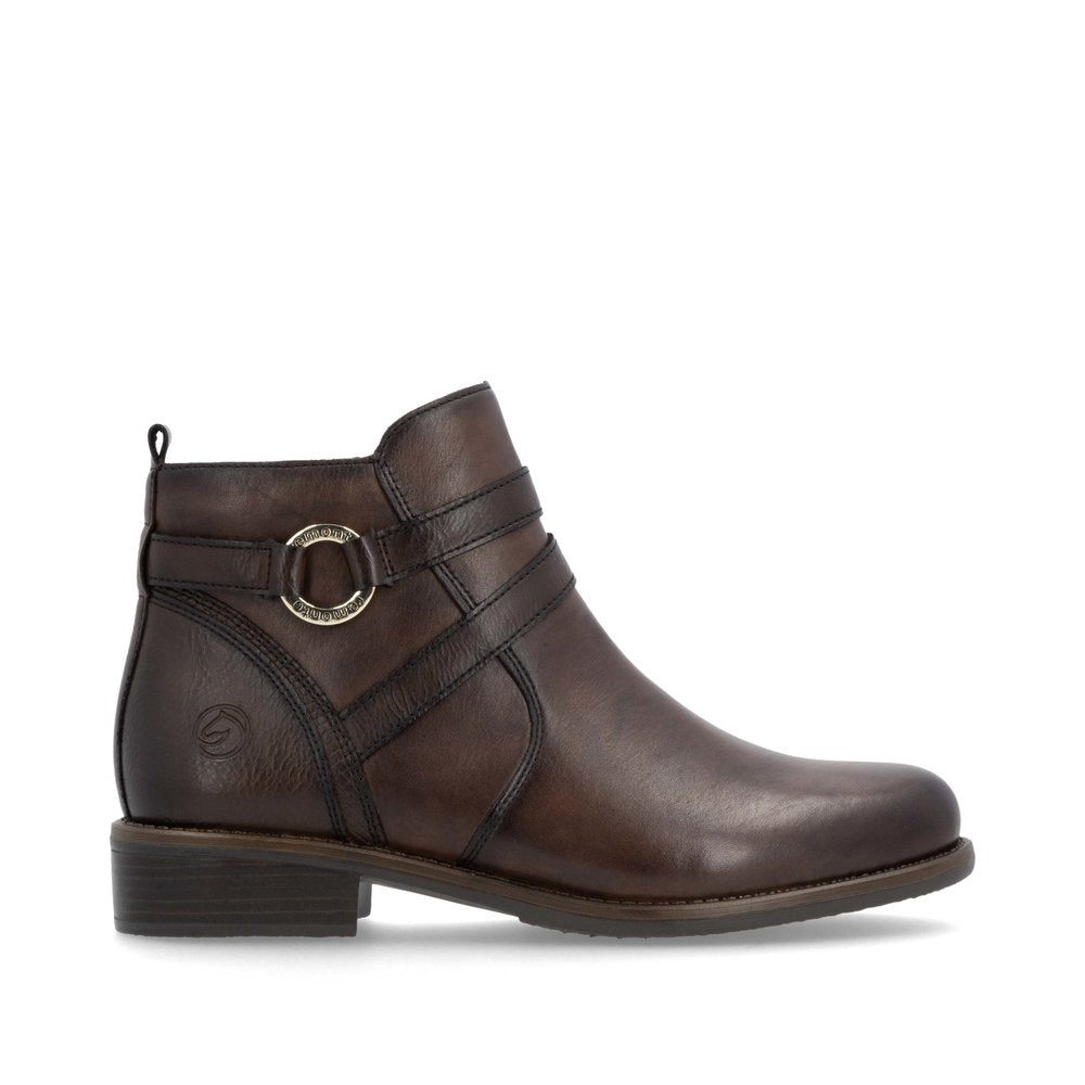 Remonte classic Chelsea boots in smart dark tan leather with classic side panel and easy zip fastening.