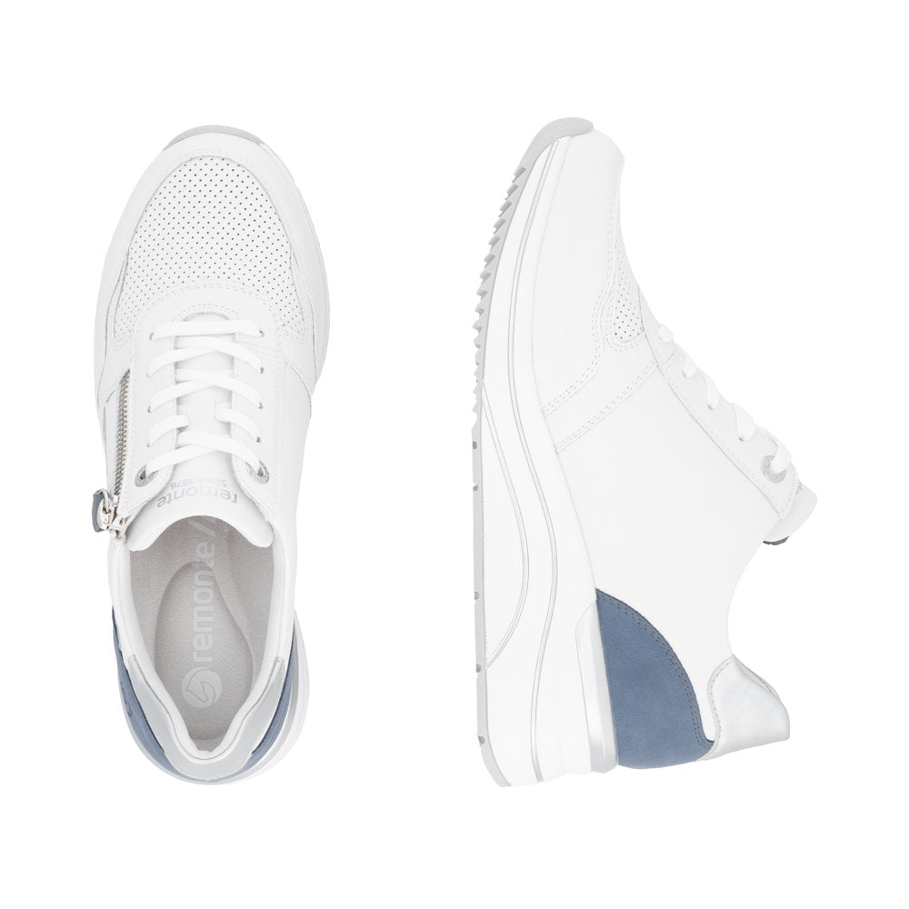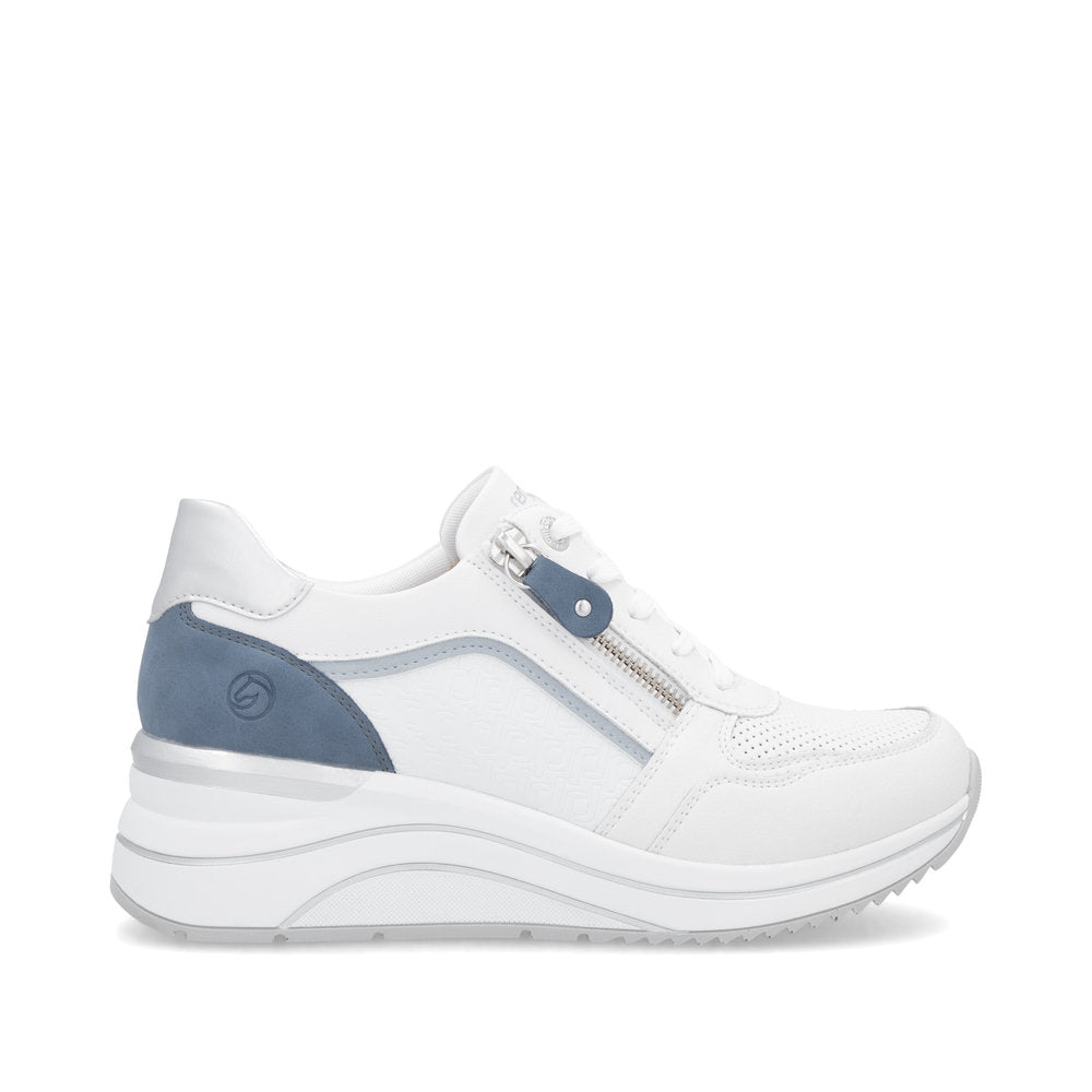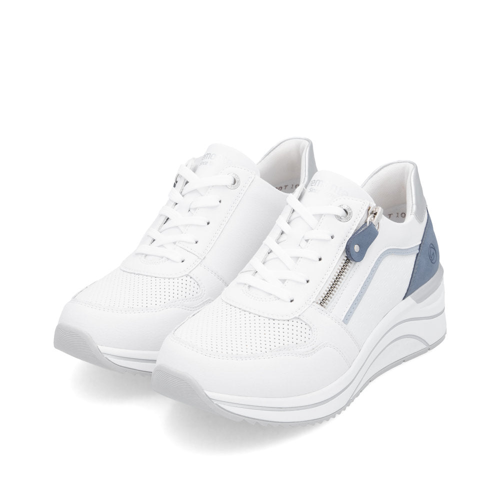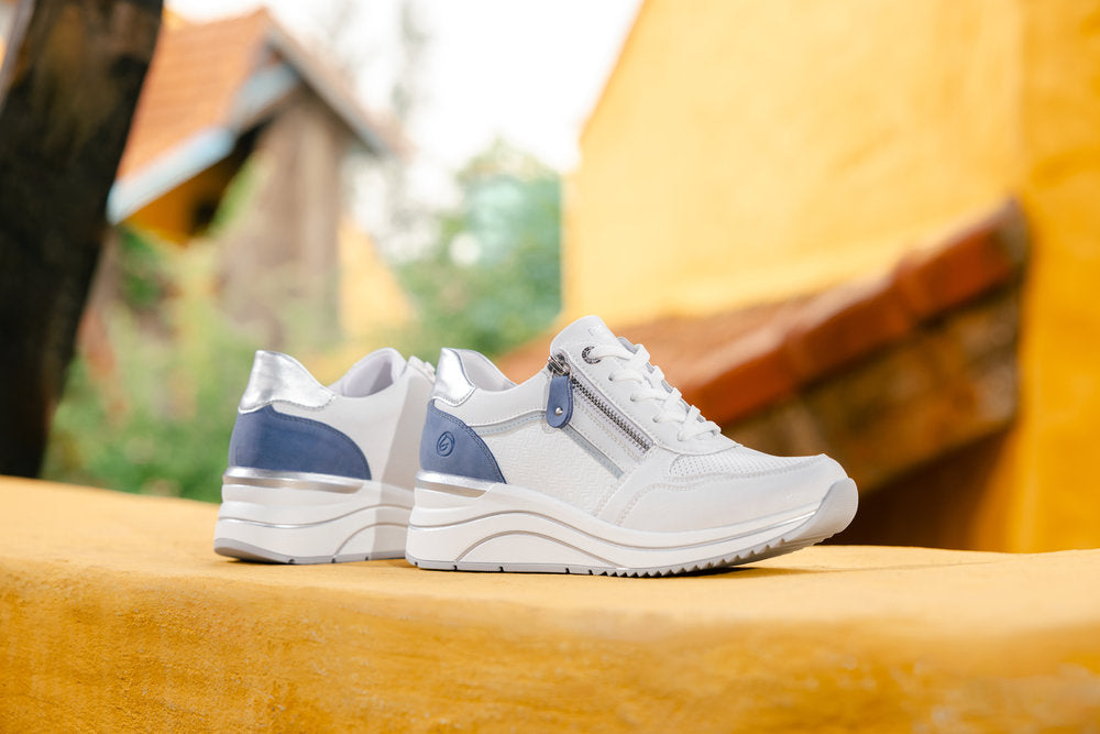 Remonte high wedge sneakers with laces and zip. Stand tall with these statement two tone low top sneakers with 2 inch wedge heel. Pair with skinny jeans or leggings for a smart casual look.