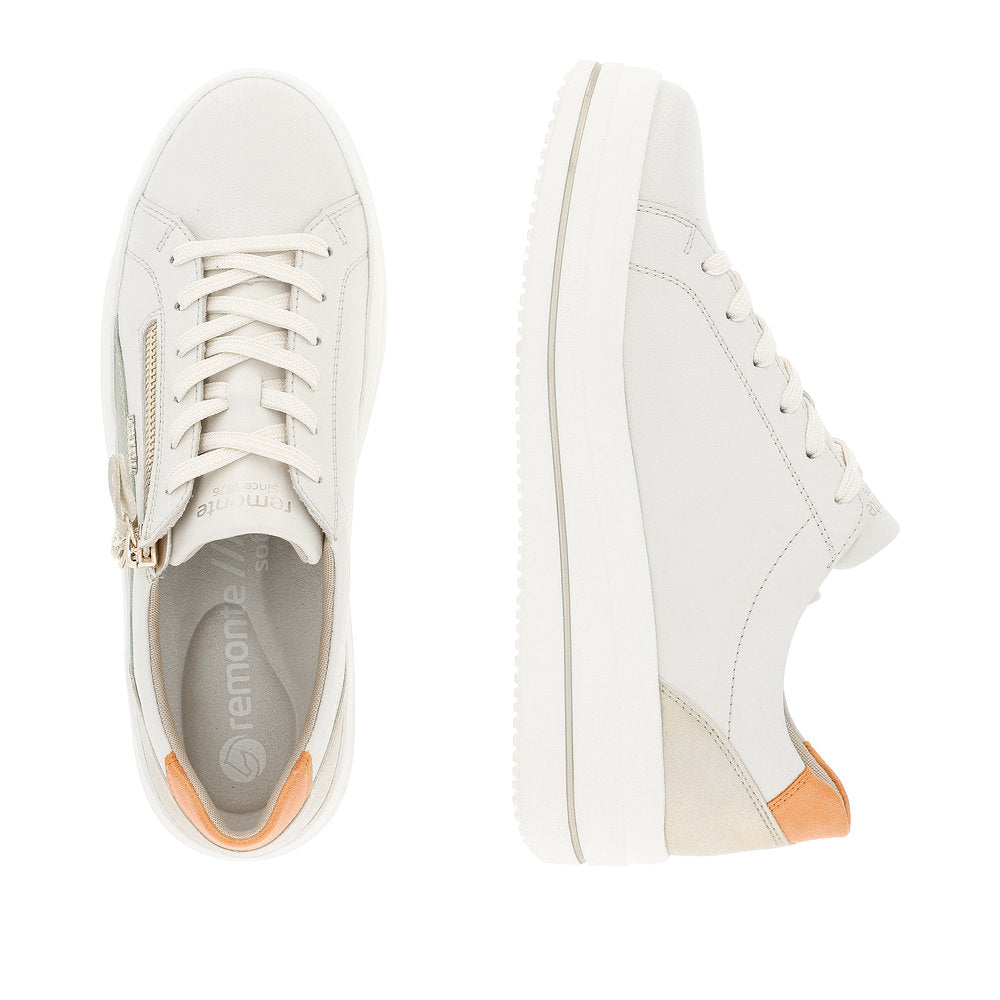Add a little chic comfort to an outfit with these incredibly comfy lace sneakers. Made from a soft off white leather and toning soft colours this wedge mini platform can be paired with anything. This model has rose gold signature and zip detailing and is a featured model in Elle magazine. An impressive new style for this summer season.