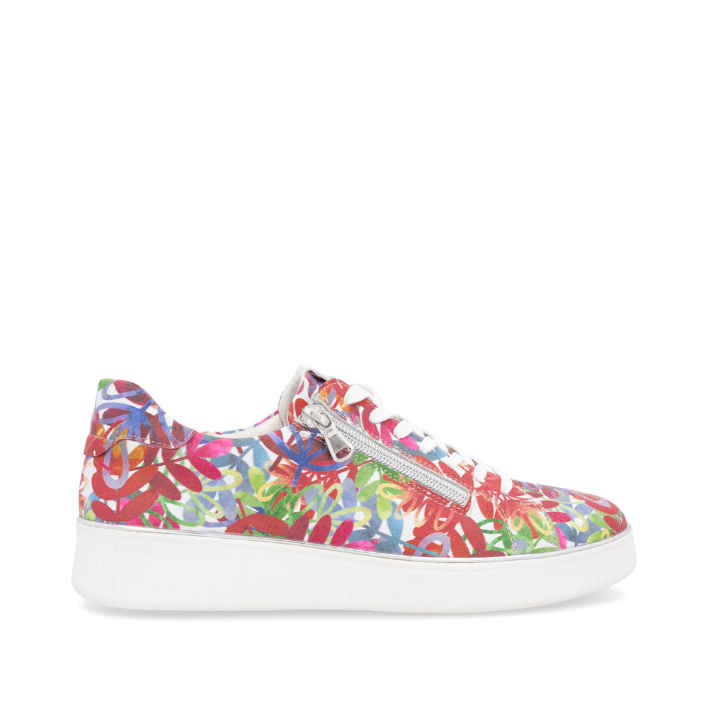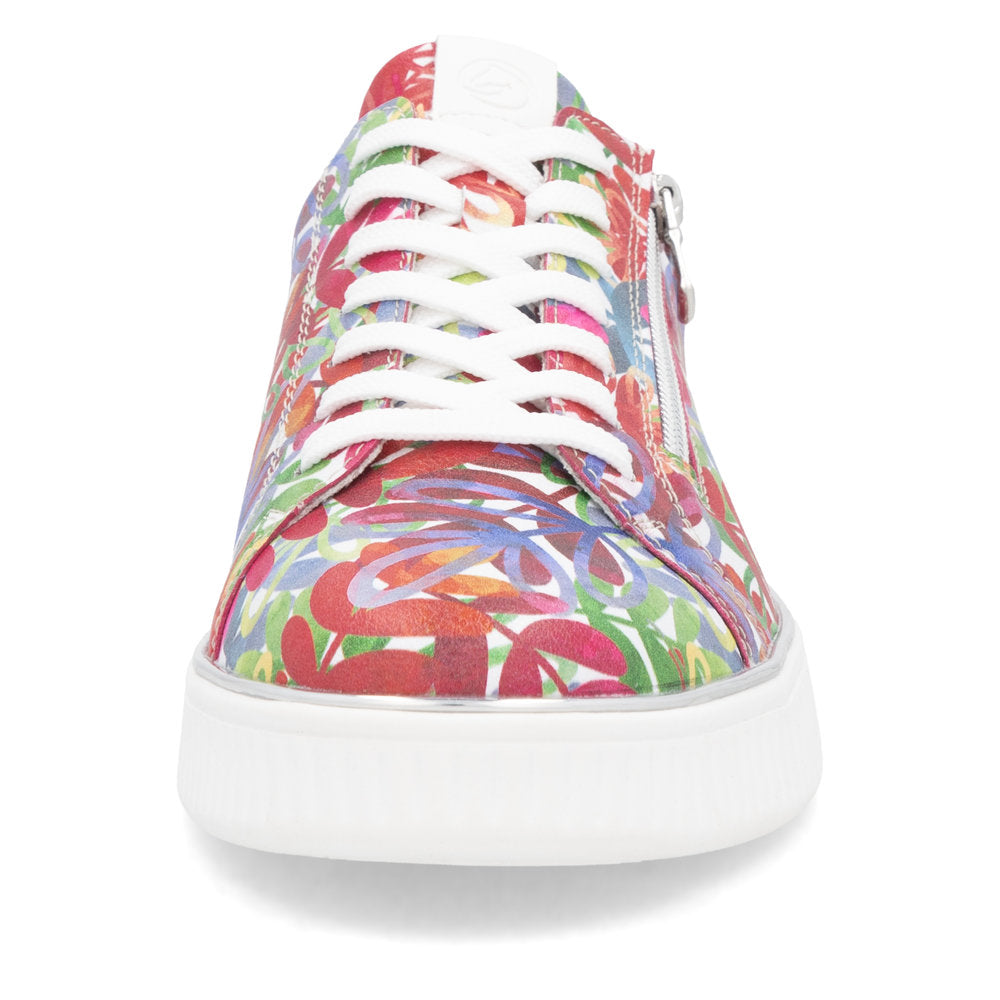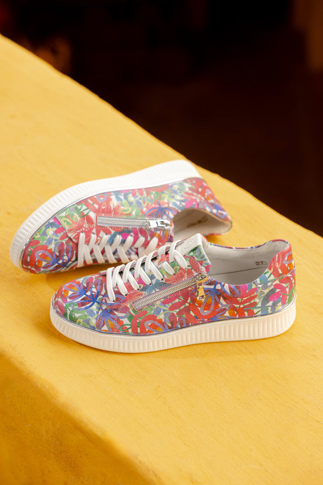 Remonte colourful leaf print summer sneakers with mini platform soles offering a little height boost. Pair with summer dresses or casual jeans for a pop of colour.