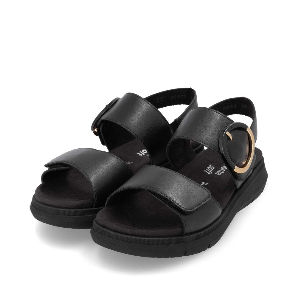 Remonte black leather walking sandals. Super springy soles and twin adjustable straps make these smart leather sandals perfect for all day wear.