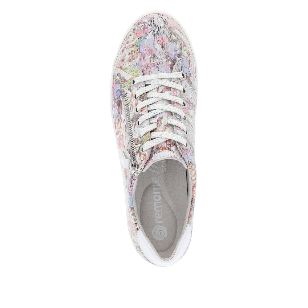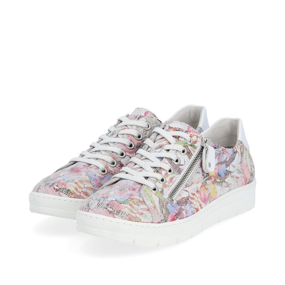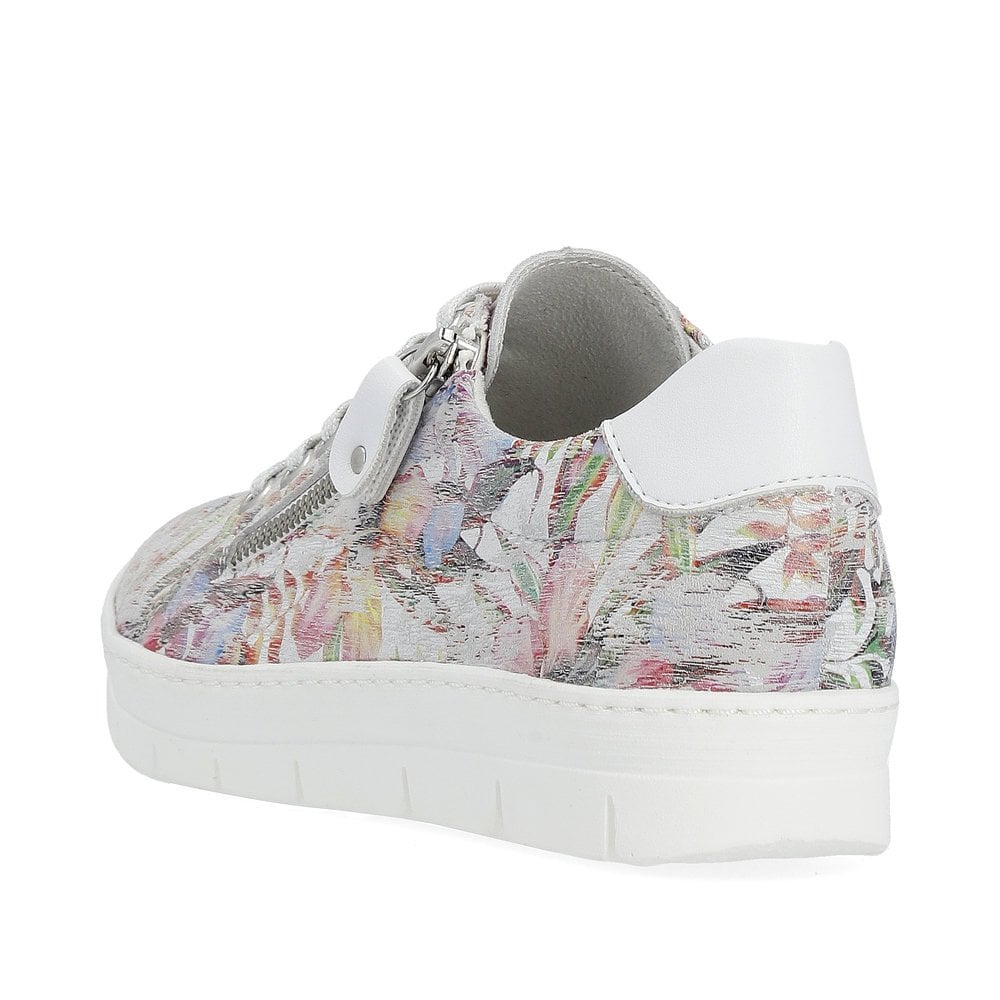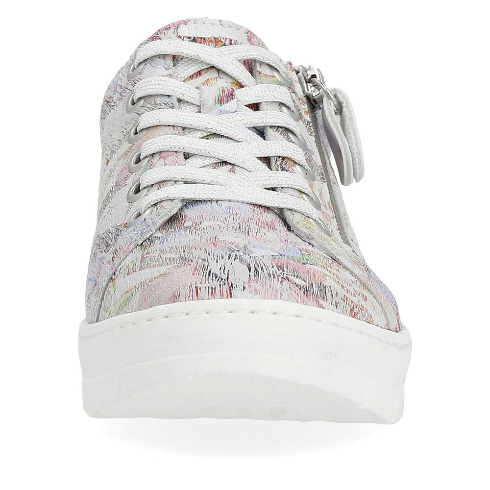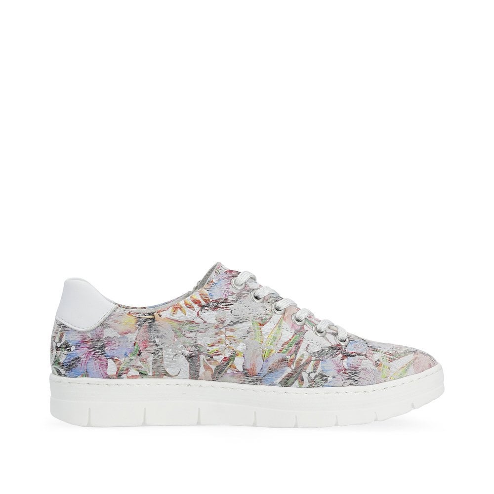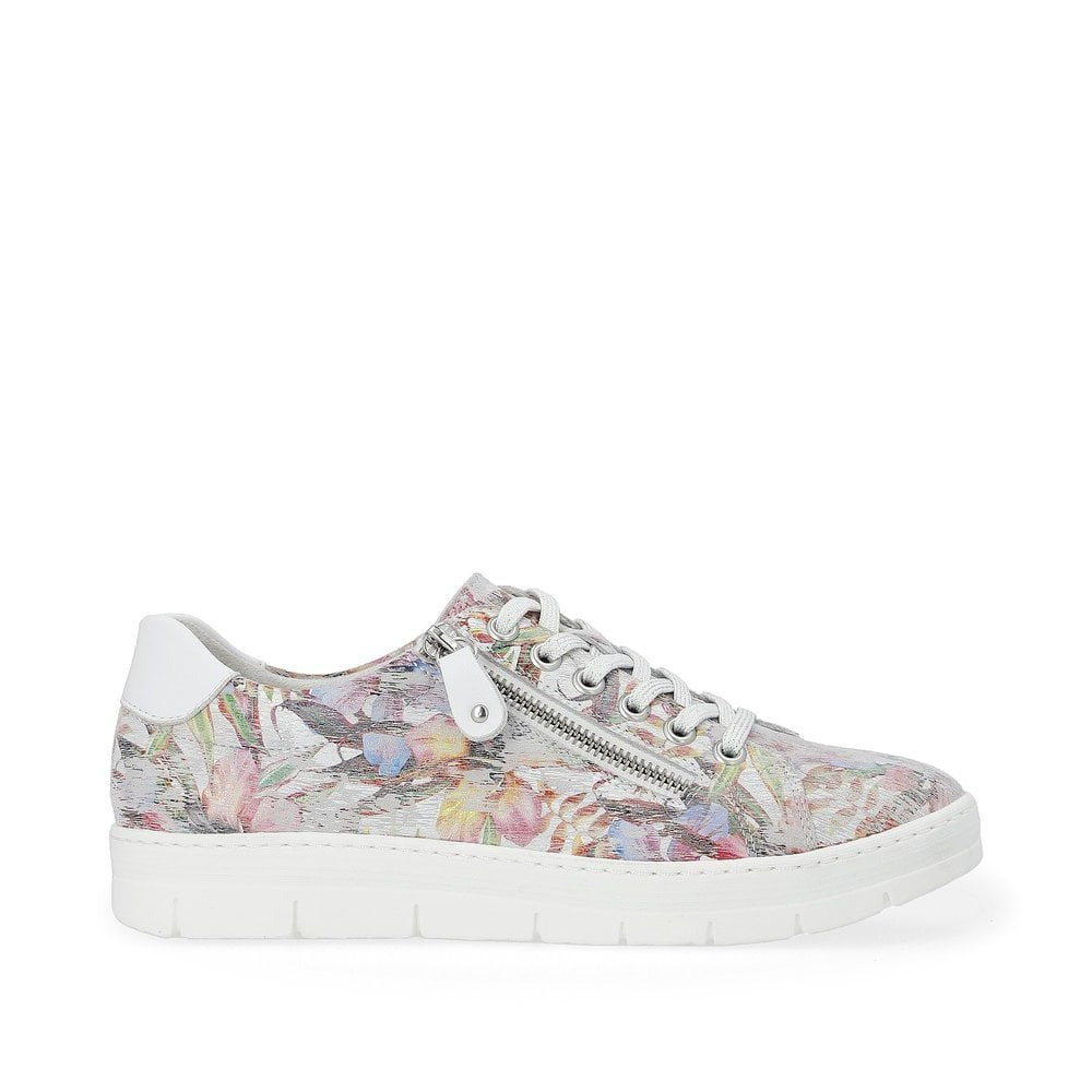 Step into style and comfort with the Women's D5800-91 Multiflower/White Lace-Up Trainers. The leather upper showcases an elegant multiflower design, complemented by a velour lining for a luxurious feel.