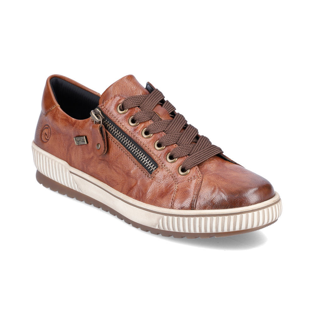 Remonte tan leather lace up shoes. These smart sneakers feature a soft cushioned footbed for maximum bounce and the cleated sole means they double up as great walking shoes.