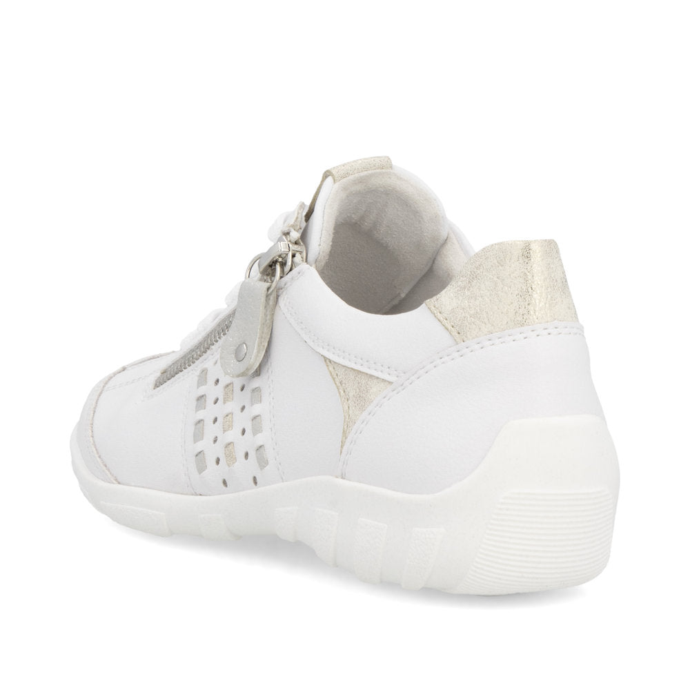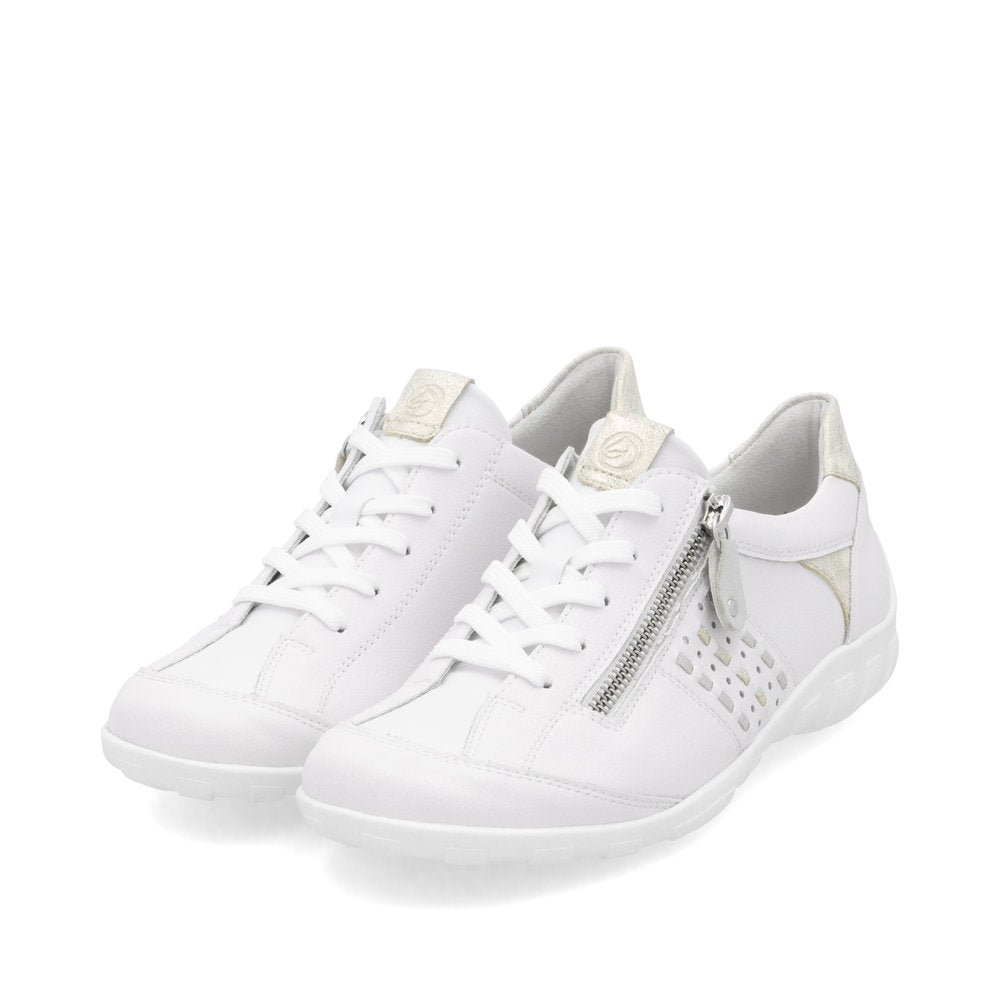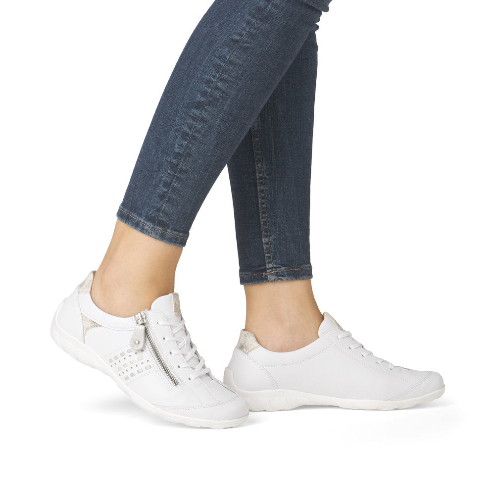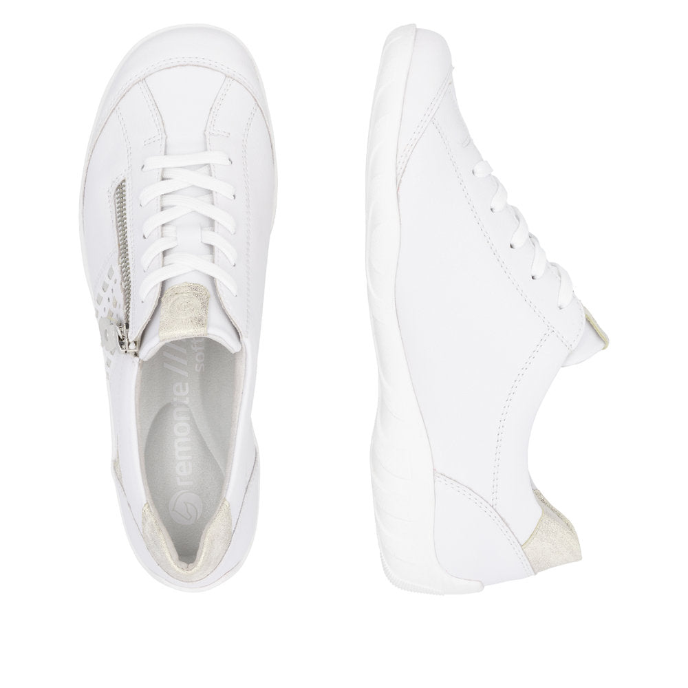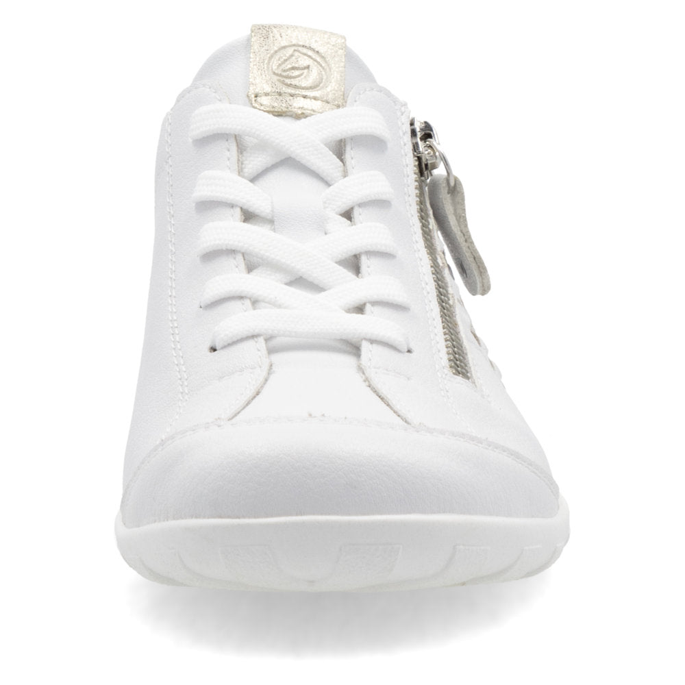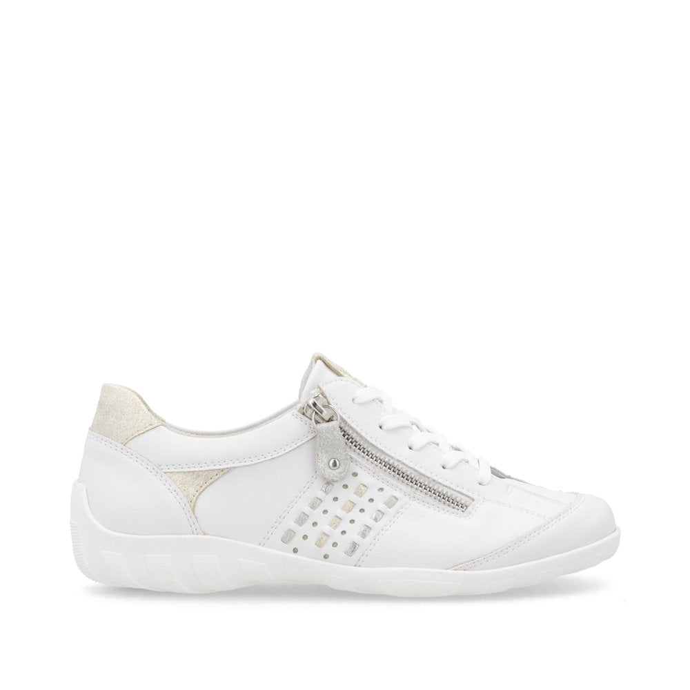 Remonte soft white leather lace up shoes with zip fastening. These quality leather shoes have a neat sole and rounder toe shape for a little extra toe room. The footbed is removable and made from genuine leather.