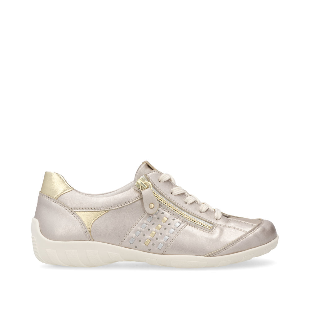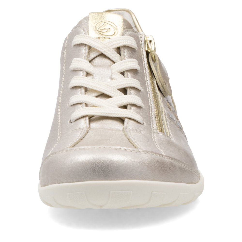 Remonte soft metallic pale gold leather lace up shoes with zip fastening. These quality leather shoes have a neat sole and rounder toe shape for a little extra toe room. The footbed is removable and made from genuine leather.