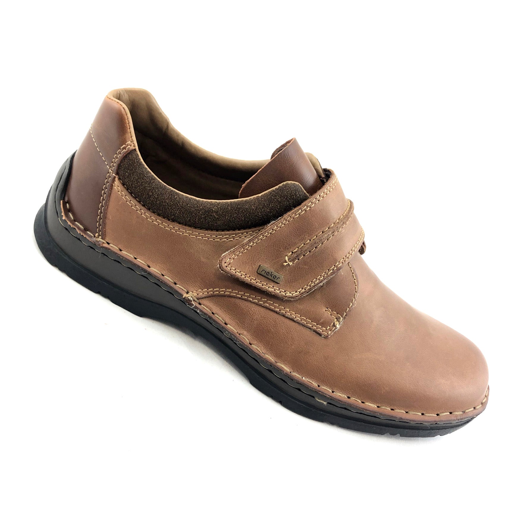 Rieker 05358 tan leather shoes with rip-tape closure in an extra wide fitting.