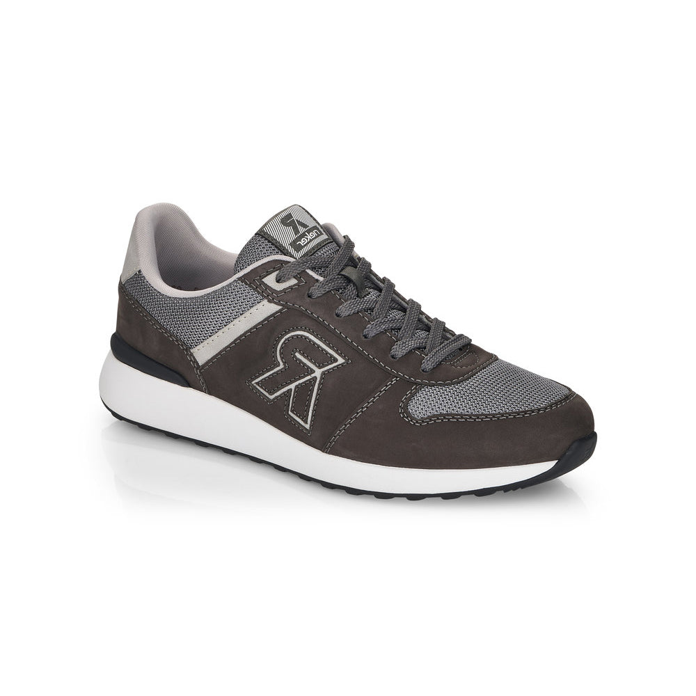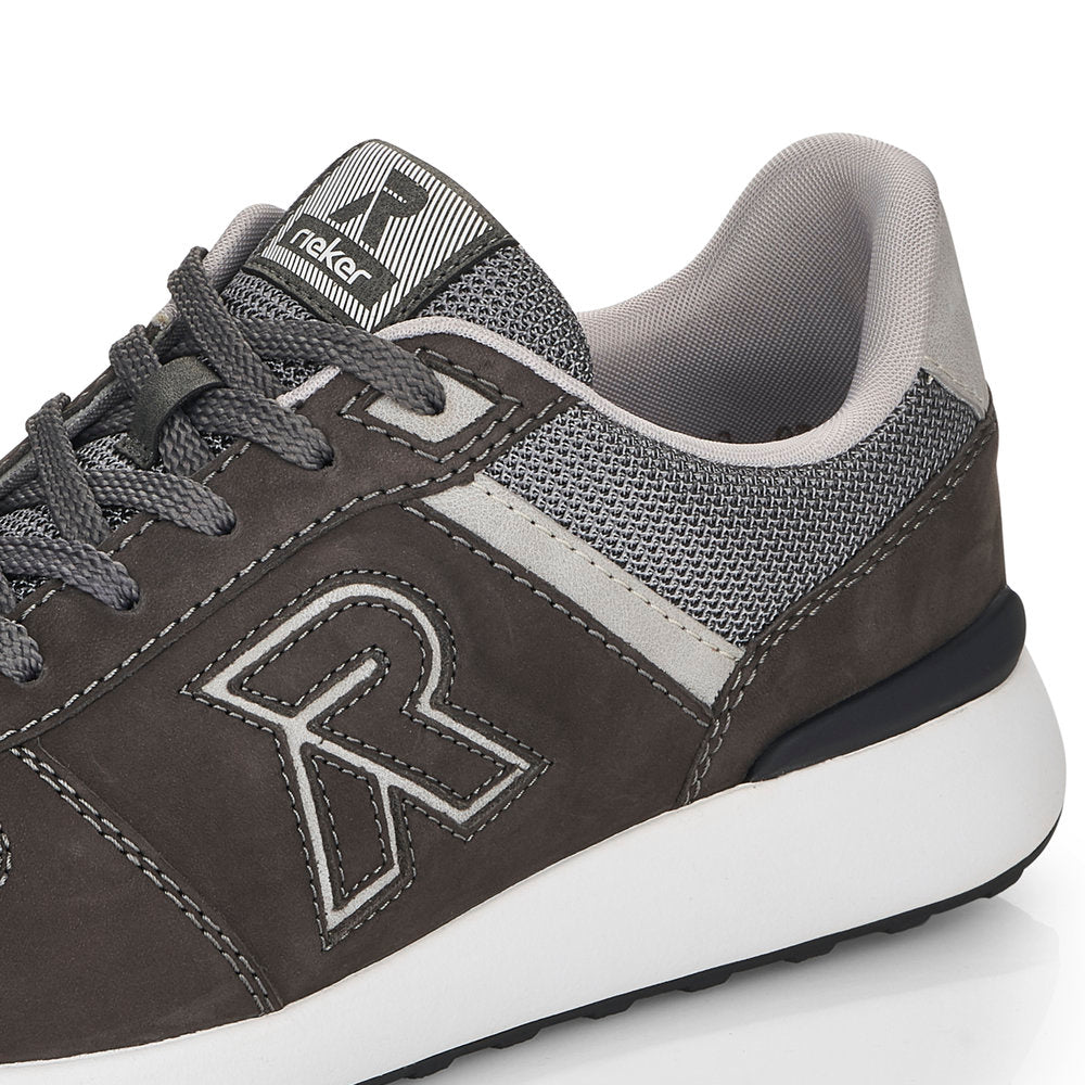 Rieker Evolution mens dark grey nubuck leather sneakers. These super soft lightweight leather sneakers are instant comfort on your feet.