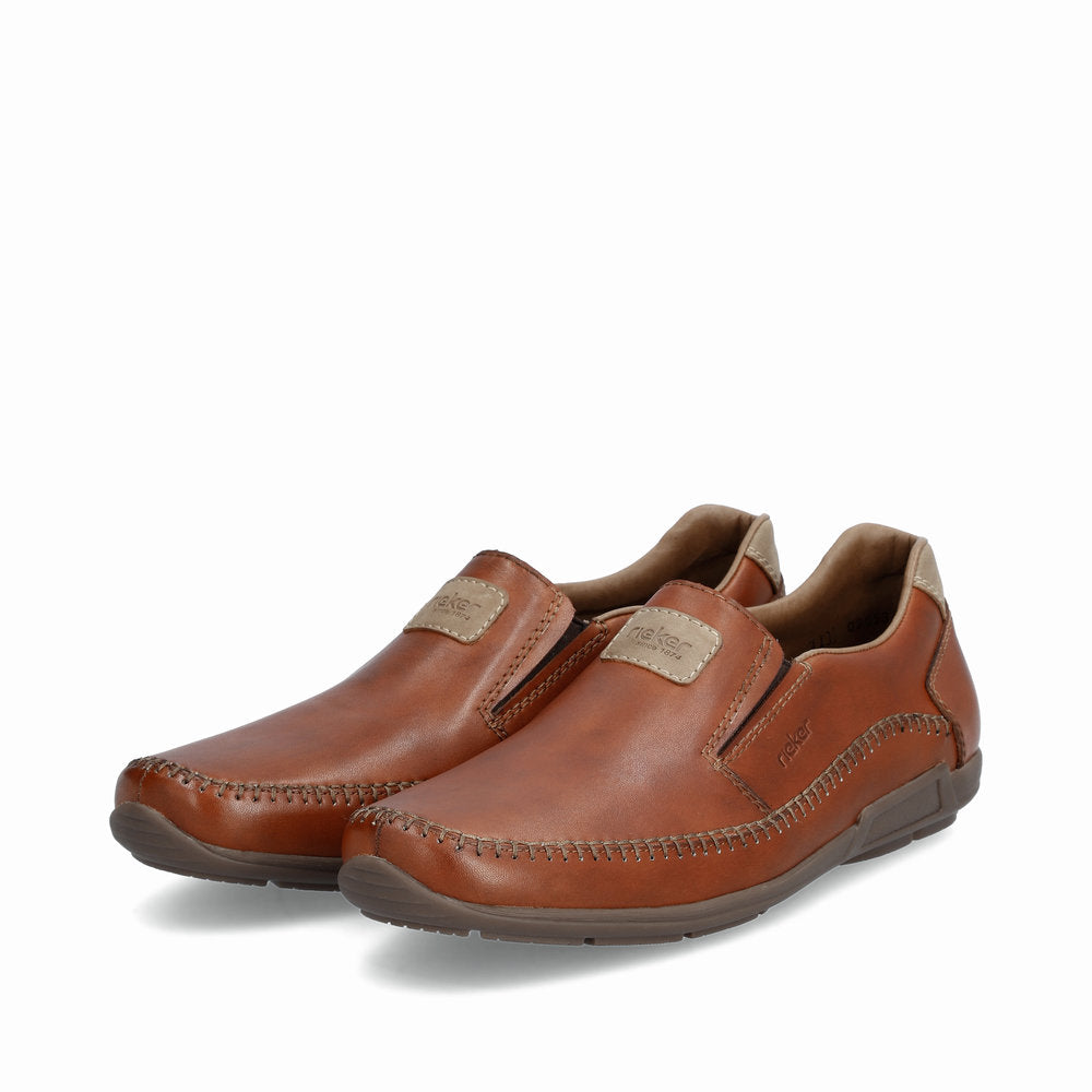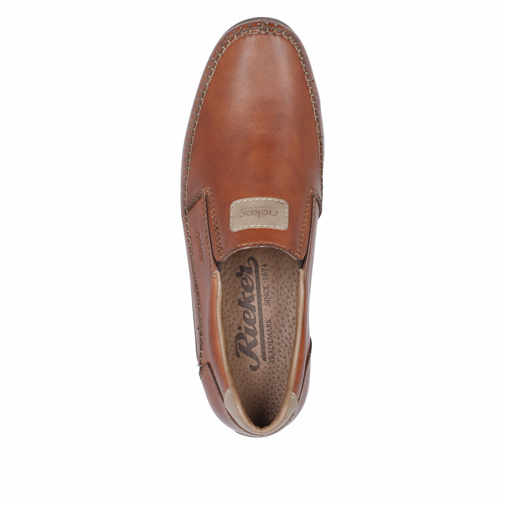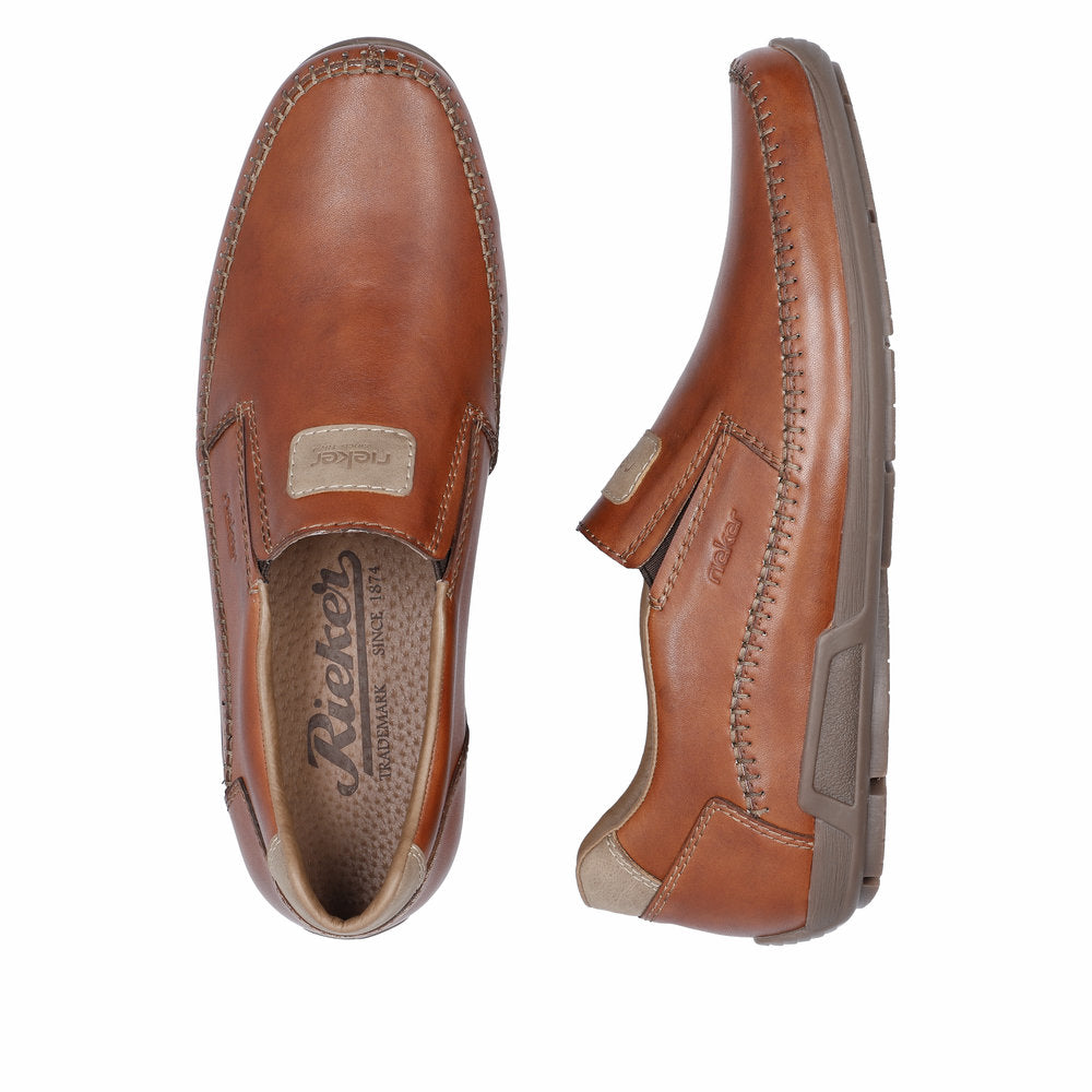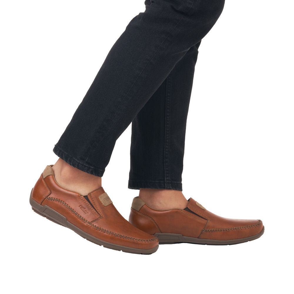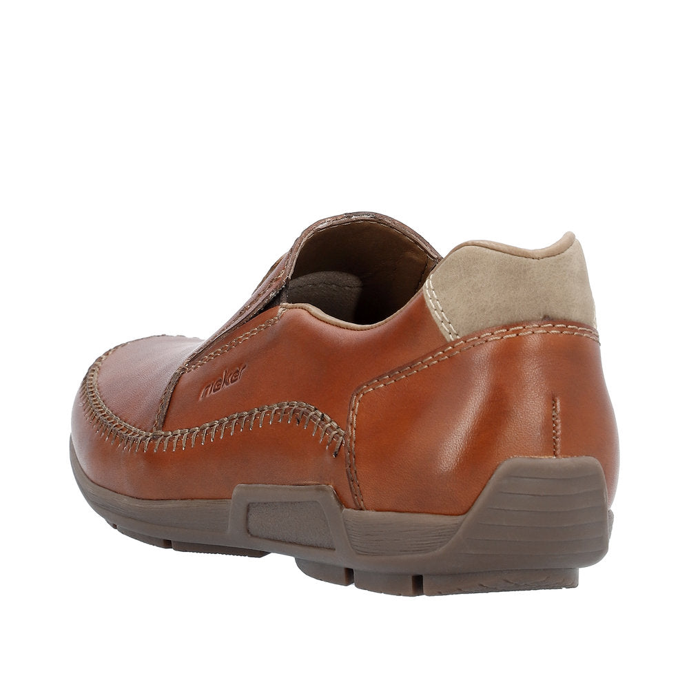 Rieker men's soft leather slip on driving shoes. These lightweight leather shoes are soft and breathable with an easy slip into design with two elastic gussets. The sole carries on up the back of the heel which makes this style ideal for driving.