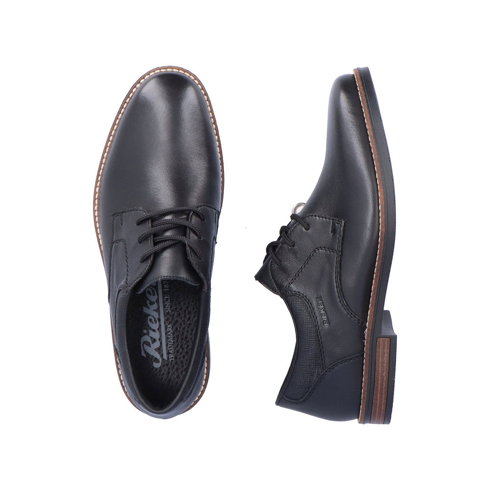 Rieker 13510 black leather semi formal shoes with contrasting stitching and natural coloured welts.